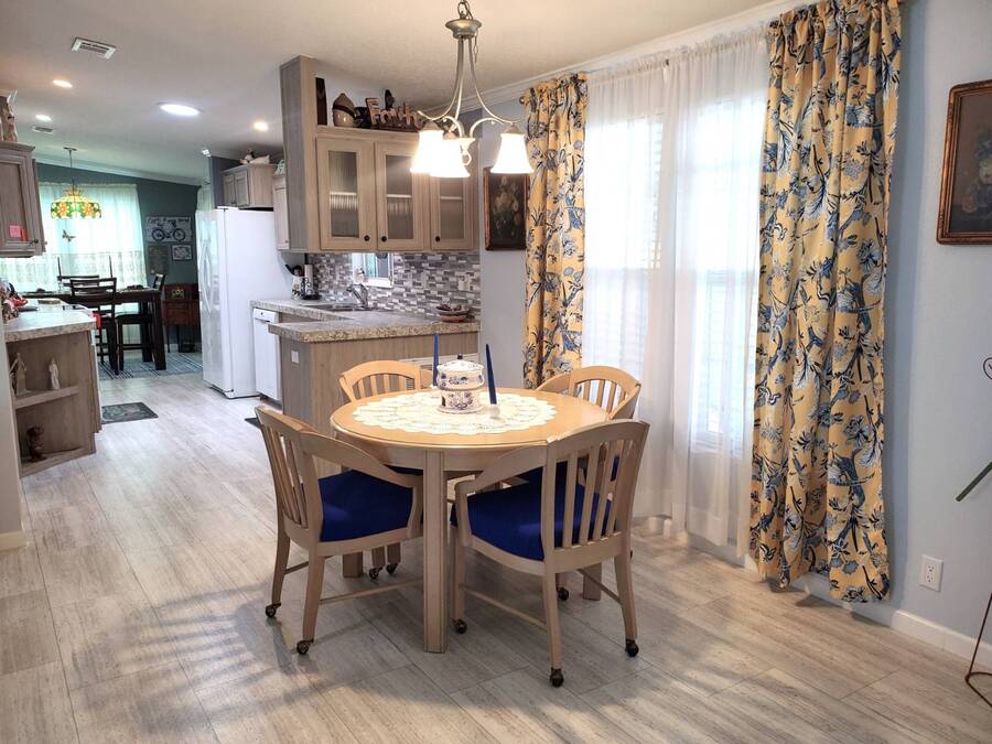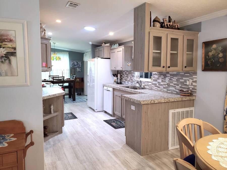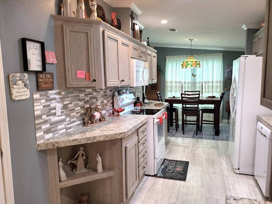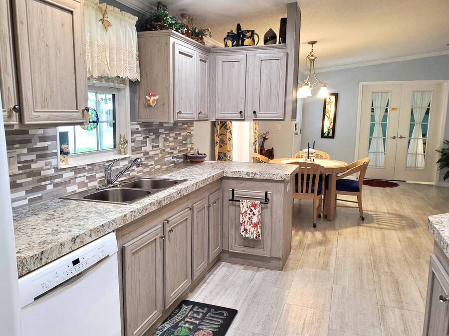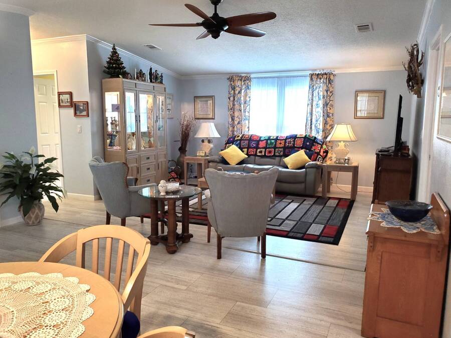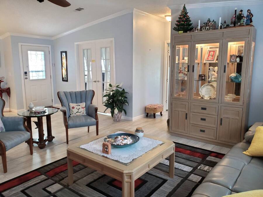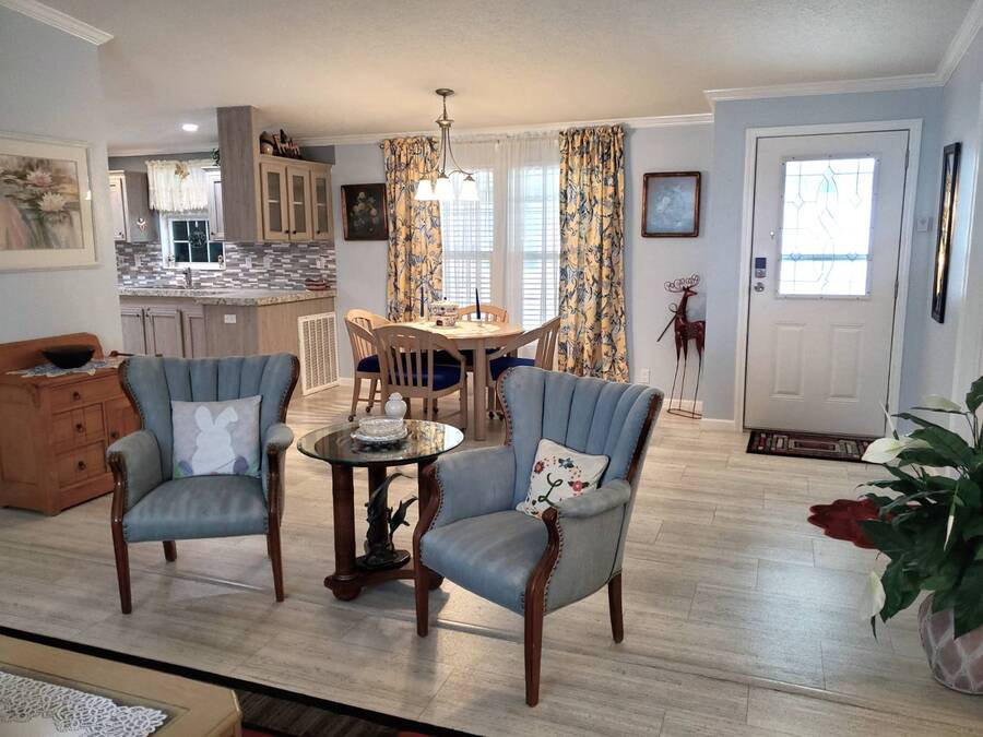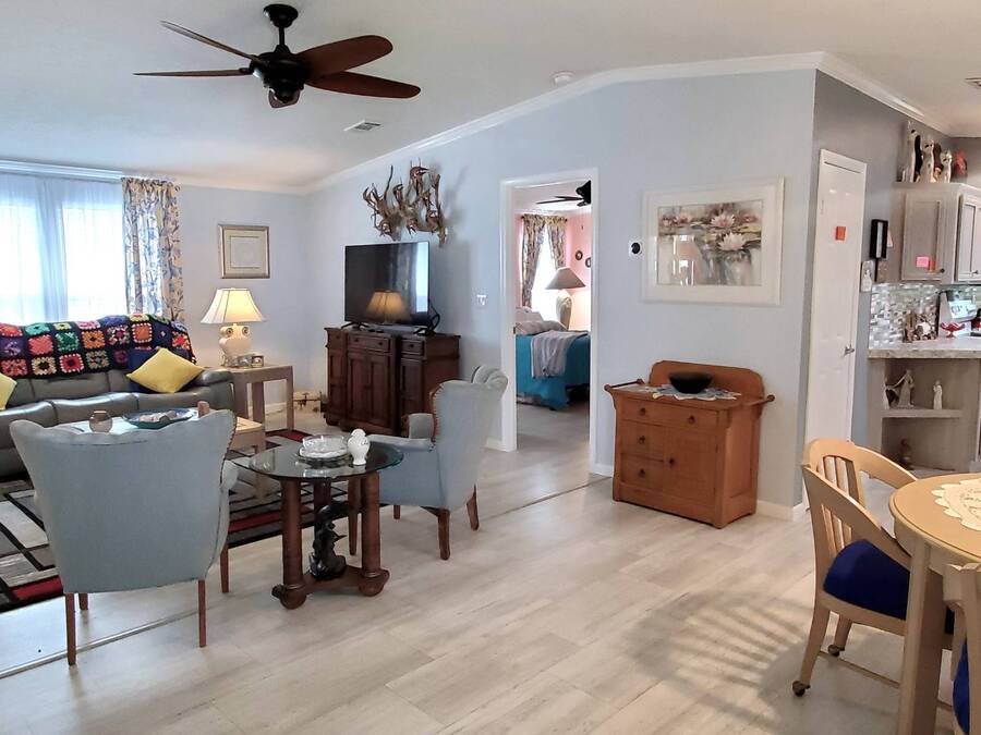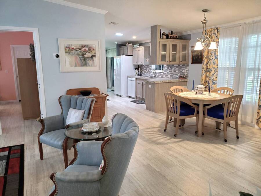 2021 Nobility Ashley, 2BR/2BA plus Den in Walden Woods South, a gated 55+ community in Homosassa. Nearly new with an open layout, modern finishes, and flexible living space. The home features a bright living room with vinyl plank flooring, a spacious dining area, and a large kitchen with gray cabinetry, Bosch dishwasher, Frigidaire appliances, pantry, and solar tube lighting. A breakfast nook opens to the Florida room. The primary suite offers a king-size bedroom, double closets, and an en-suite bath with dual sinks and a step-in shower. The guest bedroom fits a queen bed and has a walk-in closet. A separate den/office with French doors can serve as a third bedroom or hobby room. Laundry room includes Whirlpool washer and dryer. Outdoor living includes front and rear lanais with wooded views, a landscaped yard, carport with two-car driveway, and an 8x10 shed with workbench and loft storage. Roof and HVAC are 2021. Furniture is negotiable. Walden Woods South offers a clubhouse, heated pool, and community activities. Pet and motorcycle friendly. Monthly lot rent is $425 and includes water and sewer. Annual pass-on tax is $294. Located near Homosassa Springs, Gulf beaches, dining, and shopping. Move-in ready and priced to sell. "All listing information is deemed reliable but not guaranteed and should be independently verified through personal inspection by appropriate professionals. American Mobile Home Sales of Tampa Bay, Inc. cannot guarantee or warrant the accuracy of this information or condition of this property. Measurements are approximate. The buyer assumes full responsibility for obtaining all current rates of lot rent, fees, or pass-on costs associated with the community, park, or home from the community/park manager. American Mobile Home Sales of Tampa Bay, Inc. is not responsible for quoting of said fees."