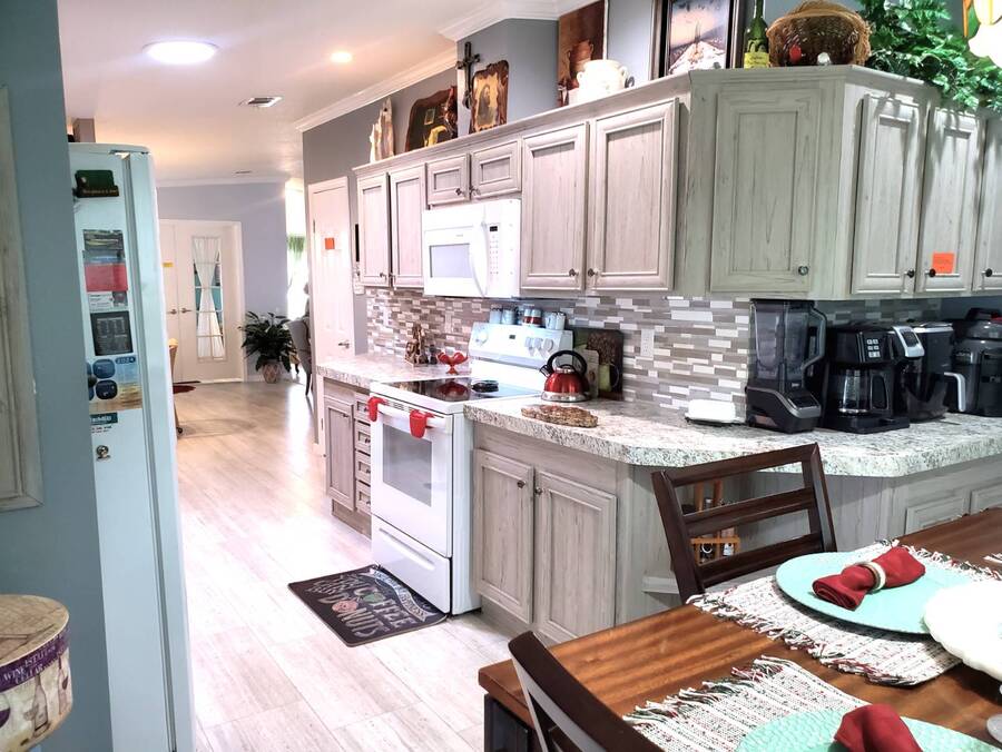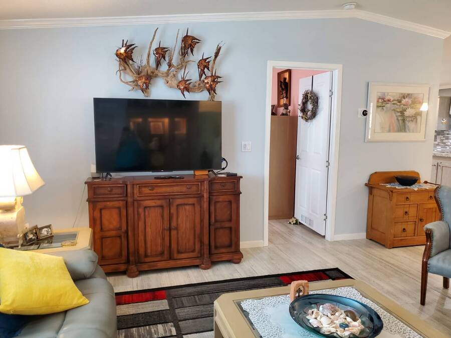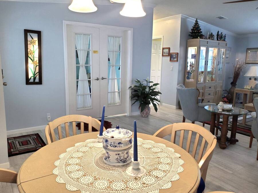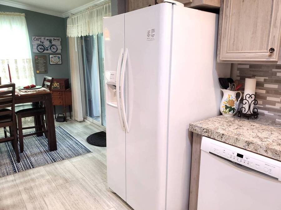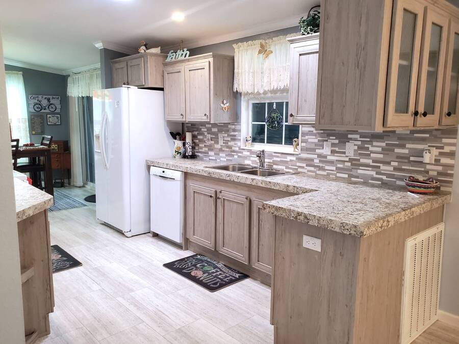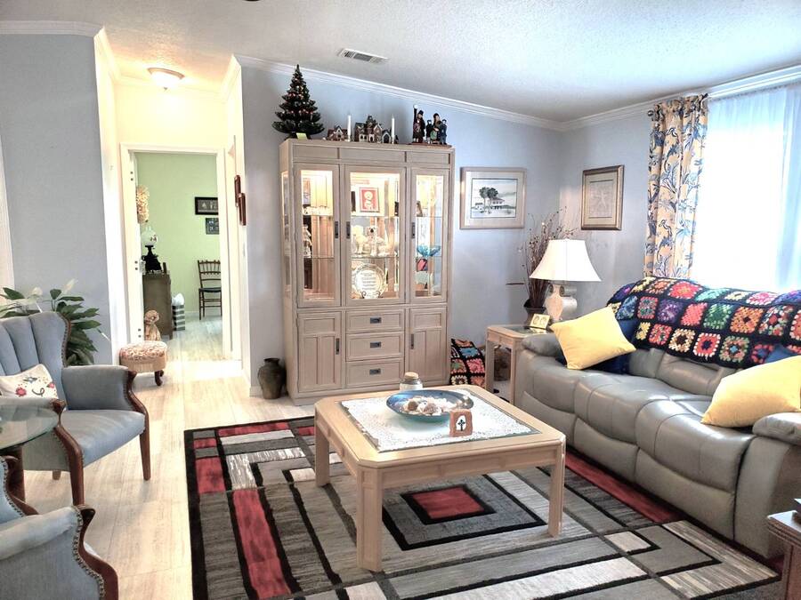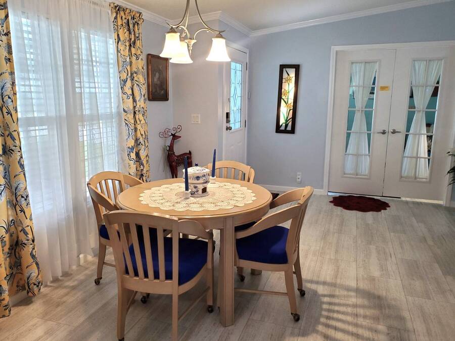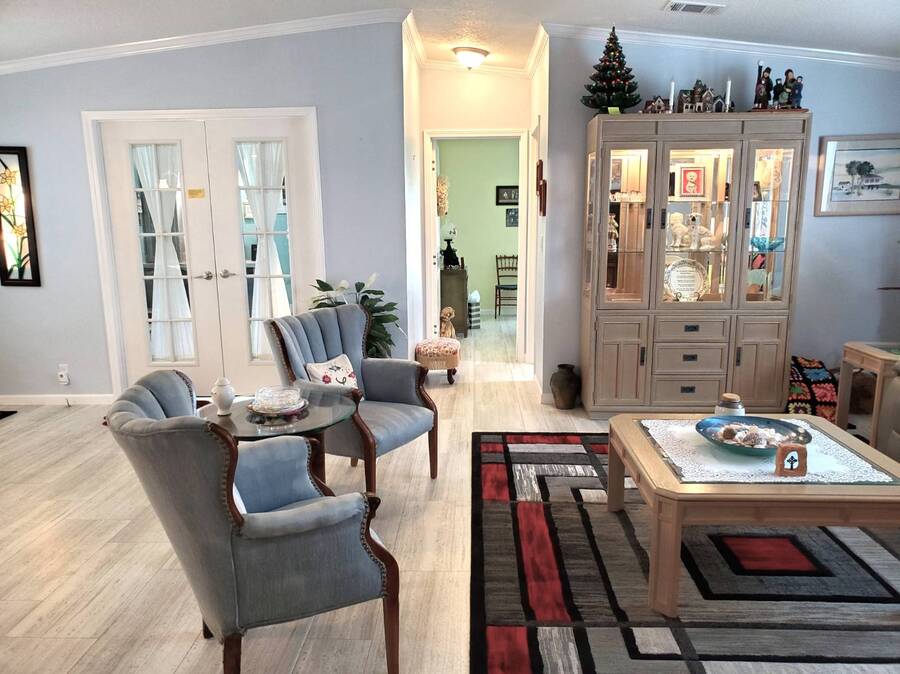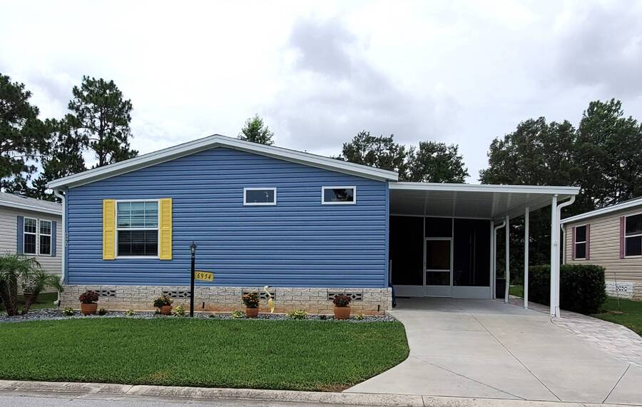 2021 Nobility Ashley, 2BR/2BA plus Den in Walden Woods South, a gated 55+ community in Homosassa. Nearly new with an open layout, modern finishes, and flexible living space. The home features a bright living room with vinyl plank flooring, a spacious dining area, and a large kitchen with gray cabinetry, Bosch dishwasher, Frigidaire appliances, pantry, and solar tube lighting. A breakfast nook opens to the Florida room. The primary suite offers a king-size bedroom, double closets, and an en-suite bath with dual sinks and a step-in shower. The guest bedroom fits a queen bed and has a walk-in closet. A separate den/office with French doors can serve as a third bedroom or hobby room. Laundry room includes Whirlpool washer and dryer. Outdoor living includes front and rear lanais with wooded views, a landscaped yard, carport with two-car driveway, and an 8x10 shed with workbench and loft storage. Roof and HVAC are 2021. Furniture is negotiable. Walden Woods South offers a clubhouse, heated pool, and community activities. Pet and motorcycle friendly. Monthly lot rent is $425 and includes water and sewer. Annual pass-on tax is $294. Located near Homosassa Springs, Gulf beaches, dining, and shopping. Move-in ready and priced to sell. "All listing information is deemed reliable but not guaranteed and should be independently verified through personal inspection by appropriate professionals. American Mobile Home Sales of Tampa Bay, Inc. cannot guarantee or warrant the accuracy of this information or condition of this property. Measurements are approximate. The buyer assumes full responsibility for obtaining all current rates of lot rent, fees, or pass-on costs associated with the community, park, or home from the community/park manager. American Mobile Home Sales of Tampa Bay, Inc. is not responsible for quoting of said fees."