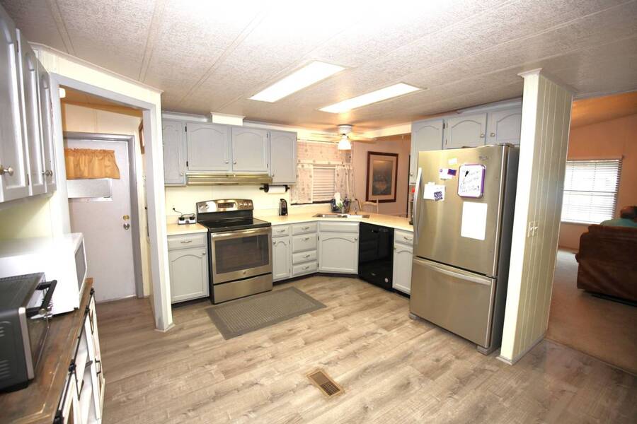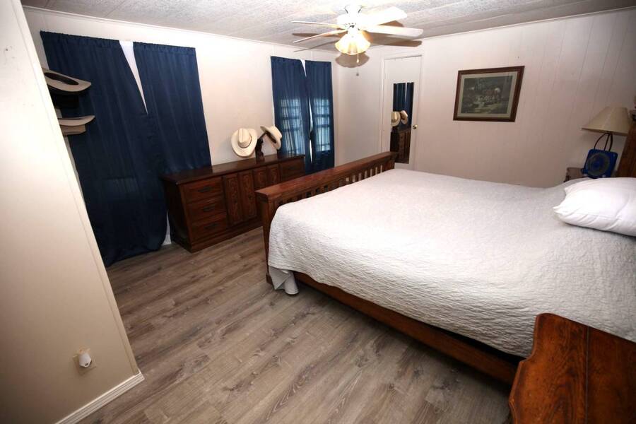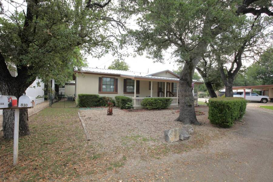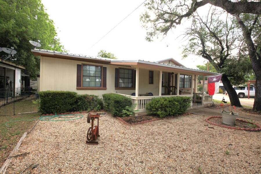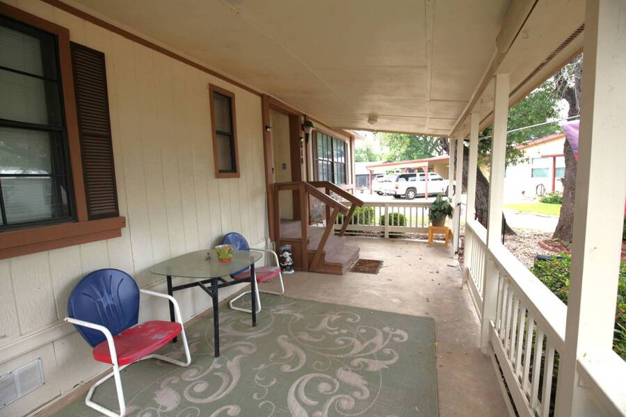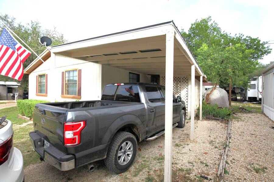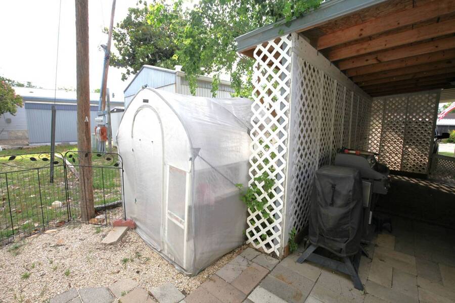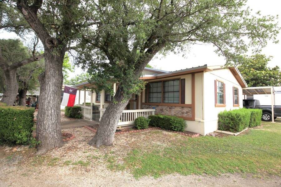 MOTIVATED SELLER, PRICE REDUCTION AND NEW ENGINEERED HARDWOOD FLOORING THROUGHOUT! Enjoy the peaceful 55 plus community in the heart of the Texas Hill Country. Close to downtown Kerrville. Well maintained double wide with two bedroom and two bath. Large front porch, one car carport, greenhouse and shed. All appliances and furniture convey with full price offer. New metal roof 2024 and a new a/c condenser 8/2025. Community amenities include indoor pool, game room, and shuffle board. Monthly lot fee $480 including water, sewer and trash. Pets welcome. Property is for sale only. Rentals are prohibited. Park management approval is required in order to occupy the home. This home was not affected by the July 4th, 2025 flood.