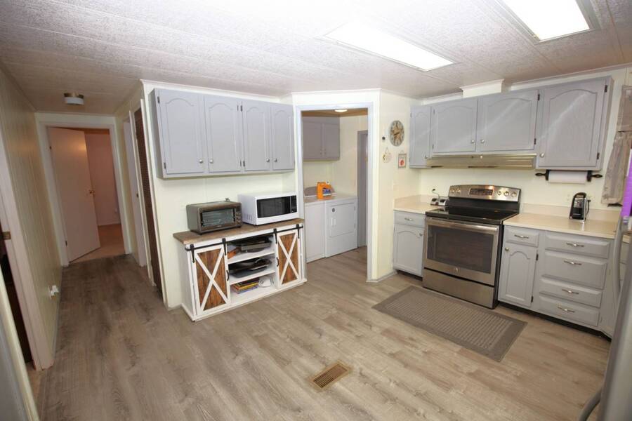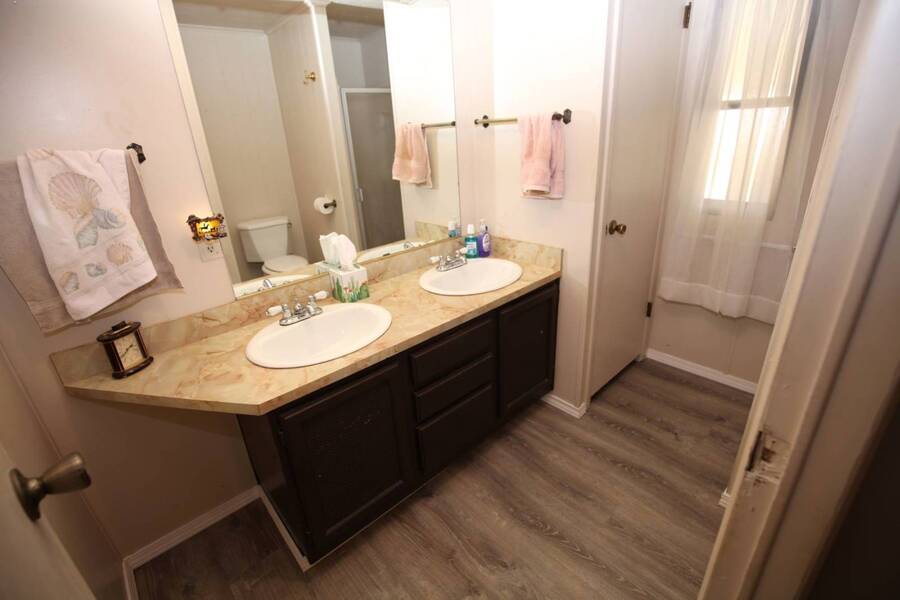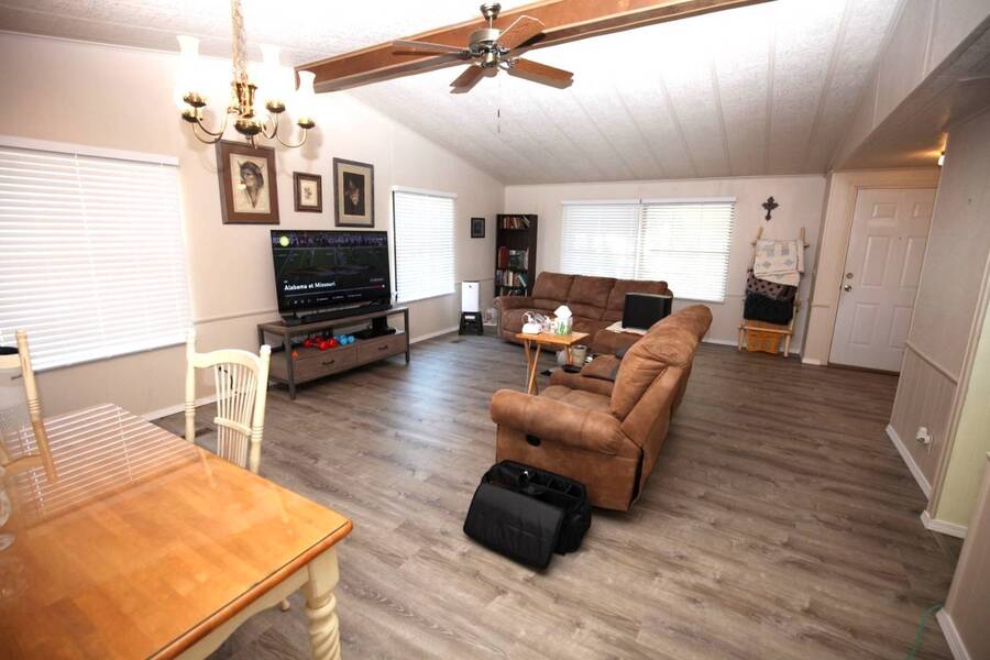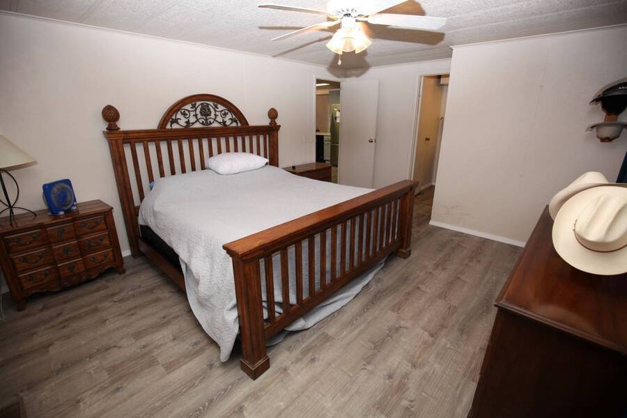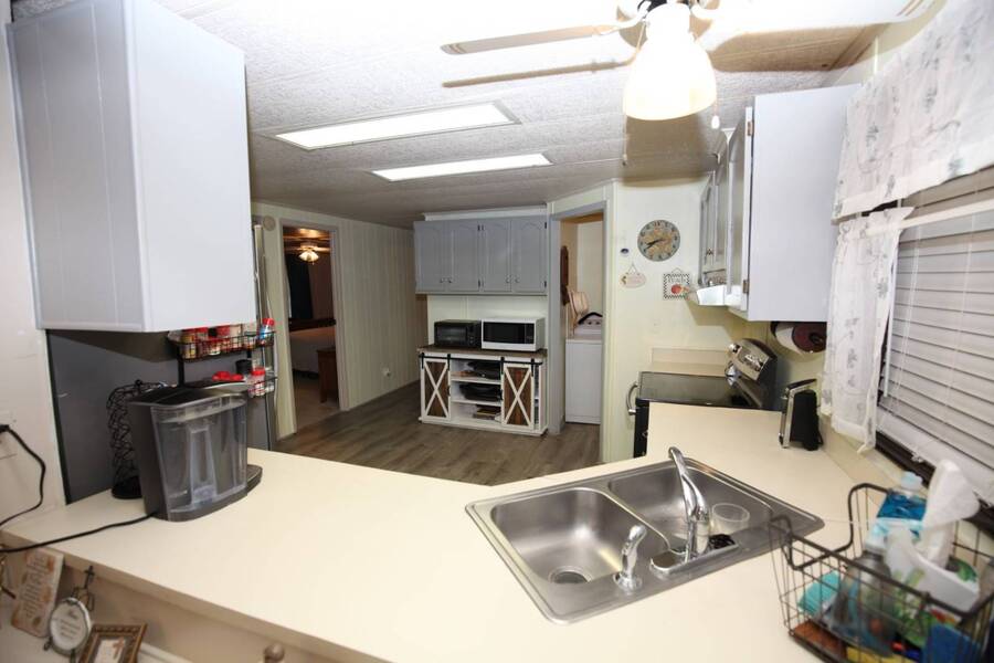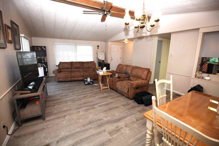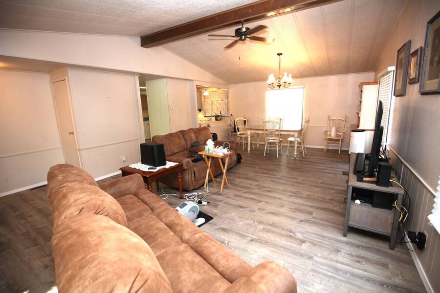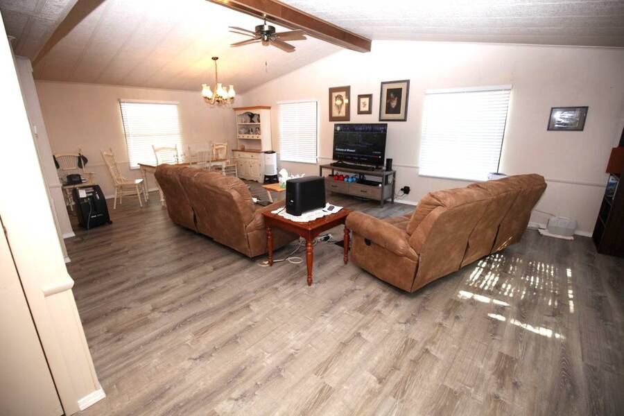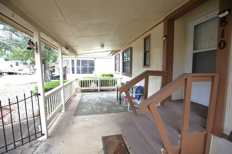 MOTIVATED SELLER, PRICE REDUCTION AND NEW ENGINEERED HARDWOOD FLOORING THROUGHOUT! Enjoy the peaceful 55 plus community in the heart of the Texas Hill Country. Close to downtown Kerrville. Well maintained double wide with two bedroom and two bath. Large front porch, one car carport, greenhouse and shed. All appliances and furniture convey with full price offer. New metal roof 2024 and a new a/c condenser 8/2025. Community amenities include indoor pool, game room, and shuffle board. Monthly lot fee $480 including water, sewer and trash. Pets welcome. Property is for sale only. Rentals are prohibited. Park management approval is required in order to occupy the home. This home was not affected by the July 4th, 2025 flood.