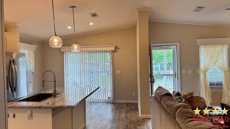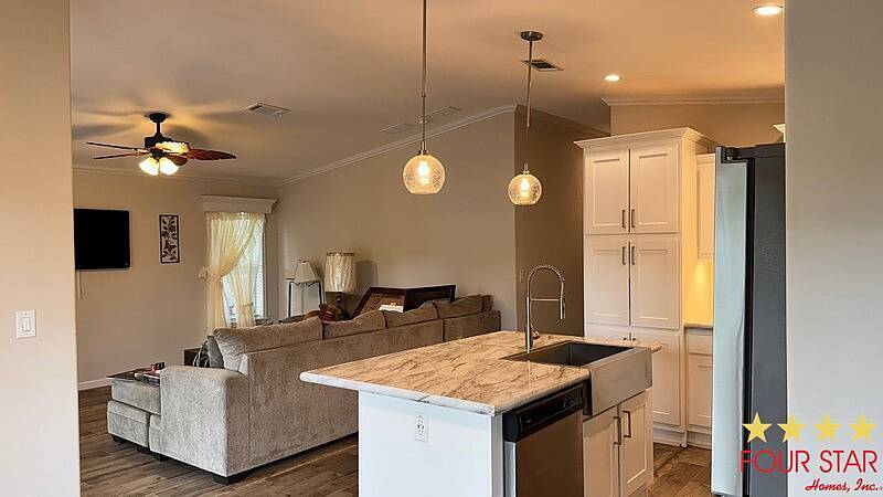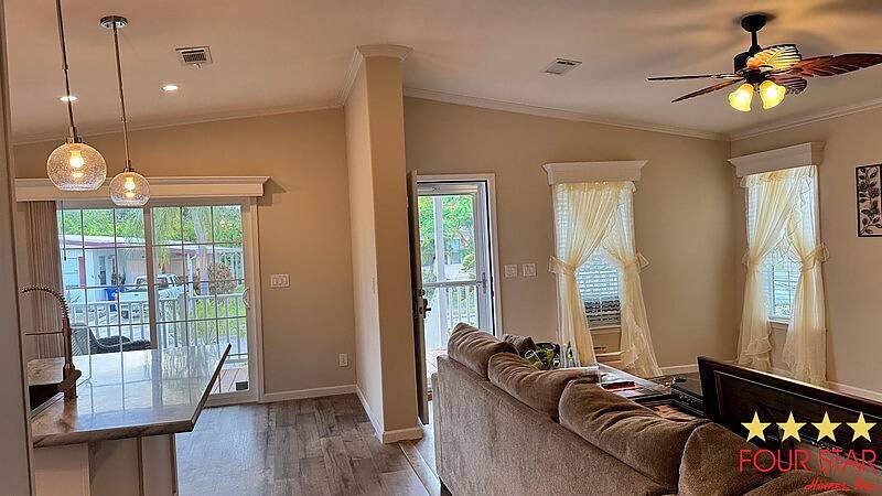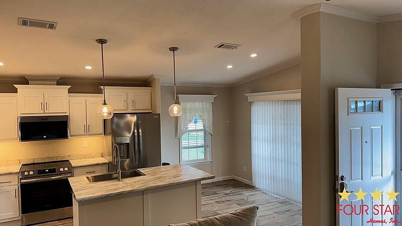 Welcome to this beautifully maintained 3 bedroom, 2 bath home that offers both comfort and convenience at an unbeatable value. Priced well below market value at just $131,000, this move in ready property features numerous updates and thoughtful touches throughout. Enjoy the charm of a full width front porch overlooking a well manicured lawn, perfect for morning coffee or evening relaxation. A long carport provides ample parking, while the storage shed offers extra space with room for a workshop. Out back, you will love the patio area and private backyard, a great setting for entertaining or simply unwinding. Inside, the heart of the home is a beautifully updated kitchen featuring laminate flooring, a center island with power outlets and seating, stainless steel appliances, a deep stainless steel sink, and plenty of cabinetry for storage. The kitchen flows seamlessly into the dining room, which opens through sliding glass doors to the large front porch, and into the spacious living room, ideal for gatherings and everyday living. The guest bathroom offers a one piece shower and tub combo, vanity with mirror, and storage. The laundry room has its own private entrance, complete with washer, dryer, and extra storage. The home includes two guest bedrooms, each large enough for a queen size bed and featuring generous closet space. The master suite is truly a retreat with room for a king size bed, an extra large walk in closet, and a spa like ensuite boasting double sinks, a walk in shower with sliding glass doors and a bench, and ample storage. Additional highlights include a 2021 Goodman central air conditioning system to keep you comfortable year round. Originally valued at over $200,000, this home can be yours for just $131,000, with all the upgrades already done! Do not miss out on this rare opportunity for a beautifully updated, spacious home at an exceptional price.