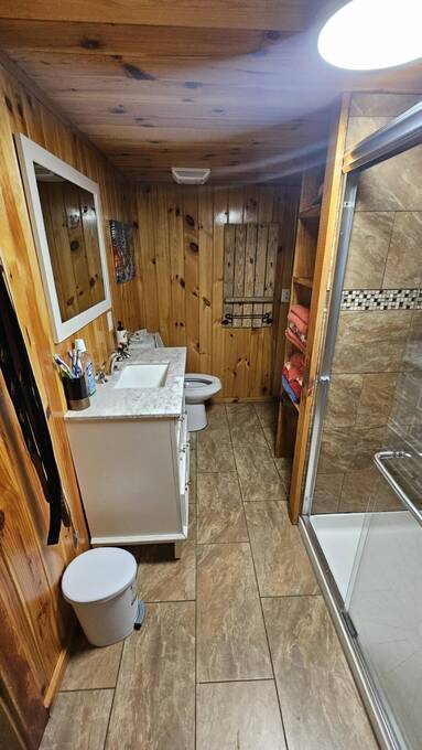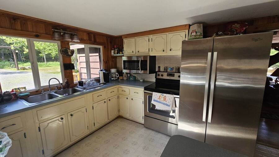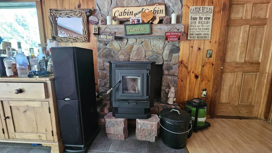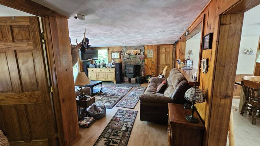 Nestled on the serene banks at the junction of Woodhull Creek and Bear Creek, this charming 3-bedroom, 1-bath double wide manufactured home offers a peaceful retreat for nature lovers and outdoor enthusiasts. Imagine cozy evenings in the spacious living room warmed by the glow of the pellet fireplace. The eat-in kitchen, complete with a stainless steel refrigerator, makes meal prep a breeze, and the convenience of a first-floor washer and dryer simplifies daily living. Wake up to breathtaking water views from the master bedroom, and spend your afternoons relaxing on the deck overlooking the creek. Family gatherings are made memorable with a dedicated fire pit area. A shared driveway ensures easy access, and a 1-stall garage with a workshop provides ample storage for snowmobiles and other equipment. Purchasing this property grants you access to Bear Creek Golf Club, along with over 500 acres for various recreational activities. Enjoy year-round outdoor fun, including ATV riding, snowmobiling, and cross-country skiing. Embrace the tranquility of waterfront living and create lasting memories in this idyllic setting. This is more than a home; it's a lifestyle. In both streams, there are trout fishing at its best and big game and small hunting close by.