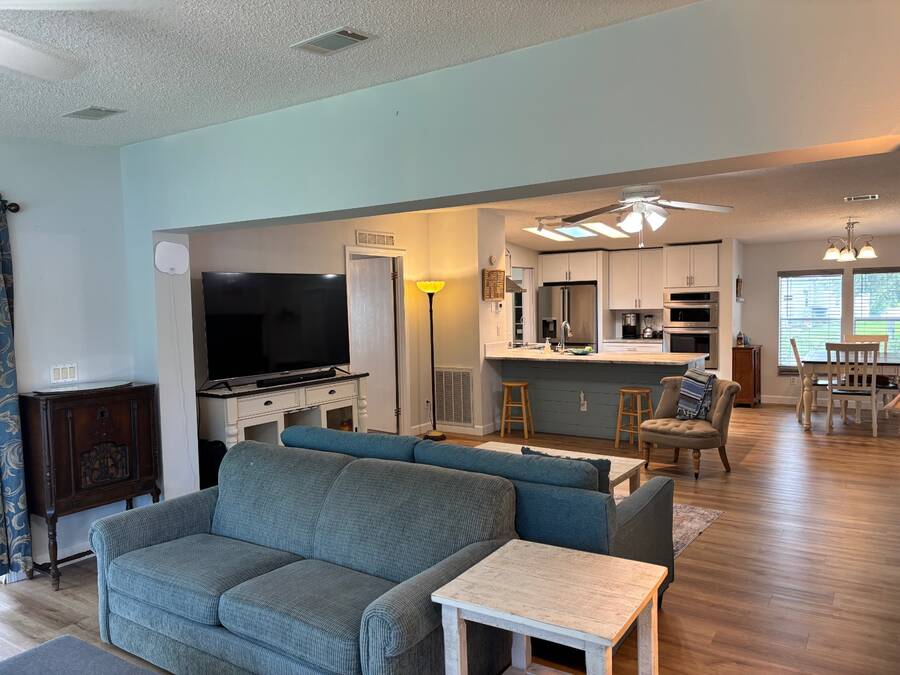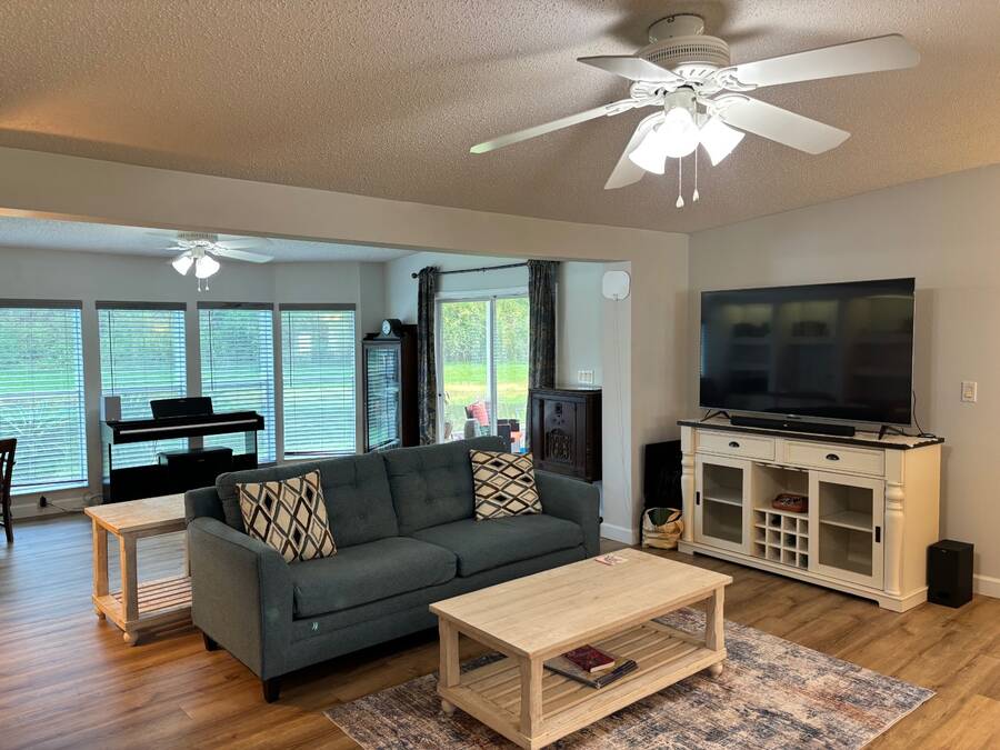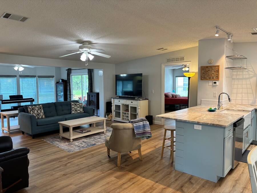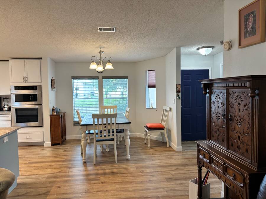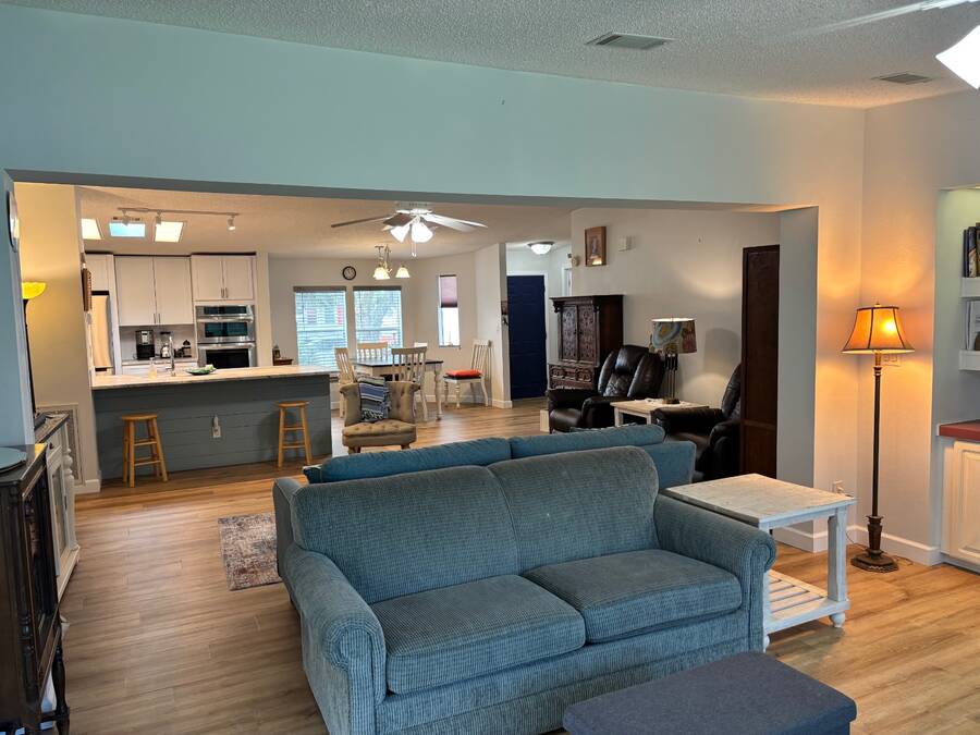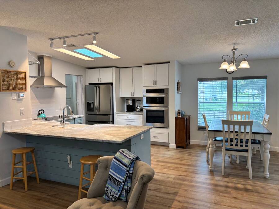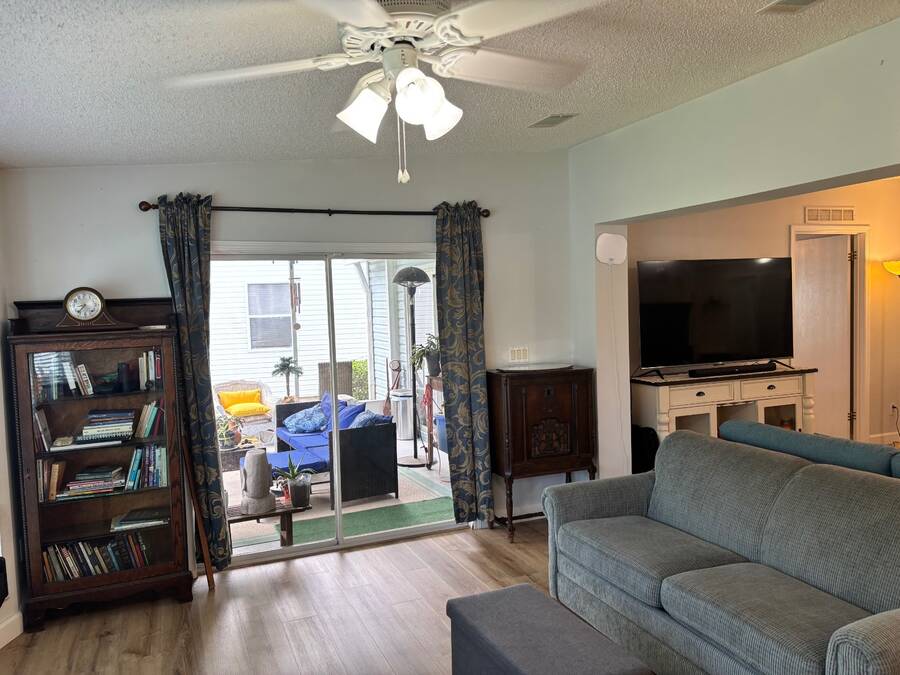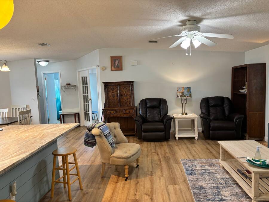 15,000 PRICE ADJUSTMENT FOR A QUICK SALE!!! This move-in ready 2 bedroom, 2 bathroom Jacobsen home is located in the sought-after age-qualified, land-lease community of Coquina Crossing. Thoughtfully updated, the home features a beautifully renovated kitchen, luxury vinyl plank flooring throughout, and upgraded plumbing for added peace of mind. The roof was replaced in 2022, and the air conditioning system was updated in 2021. This home features a spacious great room that offers versatility-easily arranged as two separate sitting areas to suit your lifestyle. One area opens directly into the screened porch, where you can unwind while enjoying peaceful views of the water and surrounding nature preserve. The kitchen is equipped with modern cabinetry, stainless steel appliances, and elegant granite countertops. It opens to a bright dining area and convenient sit-down bar, while the adjoining laundry area provides easy access to the oversized two-car garage. Two oversized bedrooms in a desirable split floor plan provides privacy and comfort for both family and guests. The master suite features a sliding glass door that opens directly to the screen room-perfect for morning coffee or evening relaxation. Behind a stylish sliding barn door, you'll find a spacious en-suite bathroom complete with a walk-in shower, soaking tub, double sinks, and a private toilet area for added convenience. The guest bedroom features double French doors, an oversized closet, and convenient access to the nearby guest bathroom, making it perfect for visiting family or friends. Coquina Crossing is a gated, age-qualified community featuring Club Coquina, where residents can enjoy an impressive array of amenities including tennis, bocce ball, pickleball, indoor and outdoor pools, a library, card and billiard rooms, a ballroom, and so much more-all designed to support an active and social lifestyle and meet new friends. All listing information is deemed reliable but not guaranteed and should be verified through personal inspection by appropriate professionals of Buyer's choice. Resale Home Solutions, LLC cannot guarantee or warrant the accuracy of any information, measurements, or condition of any home, as information was provided by the Seller. Measurements are approximate and should be verified by the Buyer. The buyer is responsible for obtaining all rules and regulations, prospectus, pet policies, and any other information regarding the community from the community management office, as we are not responsible for their fee and policies.