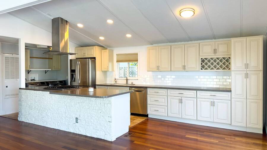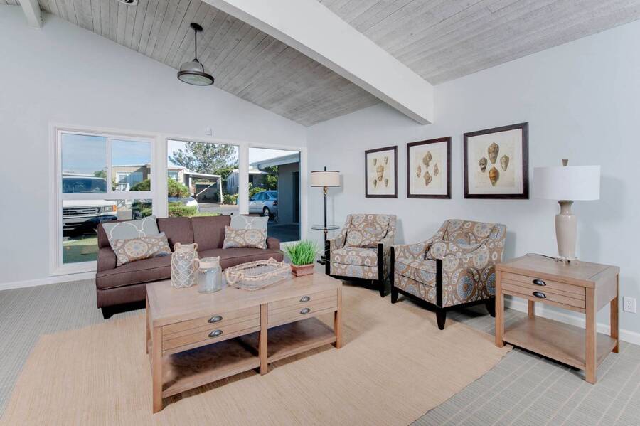 Discover the unparalleled lifestyle that awaits you at 6550 Ponto Dr. Schedule a private tour today and take the first step toward your dream coastal home. Welcome to 6550 Ponto Drive, a beautifully updated 2-bedroom, 2-bathroom home located in the premier all-age community of Lanikai Lane in Carlsbad, California. This move-in ready residence offers an open floor plan with a modern kitchen featuring granite countertops, stainless steel appliances, and a subway tile backsplash. The spacious wrap-around deck is bathed in natural light, providing an ideal space for relaxation and entertaining. Both bathrooms have been stylishly remodeled with custom cabinetry and tiled showers, while wood flooring adds warmth throughout the home. Additional conveniences include in-home laundry facilities and a storage shed. Lanikai Lane spans over 14 acres directly across from Carlsbad State Beach, offering residents resort-style amenities such as a gated entrance, outdoor pool with hot tub and lounge area, clubhouse with full kitchen, library, flat-screen television, game room, bocce ball court with BBQ area, convenient laundry center, and on-site management office. This home provides comfort and leisure, situated just minutes from shopping, dining, and the beach. Embrace the coastal lifestyle at its finest.