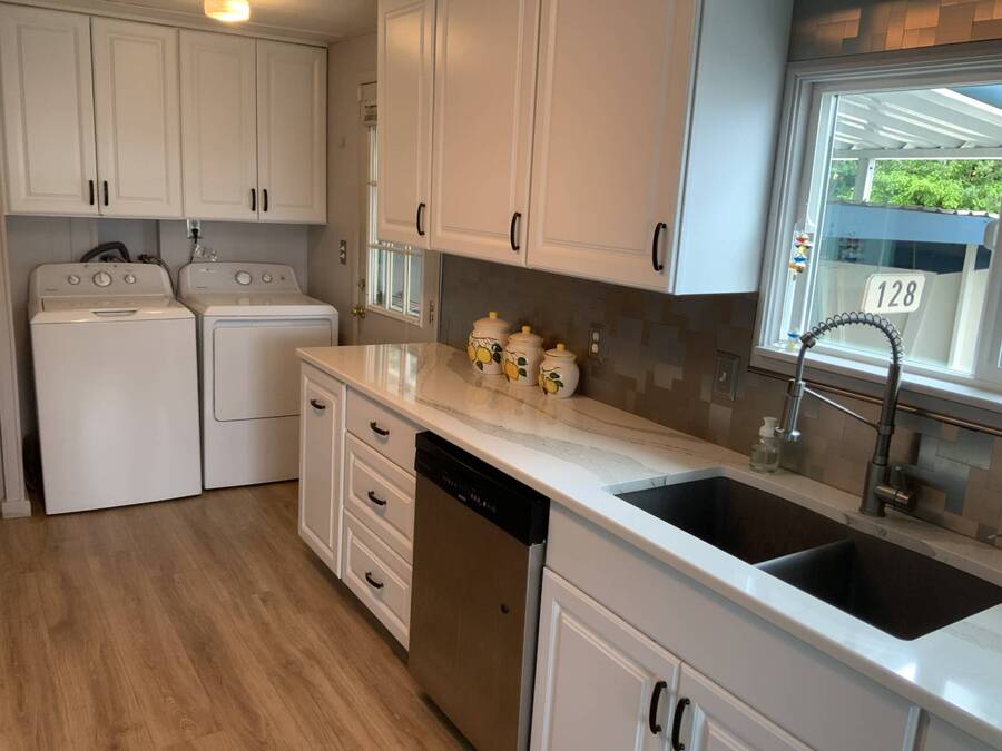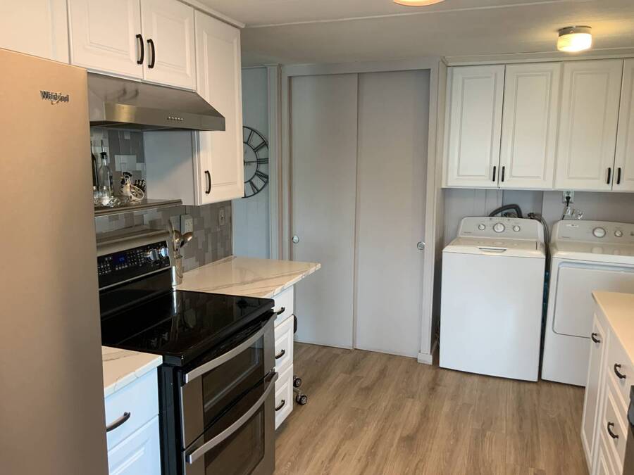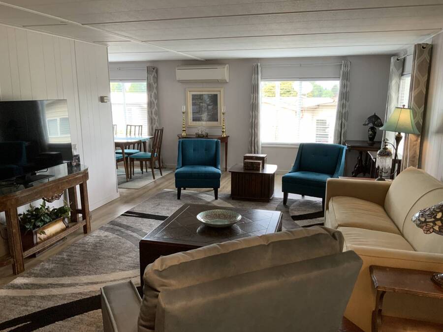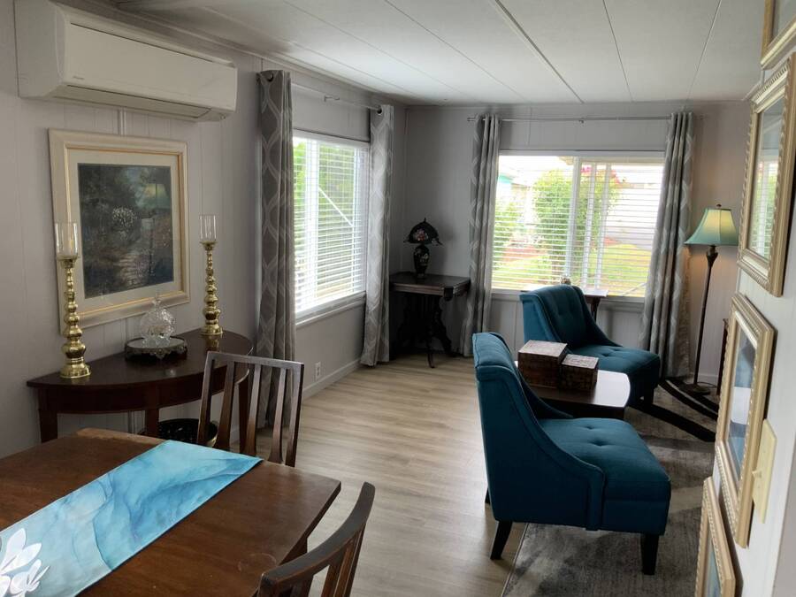 Welcome to Unit 128-your opportunity to own a fully remodeled, move-in ready home in Hazel Dell Estates, a peaceful and well-maintained 55+ community in Vancouver, WA. Whether you're downsizing, investing, or simply embracing a quieter lifestyle, this home offers the perfect blend of comfort and convenience. Featuring 2 bedrooms, 2 bathrooms, and a bonus room or den, the bright and open layout is filled with natural light. Enjoy the privacy of a fenced yard, covered parking, and a fresh, modern interior. A full remodel has just been completed and includes brand-new exterior siding, energy-efficient windows, all-new flooring, solid-surface countertops, new appliances, and fresh interior paint. The home is also equipped with two energy-efficient mini-split heating and cooling units, along with updated bathrooms featuring a new tub, shower, and toilets. Lot rent is affordably set at under $800 per month through August 2026. Located just minutes from shopping, restaurants, I-5 access, and public transit, this home combines ideal location with outstanding value. Hazel Dell Estates offers a vibrant community lifestyle with amenities like an active resident clubhouse, sports courts, a dog park, and safe, walkable streets surrounded by friendly neighbors. Priced to sell-don't miss out on this affordable gem!