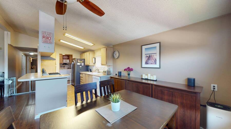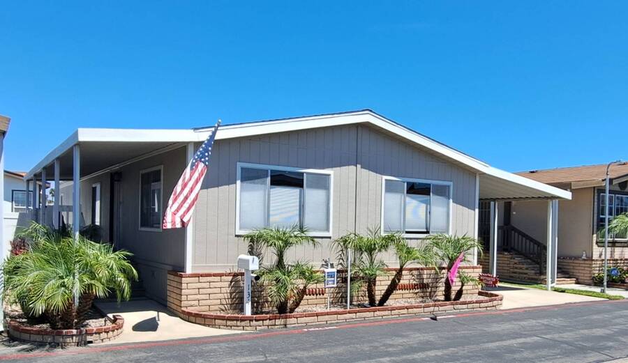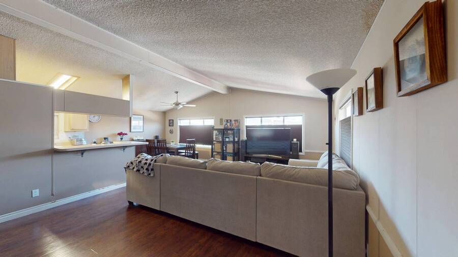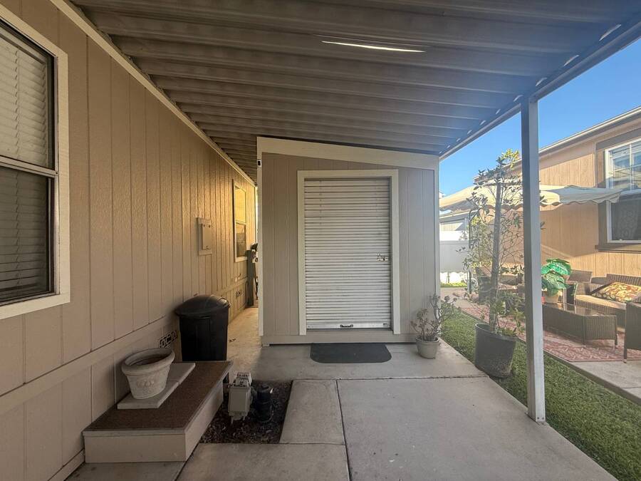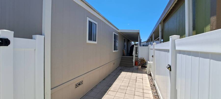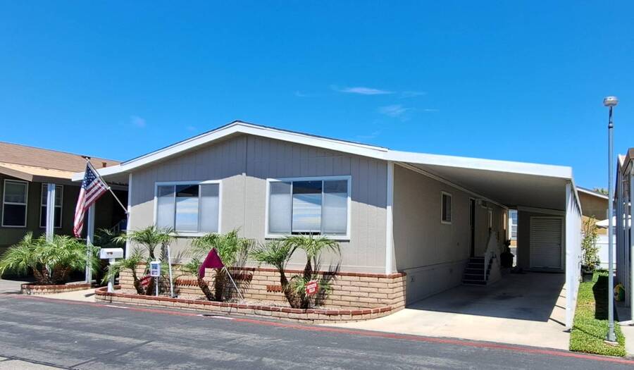 Community Information Fountain Valley Estates Lovely all age community of Fountain Valley #2 School District in all of Southern California Fountain Valley Estates Located at 9320 Talbert Ave. this park has 192 spaces. CA. Every homesite has its own street address and all residents use this actual address. All Age Community, Clubhouse, Heated Pool, Jacuzzi, Basketball Courts, Resident Manager, Walk to High School (2 blocks), 1 Small Pet Okay (dogs under 22 lbs) Walking Allowed IN PARK park has a fenced Dog Park, 6' High Vinyl Fencing Allowed. A wonderful family friendly community which features five star amenities. Why buy a condo with higher monthly expenses and have to share a wall with your neighbor, when you can purchase a newer home with more square footage??? Home Information 1989 Goldenwest 1344 sq ft 3 Bedrooms, 2 Baths 2019 New Roof Side Porch 3 Car Parking Open Floorplan Laminate Flooring & Newer Vanities Fenced in 6' Tall Yard Roll up Door on Shed