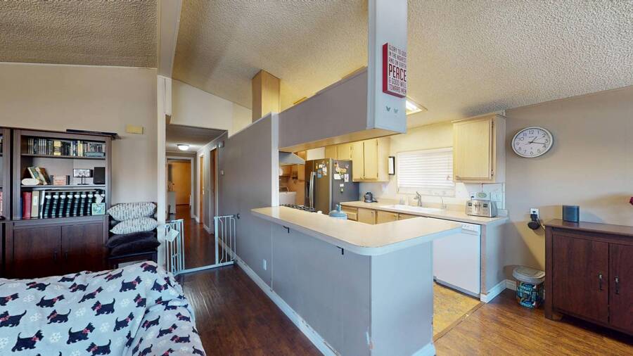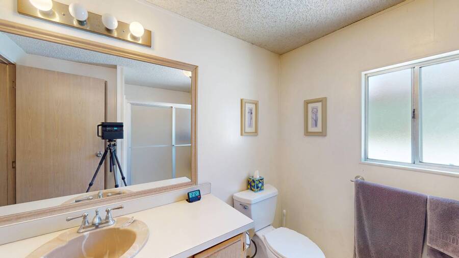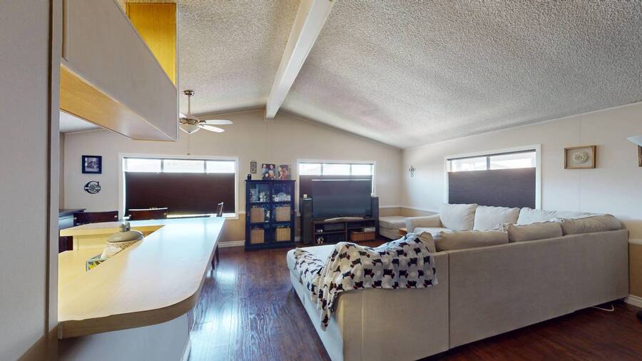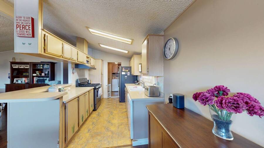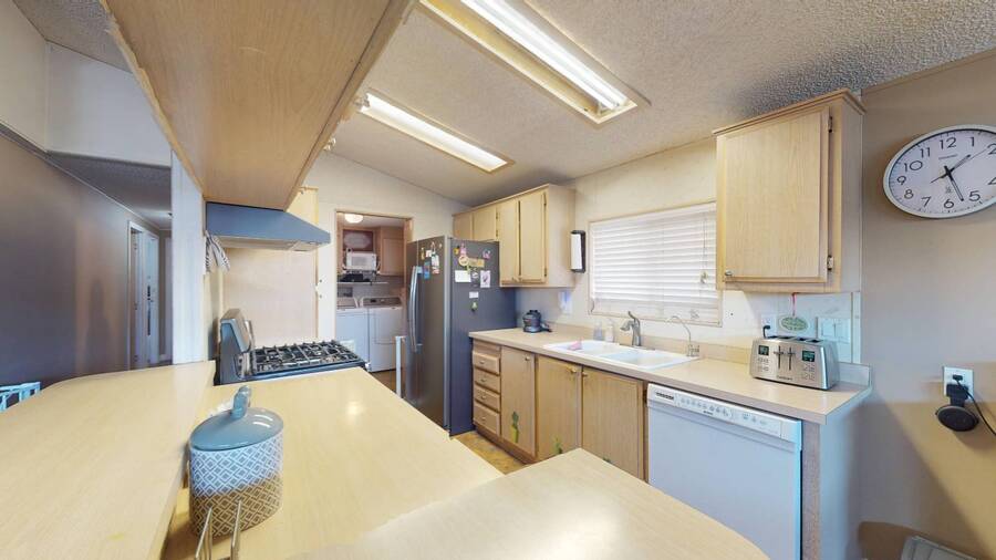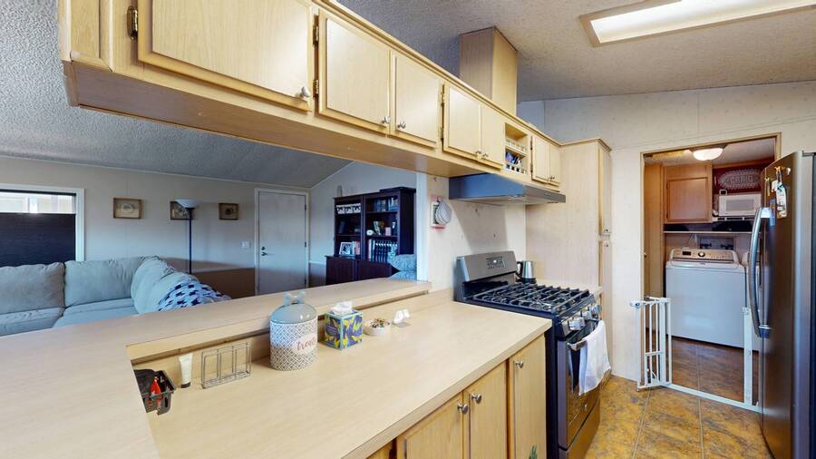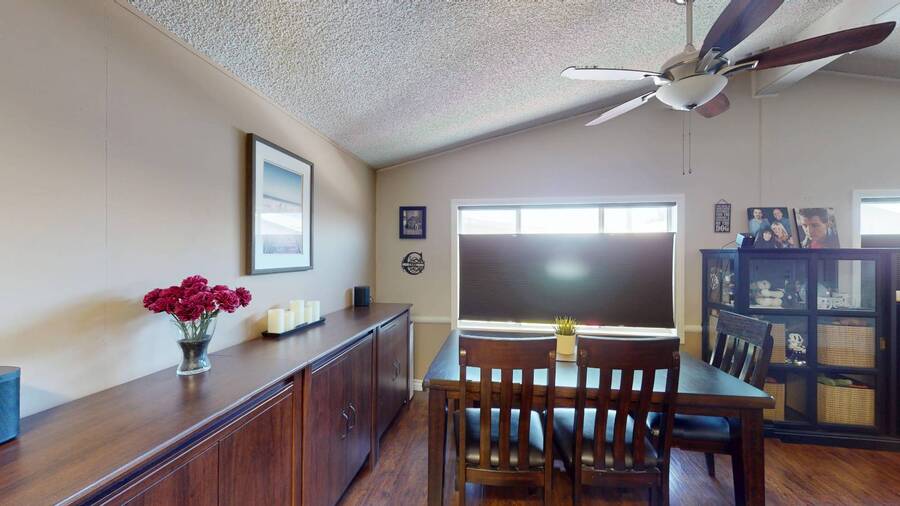 Community Information Fountain Valley Estates Lovely all age community of Fountain Valley #2 School District in all of Southern California Fountain Valley Estates Located at 9320 Talbert Ave. this park has 192 spaces. CA. Every homesite has its own street address and all residents use this actual address. All Age Community, Clubhouse, Heated Pool, Jacuzzi, Basketball Courts, Resident Manager, Walk to High School (2 blocks), 1 Small Pet Okay (dogs under 22 lbs) Walking Allowed IN PARK park has a fenced Dog Park, 6' High Vinyl Fencing Allowed. A wonderful family friendly community which features five star amenities. Why buy a condo with higher monthly expenses and have to share a wall with your neighbor, when you can purchase a newer home with more square footage??? Home Information 1989 Goldenwest 1344 sq ft 3 Bedrooms, 2 Baths 2019 New Roof Side Porch 3 Car Parking Open Floorplan Laminate Flooring & Newer Vanities Fenced in 6' Tall Yard Roll up Door on Shed