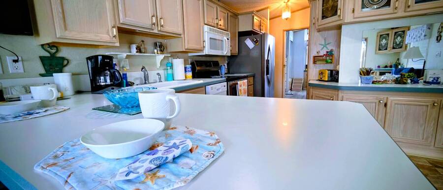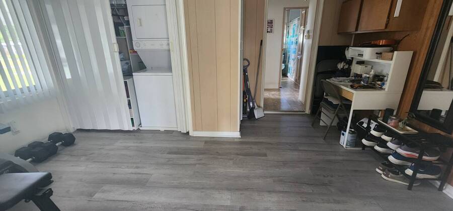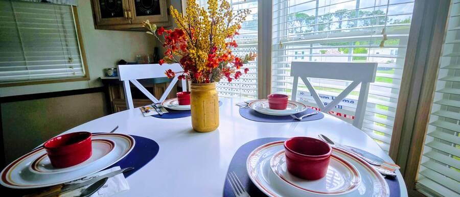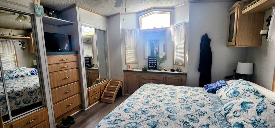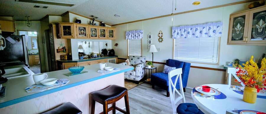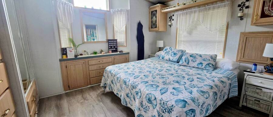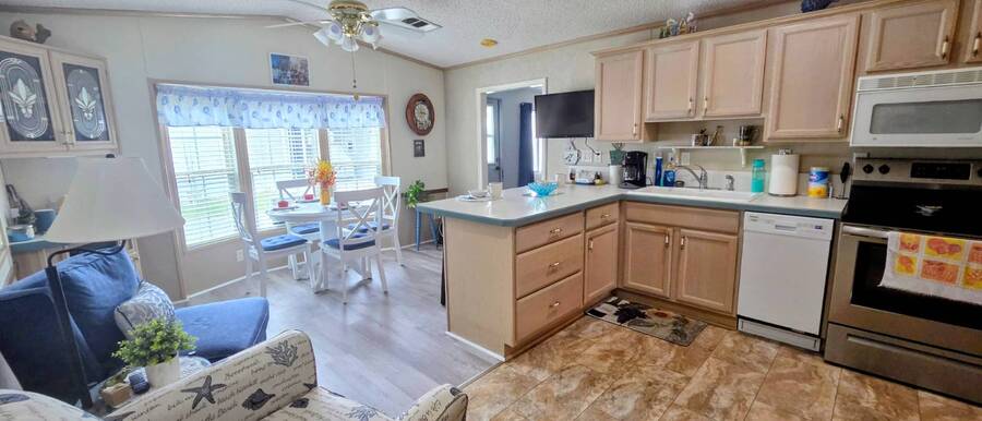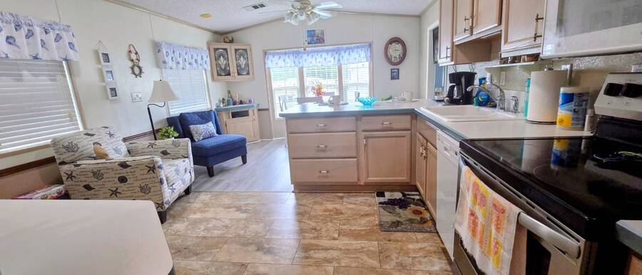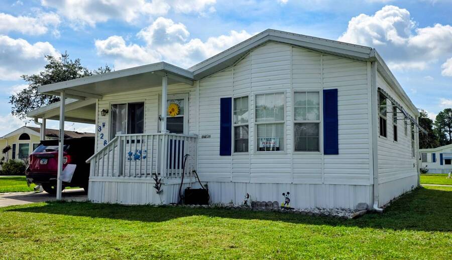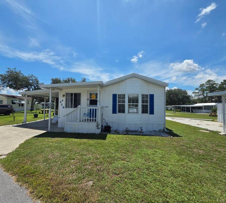 COMMUNITY: Welcome to Holiday RV Village a sought after fun in the sun resort community. 55 plus gated community sitting on 200 acres, complete with 2 pools, private Marina with Chain of Lakes access, planned activities, onsite cafe, pet friendly 2 dog max and a ton of Resort style amenities. Close to Disney, local springs, beaches and many other local attractions. FEATURES: Upgraded LVT flooring, 2021 Central Air unit, New roof 2024, and updated bathroom with step in shower. 14 wide, 11x36 one level addition, 886 square feet. 11x14 bedroom which fits a King, new refrigerator, screen room with double door, 2 carport areas. BENEFITS: Desired WEST 3 side, recent 4 point inspection, newer roof and central ac. Rare find with 14 wide roomy and spacious, coming mostly furnished for an easy move! Indoor laundry and potential area for second bedroom! Lifestyle fee includes water, sewer and trash and is below local average!!!