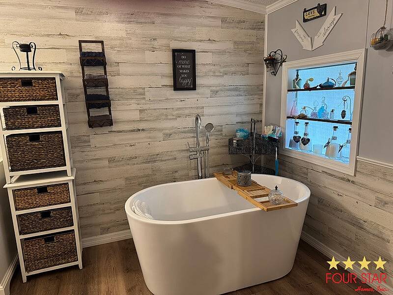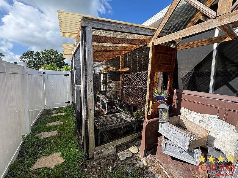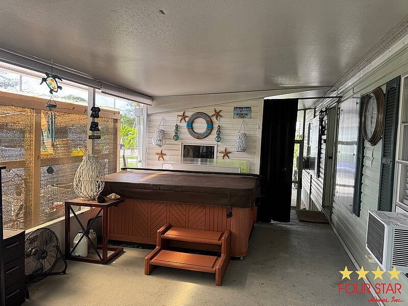 This warm and welcoming 3 bed 2 bath almost 1300 sq ft home could be your dream come true in sunny Florida! Located in a lovely all age community that boasts a lot of amenities for adults and kids alike. A large open floor plan with plenty of entertaining space with 3 split bedrooms for added privacy. Home comes fully furnished! Decorator quality furniture and has been completely remodeled for peace of mind and enjoyment. Engineered hardwood luxury water resistant flooring throughout entire home! Upgraded metal roof 4 yrs old, 40 plus yr wear! Large gourmet kitchen with newer high end stainless steel and black appliances and brand new $3500 range, oven and hood vent. An abundance of storage in this home including walk in closets in all bedrooms! New hot water heater and yearly maintained ac unit in perfect working condition. For added safety and security a ring alarm system with 2 cameras, fire and carbon monoxide detectors, UV panels and clear hurricane shutters on all windows. Updated new electric system for efficiency. Large double shed 7x18 for all those new hobbies and crafts. Large tropical screened in porch with comfy seating area and 6 person walk in hot tub! Beautiful decorated and upgraded bathrooms with double vanities and a new stand alone spa tub in master bath. The amazing back yard is a vacation at home with a 6 ft privacy fence, patio area with furniture and grill, fire pit area, sprinkler system in front and back yard, lush tropical landscaping with rarely seen plants, A personal green house to grow your own fruits, vegetables, and herbs. Large, expanded driveway for 3 cars and golf cart! This home has it all, a rare find in a park that has low inventory. Lake wood village, all age community park in Vero beach Florida . Close to shopping, expressway, and 15 minutes to pristine Atlantic beaches. Incredibly low lot rent on leased land of $745 includes water, sewer and trash pick up. Must be park approved for sale of home. Come make this home your today!