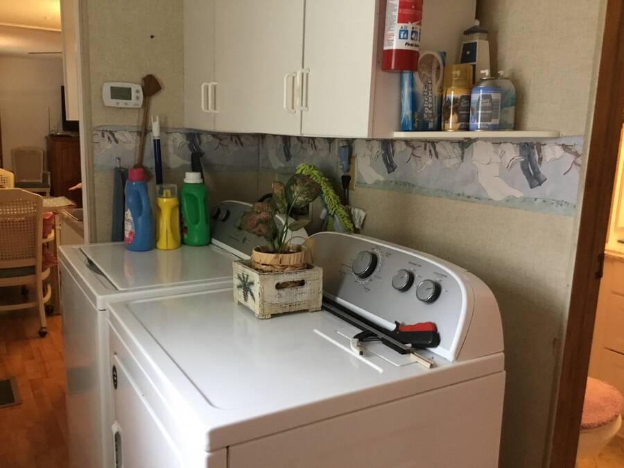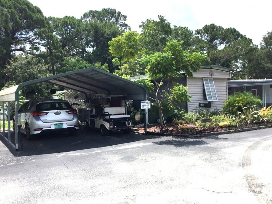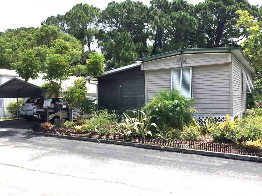 Welcome home to this lovely FURNISHED two-bedroom, one-bath oasis with lots of updates. Located in the pet-friendly, 55+ Whispering Pines community of beautiful Titusville, Florida. Features include TWO sheds on a LARGE lot with a double carport for off-street parking, AND TWO Florida rooms for your comfort! One sun room offers vinyl windows to let gentle breezes in for fresh air, and the other Florida Room is completely enclosed to add to your living space! The roofing on the Florida rooms includes NEW 3" insulation before being redone in 2022, and the A/C was put in approximately 2020. Owners also added plantation shutters to guard against the weather. In addition, renovations to the kitchen include NEW modern white cabinetry and new countertops. Enjoy your culinary skills with a NEW large refrigerator and a newer gas stove! The eat-in kitchen is convenient for dining, with meal prep a breeze. Kick back in your living room or retreat to either bedroom for a good night's rest. Awake refreshed for another day in paradise! This home is turnkey with everything you need! Lot rent in Whispering Pines is currently $640 per month and does not include water, sewer, or garbage; however, the park is pet-friendly for most nonaggressive breeds. Amenities for residents include: a clubhouse with activities, shuffleboard, horseshoes, laundry facilities, and a bathhouse. Conveniently located just minutes to US HWY 1 where the Kennedy Space Center is situated right across the Indian River Lagoon! Enjoy views of rocket launches on the coast. Also, Only minutes to I-95 and about 30 minutes to the Cape Canaveral National Seashore or Cocoa Beach. Find adventure with coastal activities such as deep-sea fishing, sailing, beach exploration, seashell collecting, surfing, bird-watching, skydiving, and airboat rides, to name a few. Lots of attractions make this area desirable. Orlando airports are just 45 minutes away, convenient for travel. Whether you're looking for a full-time home or a seasonal getaway, look no further! Call today to begin leisure and lifestyle in beautiful Florida! All listing information is deemed reliable but not guaranteed and should be independently verified through personal inspection by appropriate professionals. Our company does not and cannot guarantee or warrant the accuracy of this information or the condition of this property. Measurements are approximate. The buyer assumes full responsibility for obtaining all current rates of lot rent, fees, and pass-on costs. Additionally, the buyer is responsible for obtaining all rules, regulations, pet policies, etc., associated with the community, park, or home from the community/park manager. Our company is not responsible for quoting said fees or policies. Financing is available through 3rd party lenders. The sales price does not include tax, dealer fees, or administrative fees. Please contact the sales agent for additional information.