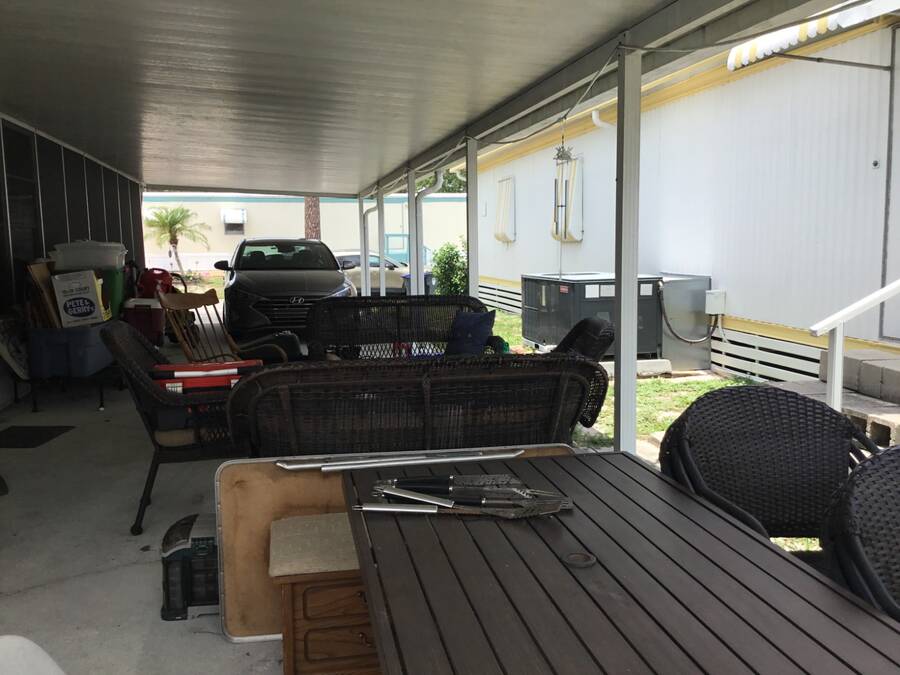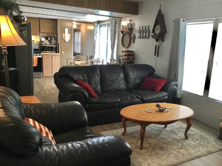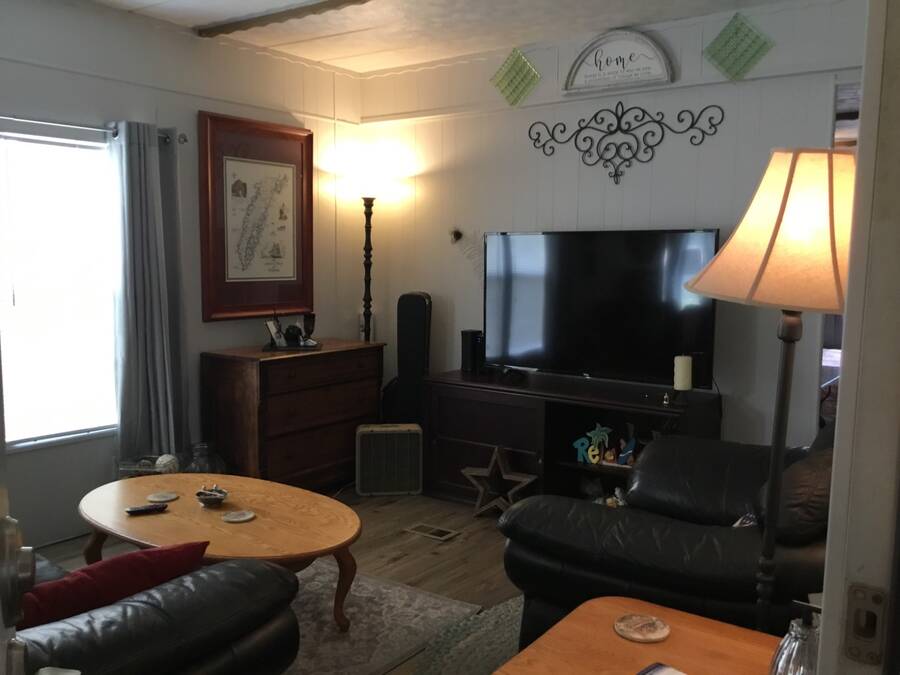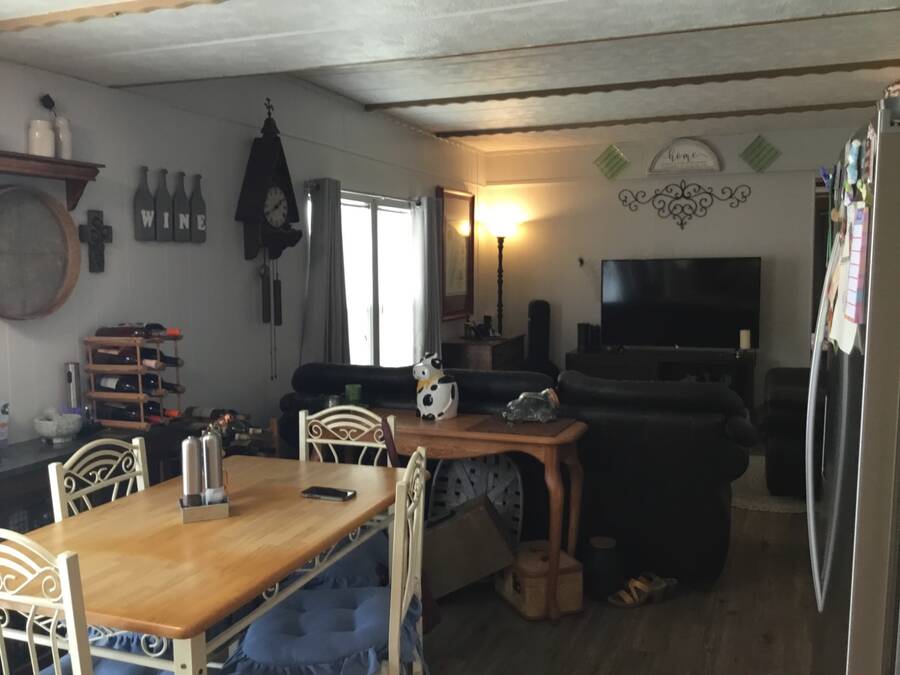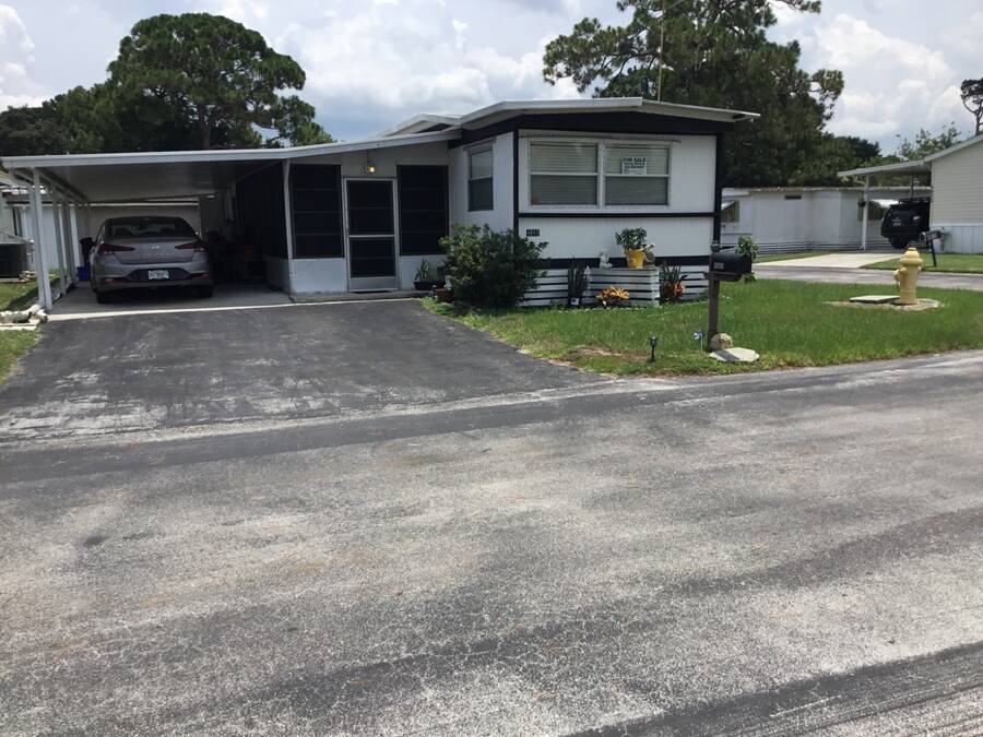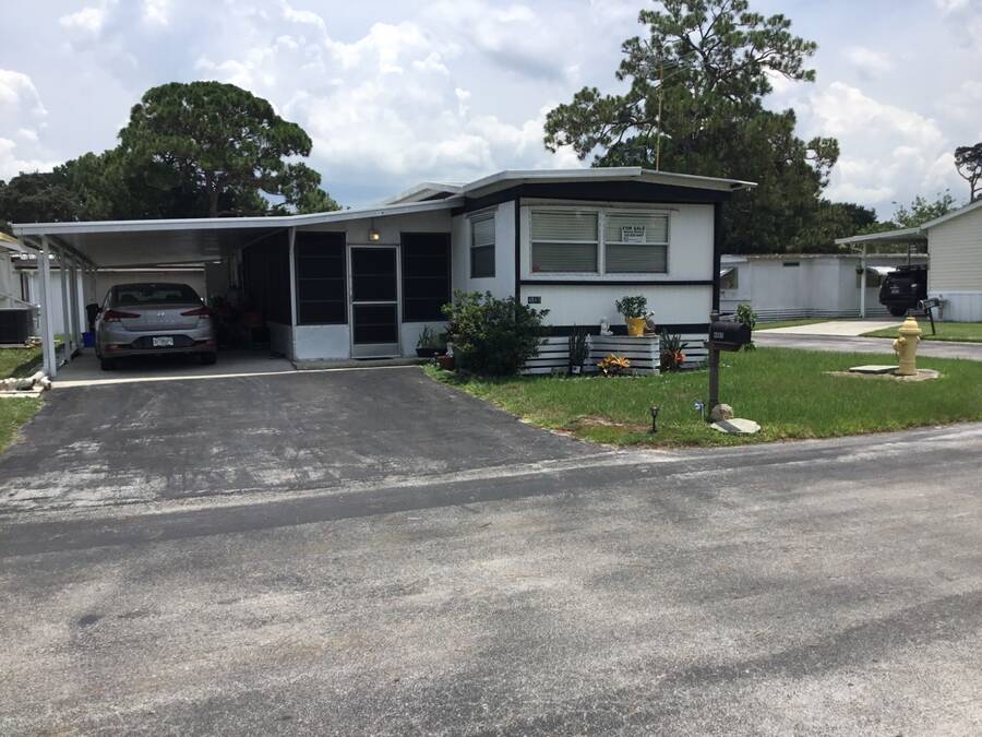 Welcome home to your new coastal lifestyle in beautiful Titusville, Florida! This charming home is not only situated on a spacious corner lot, but the enclosed porch and cathedral ceilings give this oasis a boundless feel throughout. In addition, a split plan offers comfort and privacy with a guest bedroom and bathroom in the front of the home and the master bedroom and ensuite to the rear. Updates include a central wall removed to create an open space in the heart of this home. Enjoy the open kitchen/dining/living area; relax in your cozy living room after an easy meal prep in the functional eat-in kitchen boasting an abundance of cabinets and counter space. Your culinary skills become effortless with modern appliances: a stainless steel range, side-by-side refrigerator with ice/water dispenser, and countertop microwave. Next, retreat in the large, enclosed Florida room with a favorite beverage, a good book, or a special companion. Keep cool with Central A/C and plenty of ceiling fans throughout. The attached shed offers space for laundry as well as storage for extra gear. More new features include NEW laminate flooring in the kitchen, living room, and hallway, along with the subflooring. A new toilet and vanity were added in the bathroom, which also presents a large walk-in shower for your convenience. The carport will accommodate three vehicles and enough room for an outdoor patio and grill. Have a cookout with friends and neighbors. The Lot rent is currently $640 per month; however, water, sewer, and garbage are not included. Whispering Pines MH Park is located just minutes from US 1 and I-95. This park does allow pets; however, no aggressive breeds and all residents will have to go through a park approval process. Whispering Pines offers amenities for residents that include a clubhouse, shuffleboard, horseshoe pit, bath house, and laundry facilities. The park is very close to the Indian River Lagoon, where you can watch the rocket launches from the Cape Canaveral Space Station. In addition, it is centrally located for access to coastal destinations such as Daytona Speedway, as well as Disney/Orlando attractions. Everyone can have fun with a variety of activities on the East Coast, including airboats, skydiving, bird-watching, surfing, sunning, shelling, deep-sea fishing, and so much more. Only 30 minutes to the famous Cocoa Beach or the Cape Canaveral National Seashore, and about 45 minutes to the Orlando Airport and attractions. Whether you are looking for a home year-round or a seasonal getaway, make this your next adventure! All listing information is deemed reliable but not guaranteed and should be independently verified through personal inspection by appropriate professionals. Our company does not and cannot guarantee or warrant the accuracy of this information or the condition of this property. Measurements are approximate. The buyer assumes full responsibility for obtaining all current rates of lot rent, fees, and pass-on costs. Additionally, the buyer is responsible for obtaining all rules, regulations, pet policies, etc., associated with the community, park, or home from the community/park manager. Our company is not responsible for quoting said fees or policies. Financing is available through 3rd party lenders. The sales price does not include tax, dealer fees, or administrative fees. Please contact the sales agent for additional information.