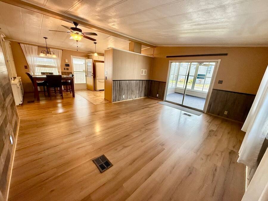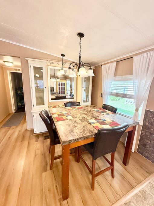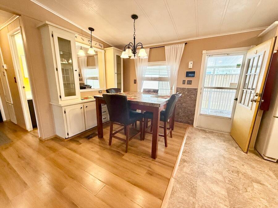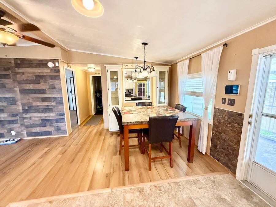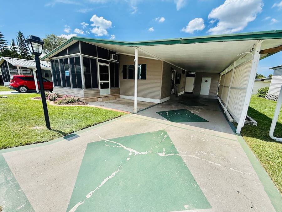 MOTIVATED SELLER, BRING ALL OFFERS.INVITING 2-BEDROOM, 2-BATHROOM HOME AVAILABLE AT A GREAT PRICE IN DESIRABLE HIGHLAND VILLAGE!! As you step inside, observe the kitchen showcasing a modern backsplash, flooring, and appliances which consist of a stove (2019), built in microwave (2019), and dishwasher (2022). The formal dining room features a built-in hutch adding additional storage options. Furthermore, this home offers several additional perks, such as a Vivint security system with cameras, vaulted ceilings, ample driveway parking enclosed by a privacy fence, and more. With TWO shed options, there is plenty of storage space available. Top it all off with the air conditioning unit, installed in 2020, complete with a UV light warranty. This house, offered at an attractive price, will not stay available for long! Contact us and discover it for yourself today! **Home is sold partially furnished as listed below.** Active, 55+ community located in south Lakeland, FL, with numerous waterfront properties. Highland Village has so much to offer! Amenities include pool, fitness center, library, community room, horseshoes, shuffleboard courts, fishing dock and more. Laundry facilities also available. Smaller dogs (under 40lbs) with breed restrictions allowed. Within minutes of shopping, restaurants, and entertainment. 80/20 Rule. Rentals allowed. Motorcycles allowed. Lot Rent $1,045 includes water, sewer, trash, and tree upkeep. KITCHEN: 10 x 12 • Vinyl Flooring • Chandelier • Refrigerator - GE • Stove - GE (2019) • Microwave - Whirlpool (Built-In) (2019) • Dishwasher - Frigidaire (2022) • Updated Backsplash • Pantry - 1 DINING ROOM: 8 x 10 • Vinyl Flooring • Chandelier • Built-In Hutch • Table with 4 Chairs LIVING ROOM: 14 x 18 • Vinyl Flooring HALL STORAGE: • Linen Closet MAIN BATHROOM: 6 x 9 • Vinyl Flooring • Single Sink • Tub/Shower Combo • Mirrored Medicine Cabinet • Linen Closet MASTER BEDROOM: 14 x 14 • Carpet Flooring • Ceiling Fan with Light • Walk-In Closet: 8 x 8 (Built-In) • King Bed MASTER BATHROOM: 6 x 9 • Laminate Flooring • Single Sink • Walk-In Shower • Mirrored Medicine Cabinet • Linen Closet GUEST BEDROOM: 10 x 12 • Laminate Flooring • Walk-In Closet: 4 x 6 (Built-In) • Bunk Beds • Dresser - 1 SCREEN ROOM: 12 x 14 • Carpet Flooring • Ceiling Fan with Light • Located Off: Living Room SHED/LAUNDRY: 8 x 10 • Concrete Flooring • Washer Hookup • Dryer Hookup 2ND SHED: 8 x 10 • Concrete Flooring EXTERIOR: • Vinyl • Single Pane Windows • Gutters • Carport: Single • Roof Type: Metal • A/C: Franklin (2020) • Air Vents Location: Floor COMMUNITY: • Clubhouse • Pool • Horseshoes • Billiard Room • Fitness Center • Shuffleboard Courts • Library • Laundry Facilities The above information is not guaranteed. It is the buyer's responsibility to confirm all measurements, fees, rules and regulations associated with this particular park. This mobile home is sold "As Is" as described in the description above. There are no warranties or guarantees on this mobile home.