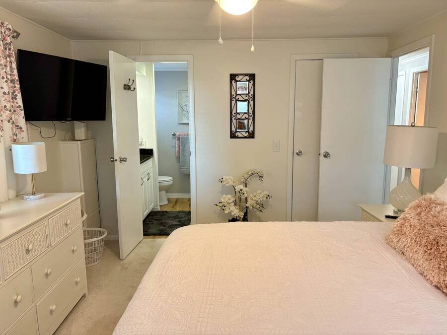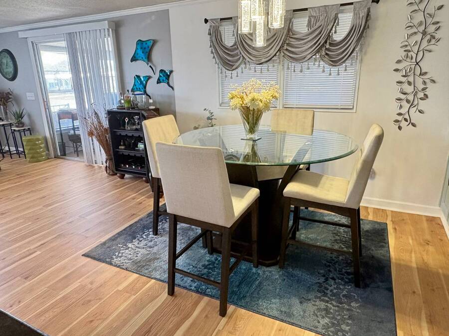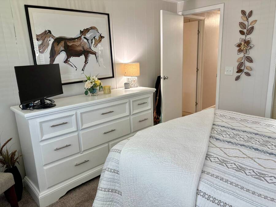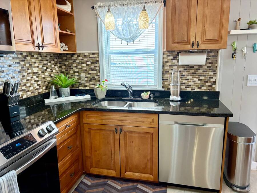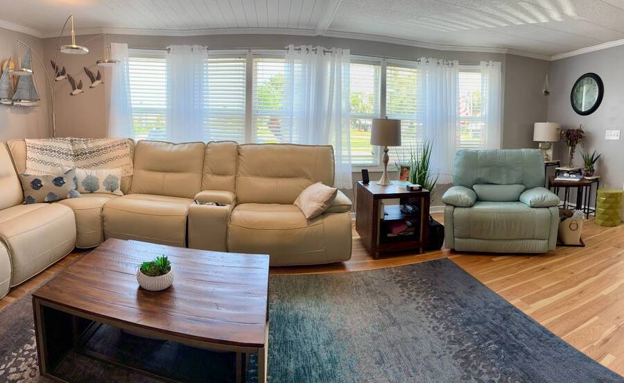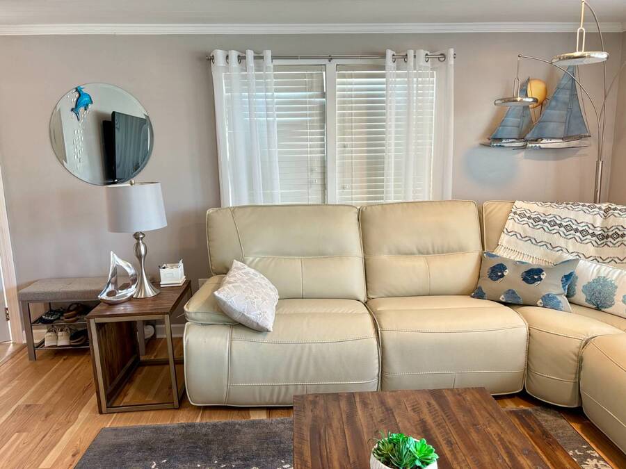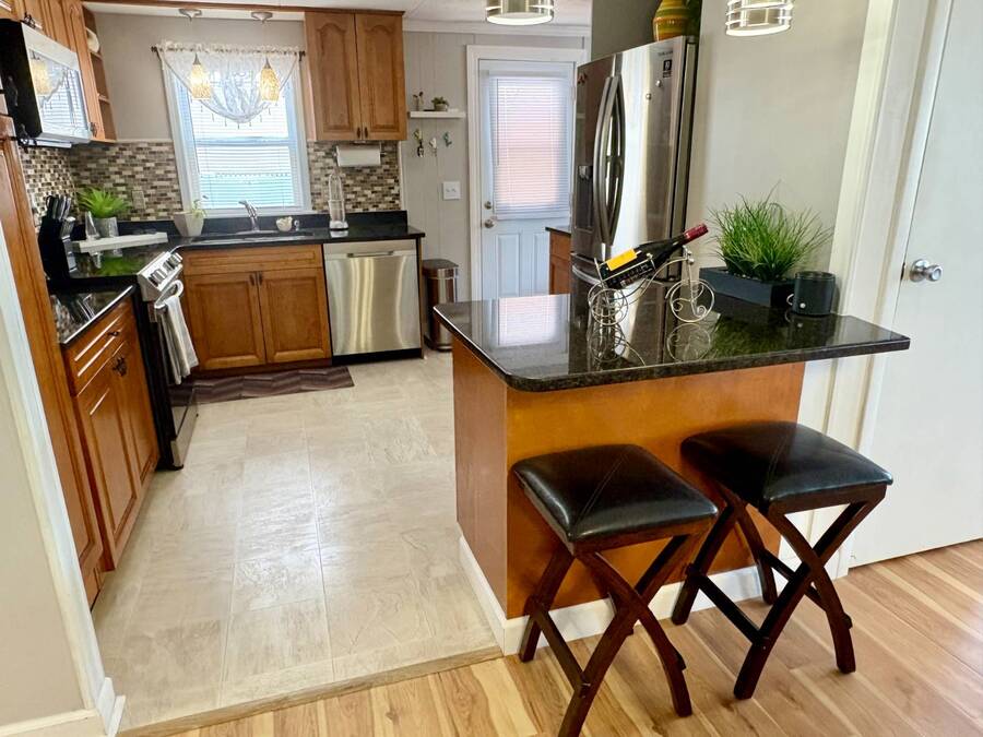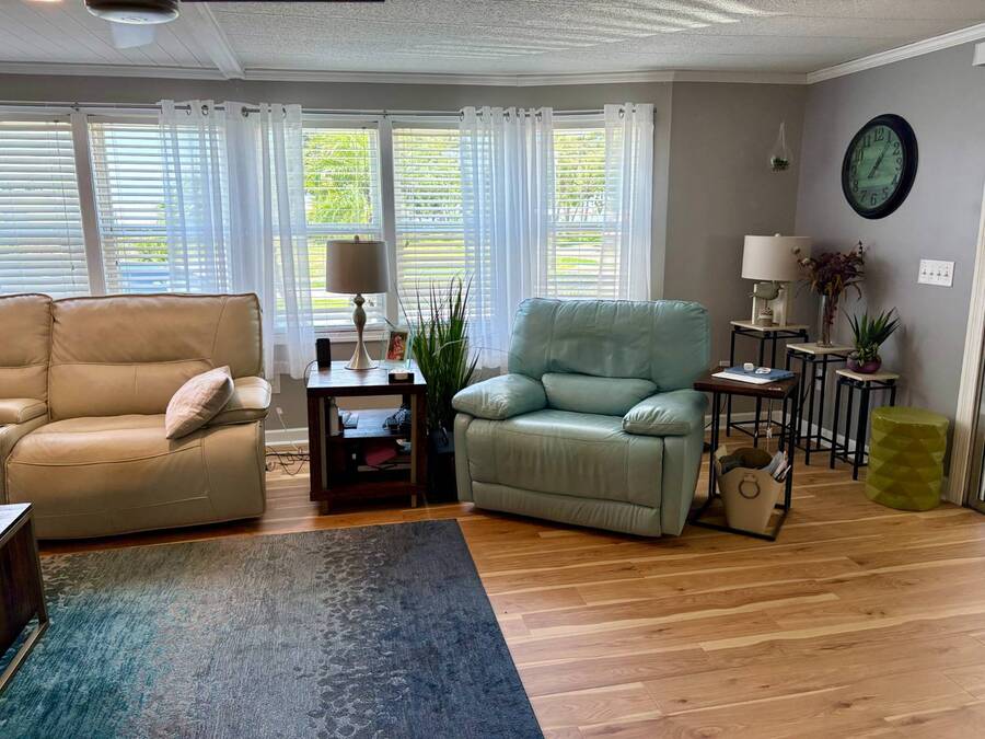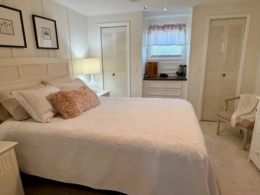 Renovated Coastal Retreat in the Heart of Bay Indies! Welcome to 951 Lucaya E., a rare gem tucked into the vibrant Bay Indies 55+ Resort Community-where relaxation meets active Florida living just 2 miles from Venice's famous white sand beaches and charming downtown district. Surrounded by world-class dining, boutique shopping, golf, and boating, this location checks every box. Travel with ease on golf carts with a motorcycle-friendly street, and enjoy the added convenience of RV and boat storage just down the road. Life here is both adventurous and effortlessly relaxed, with a plethora of resort-style amenities designed to keep you engaged or help you unwind at your own pace. Situated on a desirable corner lot, this fully renovated 24' x 50' home exudes curb appeal with an extra-wide custom paver driveway offering extra parking, and stylish outdoor seating area-perfect for sunset cocktails or morning coffee under the umbrella. Step inside and experience a home that rivals a new build with all the modern upgrades. The semi open-concept kitchen with granite counters, ceramic tile backsplash and flooring, black/stainless appliances, and wood-stained cabinetry with pendant lighting. 5 burner stove and small island offering extra seating. The dining area for 4 has a built-in wall unit for displays and added storage. The large living space features a plush sectional, leather chair, electric fireplace and large-screen TV. Also having recessed lighting. The inviting Florida lanai with carpeting, crank-out jalousie windows, desk nook, blinds, and a second electric fireplace for year-round comfort plus furniture to curl up to the TV or game night. The primary suite includes a king bed, built-in dresser, multiple closets-including a spacious walk-in-and an ensuite bath with walk-in shower and black top vanity. The guest room, tastefully styled, features a queen bed and dual closets. Both bathrooms and kitchen feature tile floors, while the rest of the home shines with new subfloors and vinyl plank flooring throughout. Outside, you'll find a private carport oasis with sunshades and fencing,and a second BBQ/lounge area. The laundry shed is complete with a utility sink, washer/dryer, and storage shelves. With newer double-pane tilt-sash windows, a 2024 A/C and roof, updated shed roofing, and offered fully furnished (turnkey) minus a couple of personal items, this is a rare opportunity to own a move-in-ready masterpiece on a premium lot. The Bay Indies Community has plenty of perks; within walking distance to park activities such as, engaging with friendly neighbors at one of the clubhouses, which host regular social events, fitness classes, and hobby groups. Take a dip in one of the three resort-style pools and spas, perfect for unwinding after a day of activities. Three mile walking path just outside your door, kayak storage and launch. Stay active with a fitness center, tennis courts, pickleball and more. Just 2.5 miles to shopping, dining, medical facilities, cultural attractions, and beautiful beaches, fishing, boating and airports, everything you need is just a short drive away. A casino in Tampa and the Tiger Woods Pop Stroke 2 course putting greens in Sarasota are a must.