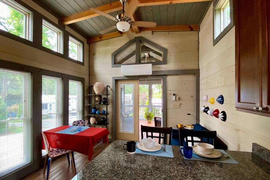 Step into this one-of-a-kind 1 bed, 1 bath tiny home that perfectly blends rustic charm with modern elegance. Featuring distinctive poplar bark siding and an all-wood interior, this home offers a warm, natural aesthetic that feels like a cozy mountain retreat. Inside, you'll find granite countertops, a brass bathroom sink, and a thoughtfully designed layout that includes a spacious sleeping loft, ideal for guests or storage. The inviting large screened-in porch extends your living space outdoors-perfect for relaxing, dining, or enjoying the fresh air year-round. The property also includes a powered work shed-perfect for a workshop, hobby space, or extra storage. This home offers comfort, character, and functionality all in one beautiful package.