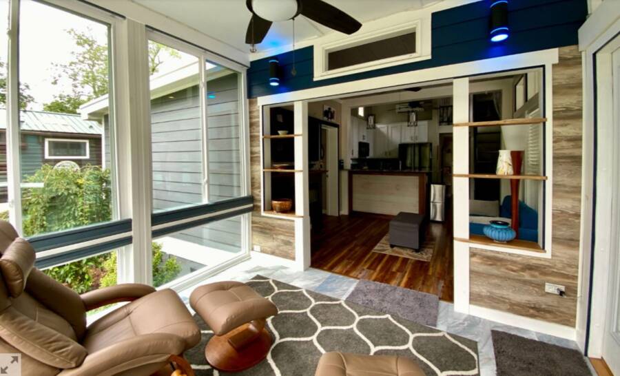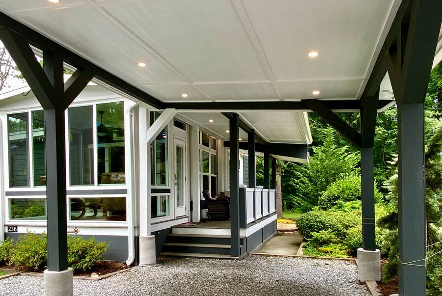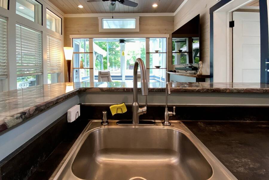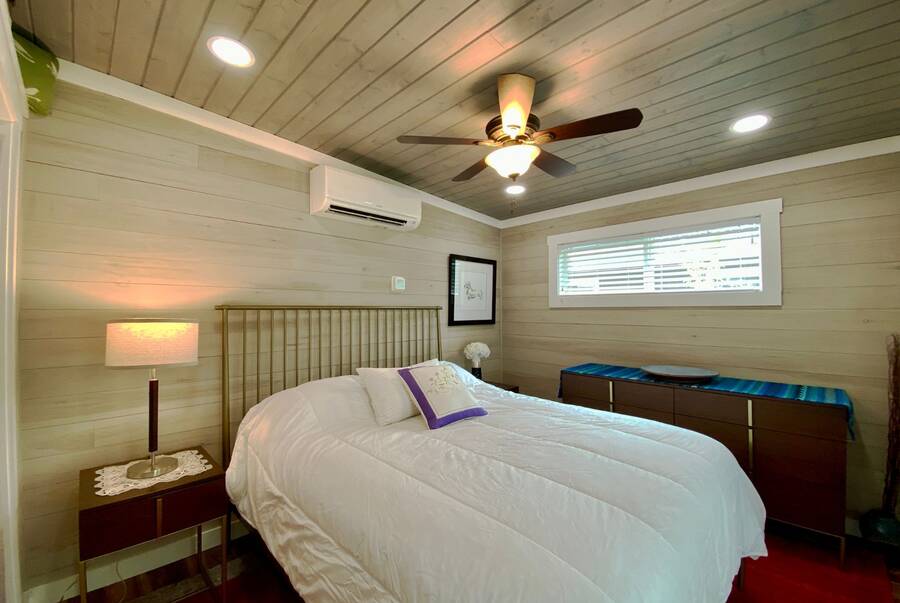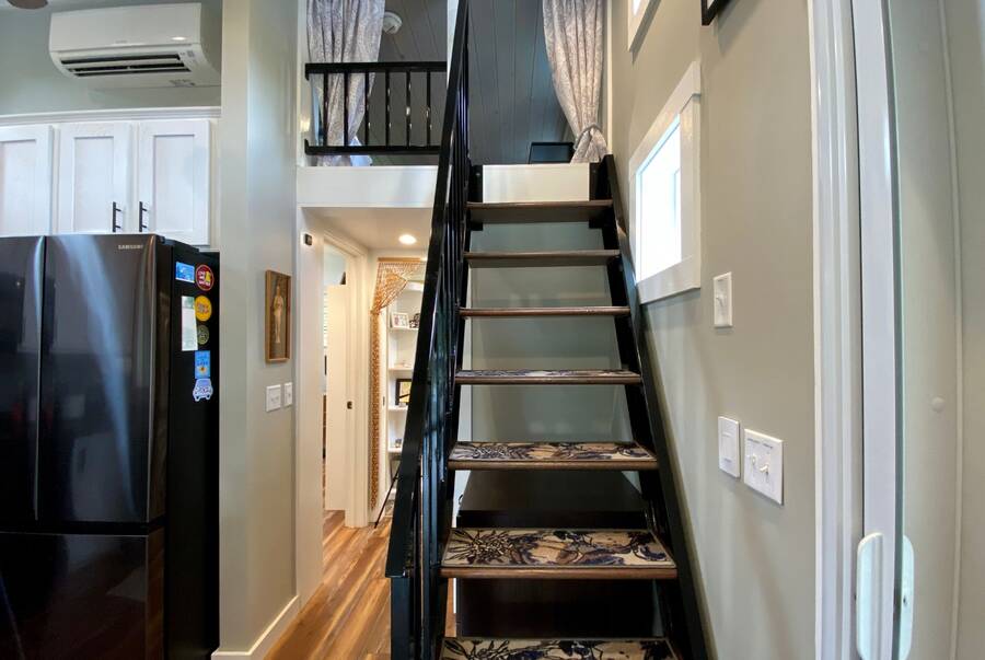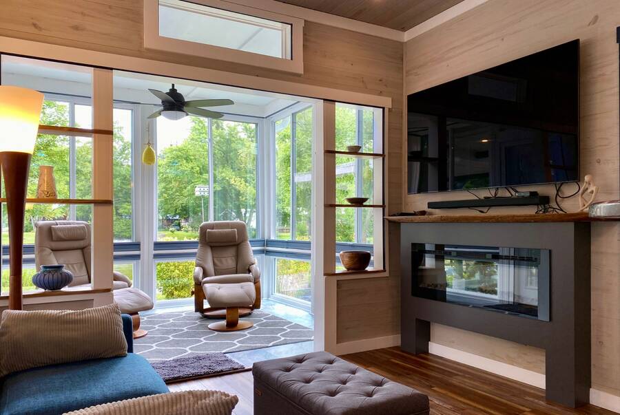 Situated in one of the most desirable areas of the community, this stunning 2 bed, 1 bath tiny home offers breath-taking pond views and a rare private, wooded backyard—perfect for relaxing, gardening, or enjoying nature in peace. Inside, you’ll find engineered hardwood floors, custom cabinetry, and rich walnut trim, shelving, and a mantel that add warmth and elegance to the spacious living room, complete with a cozy fire place. In addition, the home features a loft and abundant storage throughout, combining functionality with style. Step outside to enjoy a covered deck ideal for year-round enjoyment, plus a huge lighted carport that offers convenience and protection for your vehicle. A vapor barrier with circulation vent system underneath the home provides added durability and comfort. This home is a true gem—offering a perfect blend of luxury, functionality, and privacy. Here’s your chance to own a home in one of the most picturesque spots in the entire community!