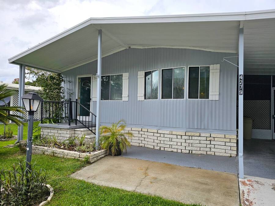 EXTREMELY MOTIVATED SELLER! Located in the lovely, age qualified community of Clover Leaf Farms is a perfect home waiting just for you. This attractive 2/2 has much to offer and is priced for a quick sale. Home features vaulted ceilings, indoor laundry, newer vapor barrier w/ lifetime warranty, new laminate flooring in bedrooms, HVAC 2017, newer electric panel and more! The attached shed is all for storage (since your laundry is indoors) and has a new window AC unit for comfort. Side screened room and small covered front porch. The sub-floors have been upgraded to plywood and new flooring was laid this year in both bedrooms. Seller has regular pest control and termite prevention. A new stove and dishwasher were purchased in 2025. If you are looking for move in ready home that needs nothing but a new owner - this home could be the one for you. To schedule a showing or for more information - call today!