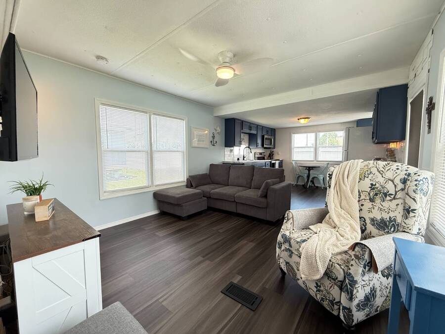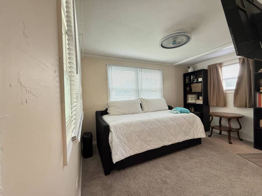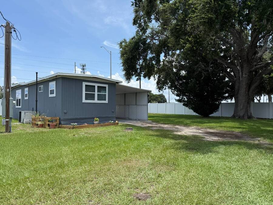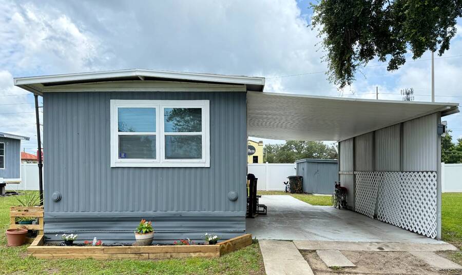 CASH PURCHASE ONLY. Includes all furnishings except for two end tables and crib. Looking for a move-in-ready home in a great location with low lot rent? This beautifully updated 2 bedroom, 1 bath home in Bedrock Mount Carmel, a welcoming 55+ community in Brandon, FL, might be just the one! Home sits on a larger lot at the end of the street and only $700/month lot rent with water and lawn maintenance included. Fully remodeled inside and out, everything's already been done for you! All windows replaced with energy-efficient thermopane sash windows which tilt in for easy cleaning. HVAC system installed in 2022. Totally updated kitchen with new cabinets with stylish hardware and plenty of storage space, beautiful new countertops, double sink with modern faucet and ceramic tile backsplash, handy roll-out island with cabinet (shown with coffe maker on it). Stainless steel stove and over-the-range microwave. The living area is an open layout with vinyl plank flooring in the main areas and carpet in both bedrooms. New lighting and ceiling fans throughout the home. Updated bathroom with a new vanity, mirror, fixtures, lighting, plus a tiled walk-in shower and tile flooring, closet and linen shelf area. Additional storage closet in the hallway. Outside perks include covered carport parking area, two storage sheds, one holds 2023 washer and dryer (included)! Private lot at the end of a quiet street, so you'll have extra green space which YOU don't have to mow because lawn care is included in the lot rent! Ammenities include a Clubhouse/Recreation Center, Shuffleboard courts, cornhole, fire pit with seating, fenced dog park and walking paths equipped with pet waste stations, billiards, darts, library, meeting area with kitchen and coffee bar, laundry facilities. Conveniently located near restaurants, shopping, and medical facilities. Listing Brokerage cannot guarantee or warrant accuracy of this information, measurements, or condition of property. Measurements are approximate. The buyer assumes all responsibility for verifying all lot rent rates and or costs associated with the Community. Applicants must pass Park approval. ***This is a leased lot community**