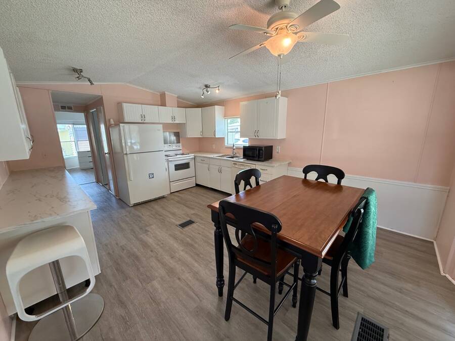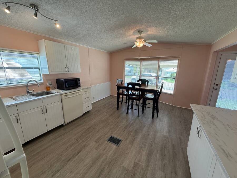 This charming 2-bedroom, 1-bathroom home is nestled in an all-age resort community, offering the perfect blend of comfort and convenience. Inside, you'll love the brand-new kitchen cabinets and open floor plan, ideal for entertaining or relaxing. A spacious laundry room leads to a cozy screened porch, the perfect spot to enjoy Florida's beautiful sunsets. With ample storage and plenty of living space, this home is a great fit for snowbirds or first-time homeowners. Don't miss your chance to experience resort-style living-call today!