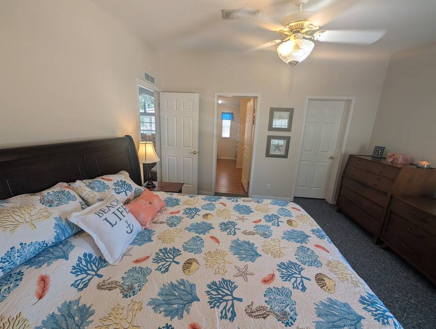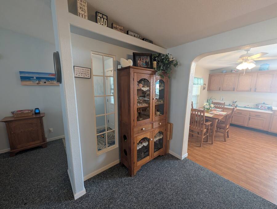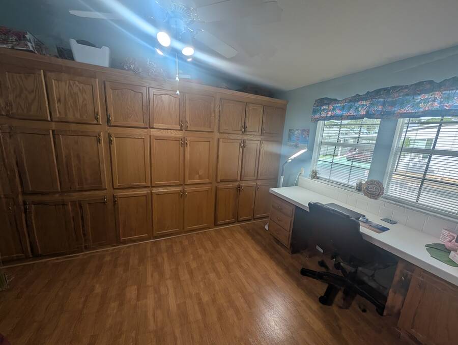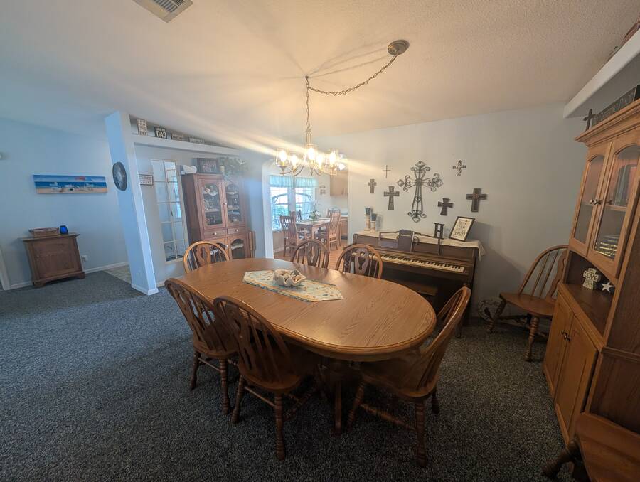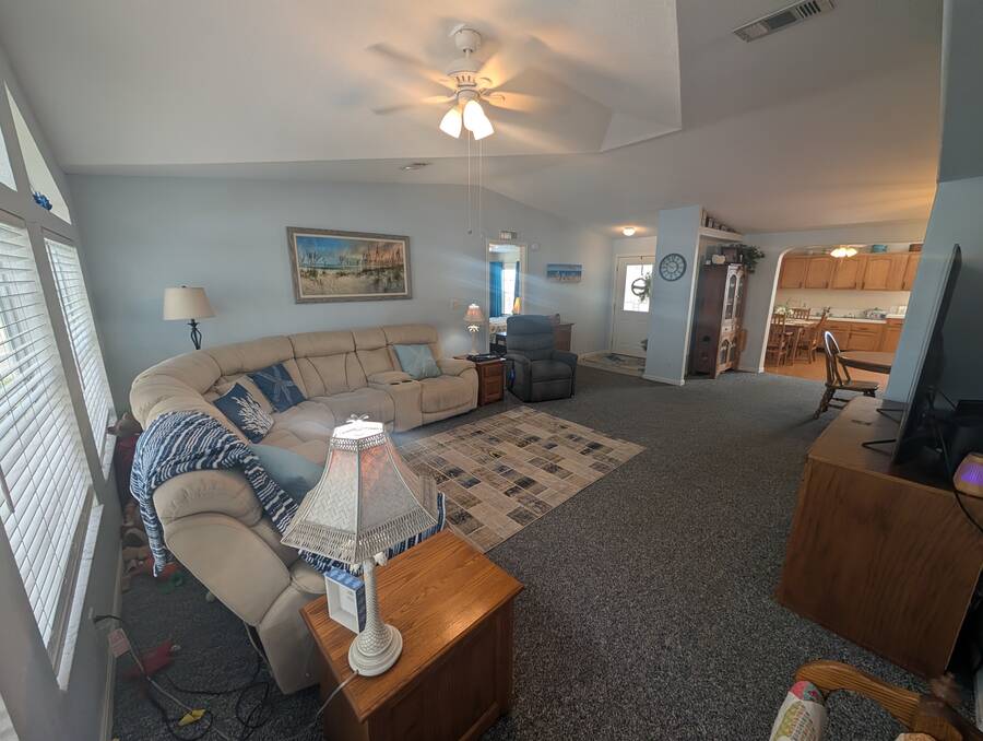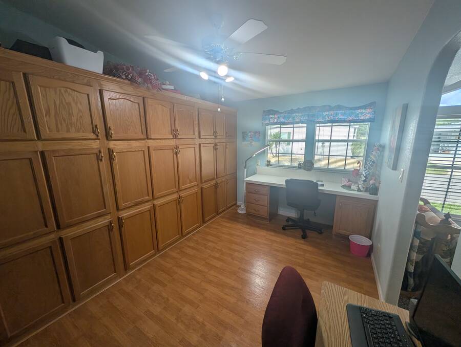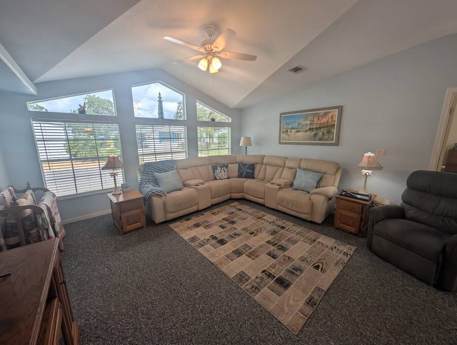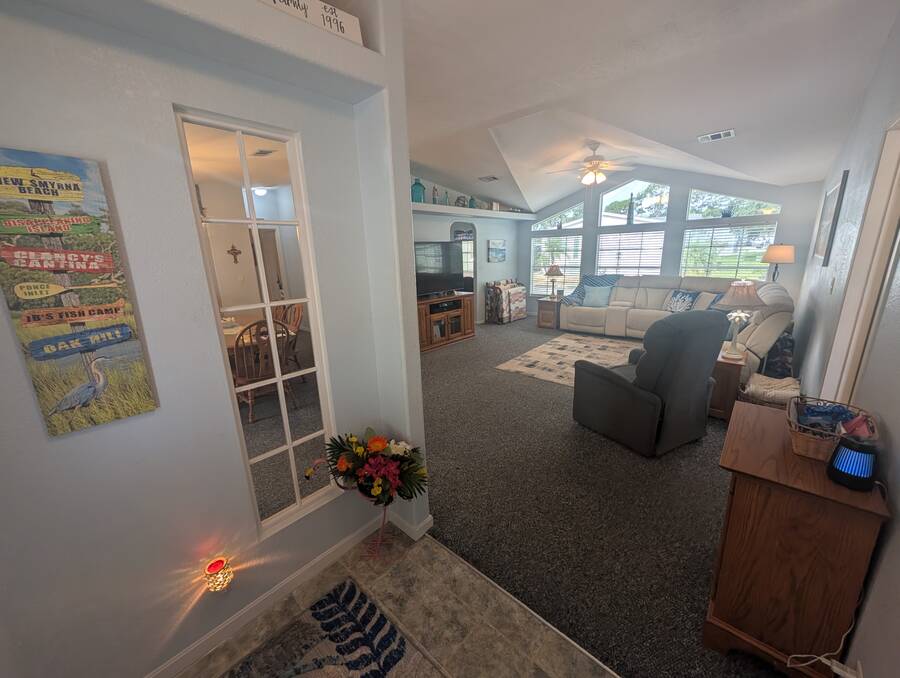 LOCATED IN BEAUTIFUL HACIENDA DEL RIO, A 55+ COMMUNITY! - **NEW LISTING** - Discover your "blissful" new home! This immaculate and exceptionally well-maintained 1999 Skyline triple manufactured home offers over 1,908 square feet of spacious, coastal-inspired living. With 3 bedrooms and 2 bathrooms, there's ample room for family gatherings and entertaining friends. Step inside to a large living room, perfect for movie nights or lively social events. The separate dining room is ideal for cozy family suppers or competitive board game evenings. The heart of the home, a large, expansive kitchen, is a chef's dream, featuring an abundance of cabinet space, newer appliances, a central island, a convenient pantry, and a built-in desk for your culinary library. Enjoy the efficiency and precision of natural gas for both cooking and hot water. The primary bedroom is a true retreat, offering generous space, a large en-suite bathroom, and an impressive walk-in closet designed to accommodate all your Florida summer wardrobe essentials. A comfortable guest bedroom ensures visitors have plenty of room, with quick access to the guest bathroom. The versatile third bedroom, currently a dedicated sewing/office space, boasts custom built-in cabinetry, making it perfect for hobbies or working from home. Practicality meets convenience in the spacious laundry room, complete with additional storage and ample counter space. Extend your living area into the 12x16' all-season room, featuring its own dedicated A/C unit and direct backyard access. Outside, a large carport and double driveway offer parking for up to 8 vehicles, complemented by a handy 7x11' storage shed. Enjoy exceptional peace of mind with recent updates including a 2019 A/C, 2017 roof, and brand-new 2025 water heater. A recent 4-point inspection report further assures a confident purchase of this incredible homestead. This sprawling, must-see home is ready for its new forever family! This home is in immaculate condition and allows you to start enjoying the true Florida lifestyle here at Hacienda Del Rio! Meet new neighbors and enjoy our active 55+ resort style living. This home is a MUST see, schedule an appointment to tour this beautiful home today before it's gone!