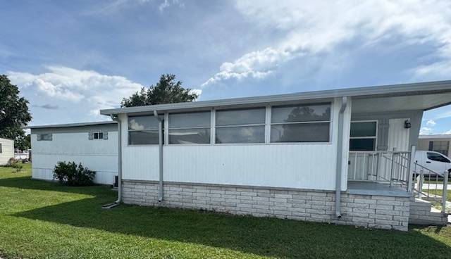 Fountainview Estates is a fisherman's paradise with a boat ramp on Lake Gibson. Bass fishing and water skiing are popular activities. Watch beautiful sunsets over Lake Gibson from the comfort of the clubhouse. CASH SALE ONLY. LOT RENT $639/monthly. This 2-Bedroom, 1-Bath home includes a large 10x20 Florida room and screened-in patio. Furniture is included with the exception of a few items. Dishes, towels, vacuum cleaner, and tools not included. All flooring has been recently replaced with a beautiful hardwood floor in the hall and 2nd bedroom, and carpet in the living room, primary bedroom, screened patio, and Florida room. It just passed a complete inspection in 2024. The washer/dryer is located in the large utility shed along with another toilet and sink. Great amenities with an affordable rent: Heated Pool, Shuffleboard, Clubhouse with kitchen, pool table, fireplace, library, puzzle box, and Bingo Board. No utilities are included in the rent. Pet-friendly 55+ community allows two pets at 25lb max. The park is approx. one hour from beautiful beaches to the West, and Legoland and Disney World to the East. Fountainview Estates is surrounded by an array of accessible shopping, restaurants, and medical services...most are accessible by golf cart! Good news given today's gas prices. PARK APPROVAL IS REQUIRED with proof of income at least 3 times the monthly rent. MUST BE AT LEAST 55 years old to apply. Application fee is $50 cash per person (Canadian $85/ea.) Primary resident must be at least 55 y/o and 2nd must be at least 40 y/o. Must HAVE a credit history with no collections. Background checks. THIS IS A MOBILE HOME IN A PARK ON LEASED LAND, NOT REAL ESTATE. YOU MUST CONTACT THE MOBILE HOME LISTING AGENT FOR SHOWINGS. All listing information is deemed reliable but not guaranteed and should be independently verified through personal inspection by appropriate professionals. Our company does not and cannot guarantee or warrant the accuracy of this information or the condition of this property. Measurements are approximate. The buyer assumes full responsibility for obtaining all current rates of lot rent, fees, and pass-on costs. Additionally, the buyer is responsible for obtaining all rules, regulations, pet policies, etc., associated with the community, park, or home from the community/park manager. Our company is not responsible for quoting said fees or policies. Sales price doesn't include tax, dealer, or admin fee.
