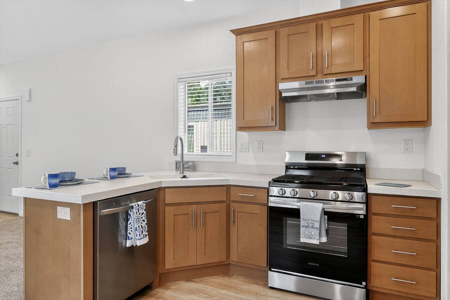 This home features 3bd/2ba, each bedroom boasts a walk in closet. Your new kitchen offers stainless steel appliances, gas range, dishwasher, garbage disposal and ample cabinet space PLUS solid surface countertops. This beautiful home offers an abundance of natural light, 2' faux wood blinds on all windows. Large Primary bath shower and full tub/shower combo in hall bath. EcoBee, smart home thermostat, will help save money on utilities. Great South Ukiah location close to food and shopping. Convenient for commuters who work South of town. Schools and gas stations nearby make it a convenient place to call home. Deep Valley MHP boasts an inground swimming pool in the summertime, children's playground year-round and onsite mail delivery as well as storage for recreational or business vehicles for an additional fee. Mature trees and paved streets are abundant in the community, making it not only beautiful but easily accessible during any weather condition. This home offers assigned parking to insure ease of use.