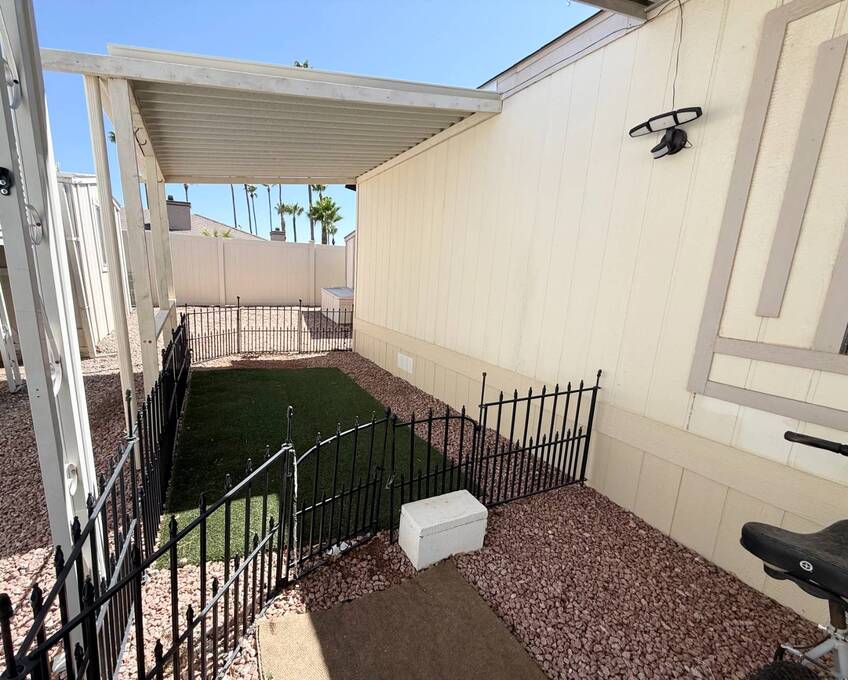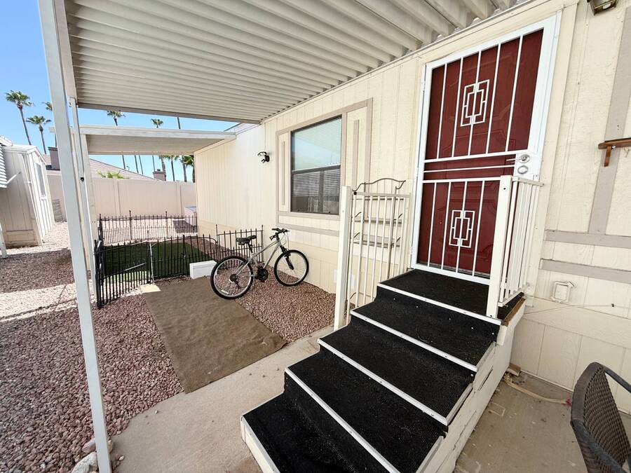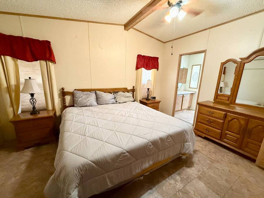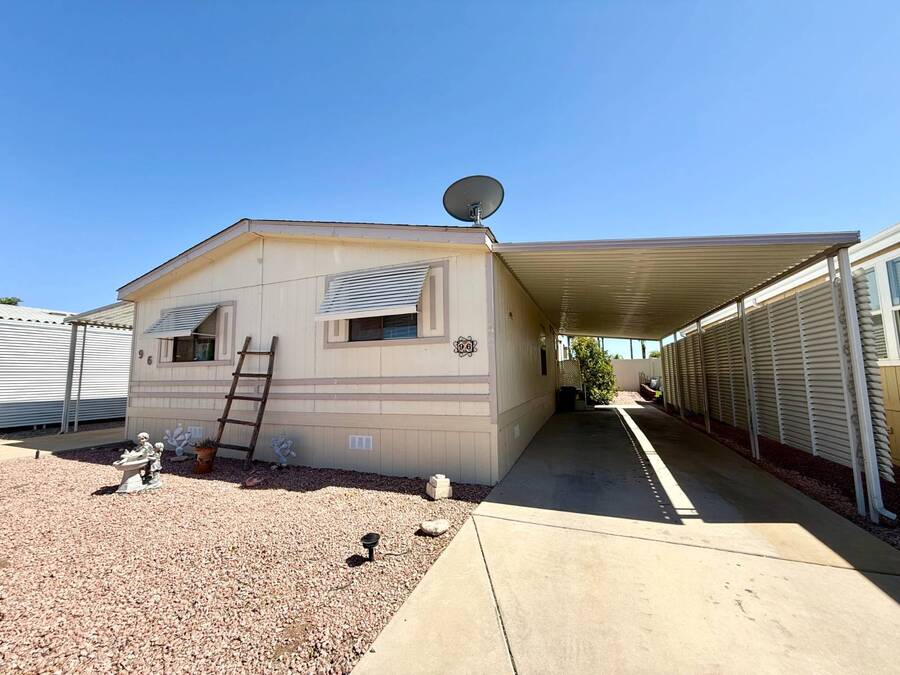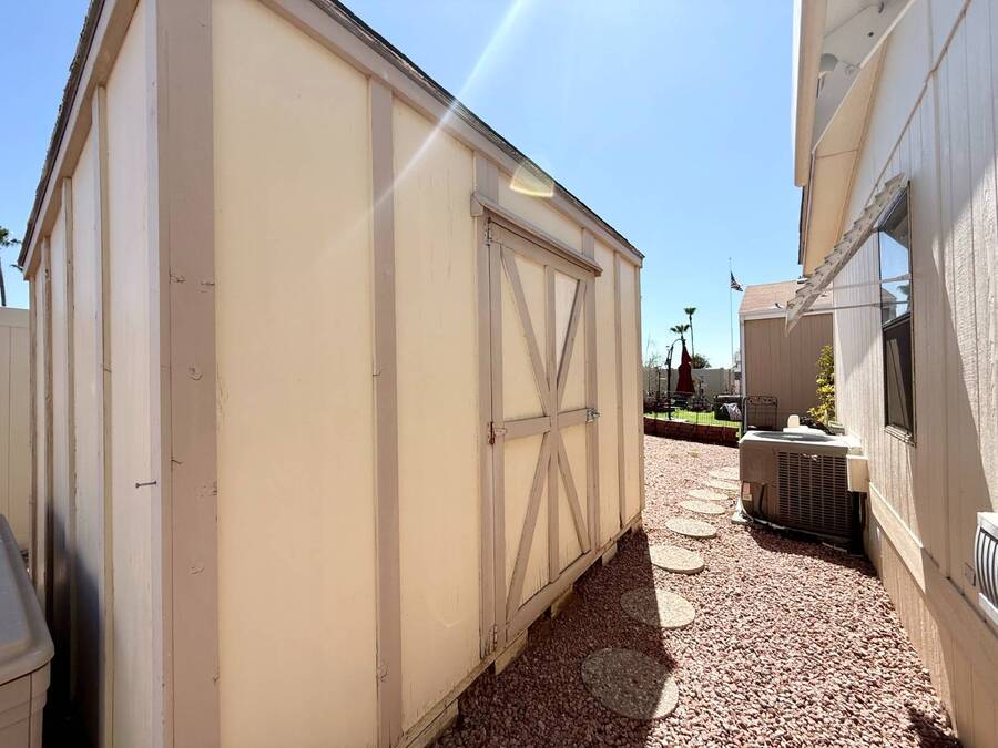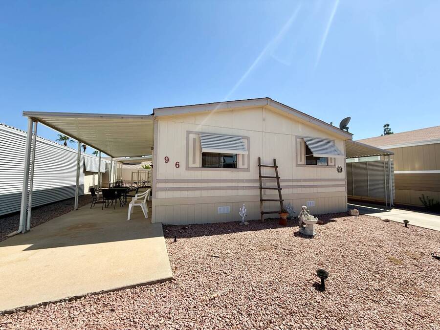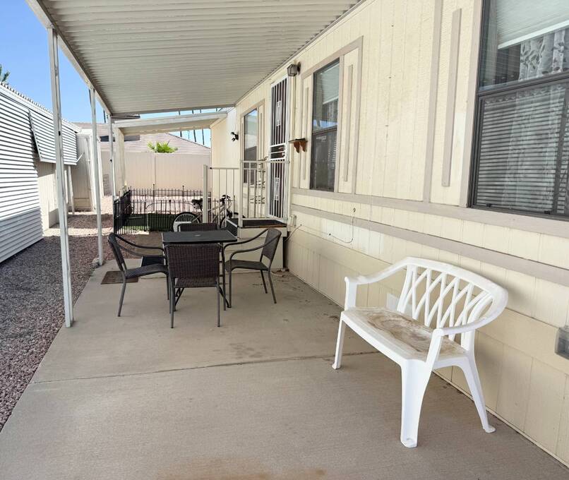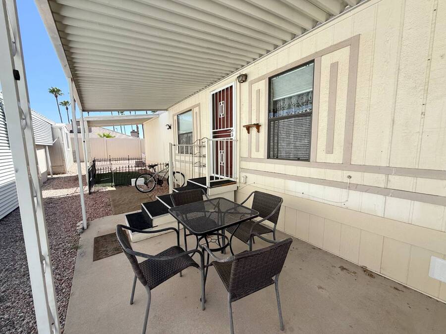 Step inside this charming 2-bedroom, 2-bathroom 1989 Palm Harbor home, measuring 26x48 and nestled in a desirable 55+ community in Tucson, AZ, just a short stroll from the community clubhouse. Situated on a larger lot in the neighborhood, this move-in-ready home offers great outdoor space with a covered patio-complete with patio furniture-a fenced, turfed dog area, and a covered carport. A bonus covered patio area provides flexible use and could easily serve as additional parking. Fully furnished for your convenience, this home features a spacious living room with a large flat-screen TV and comfortable living room furniture, seamlessly connected to the dining area with a table and chairs included. The kitchen is well-equipped with all major appliances and includes a handy rolling island for added prep space. Ceiling fans are installed throughout for year-round comfort. The generously sized guest bedroom includes a bedroom set and TV, located just steps from the guest bathroom with a tub/shower combo. At the rear of the home, the spacious primary suite offers privacy and comfort with a large bedroom, en suite bathroom, and an updated walk-in shower. Additional perks include a large storage shed and brand-new skirting installed around the entire home just months ago. Home comes with washer and Dryer also. Don't miss your chance to own this beautifully maintained, fully furnished home-schedule your private showing today! Please note: Lot rents are subject to change depending on community rates at the time of closing. Show