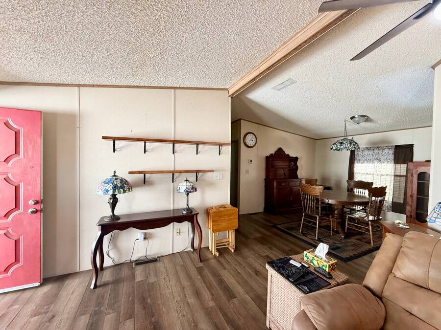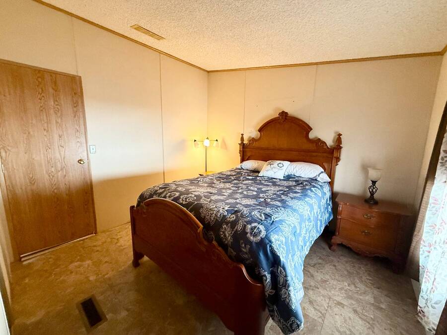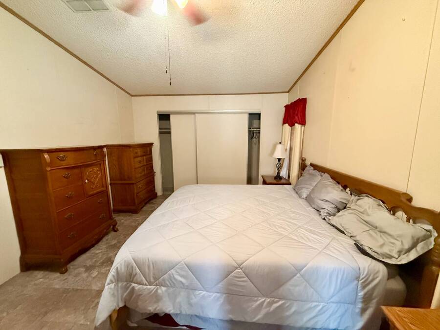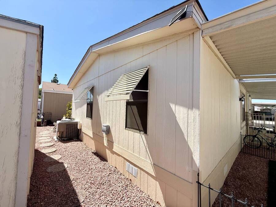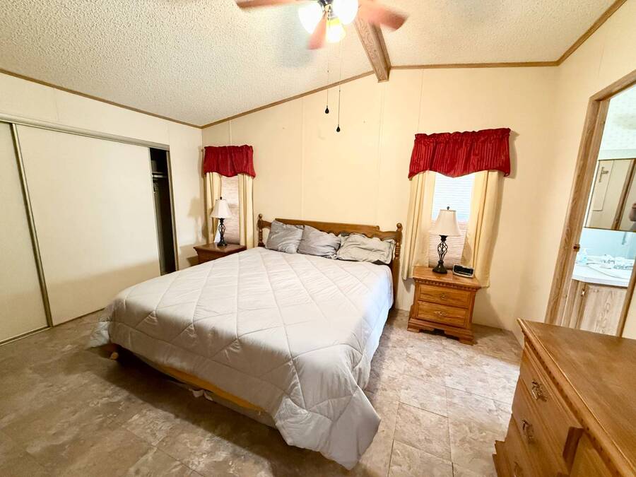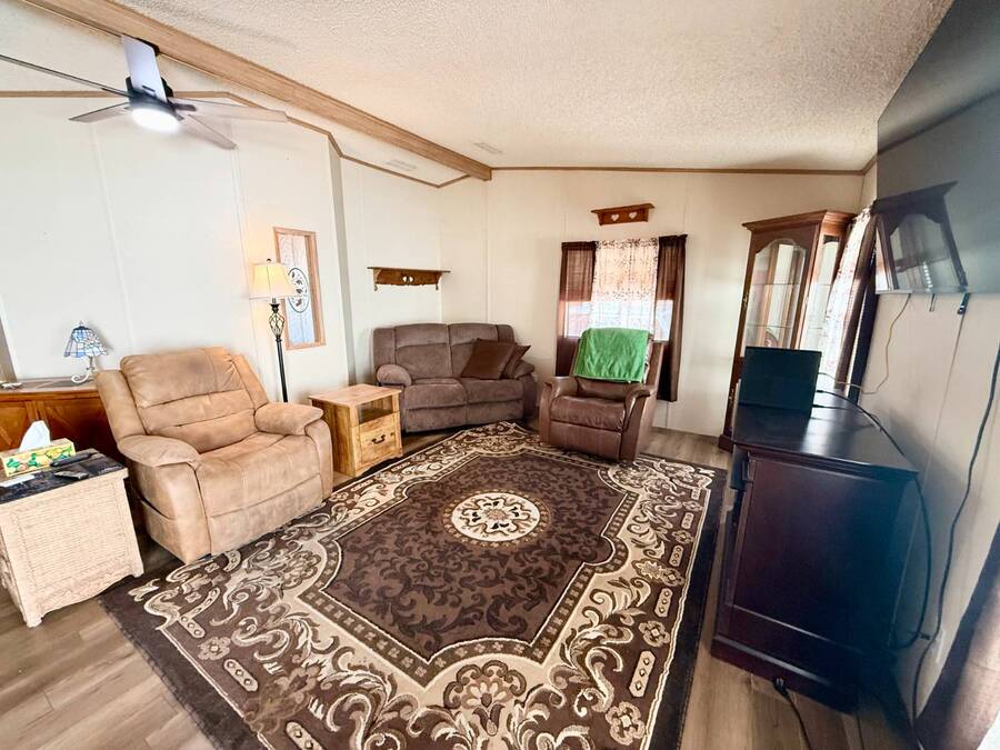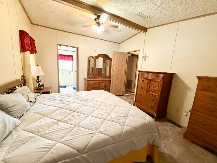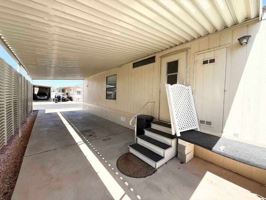 Step inside this charming 2-bedroom, 2-bathroom 1989 Palm Harbor home, measuring 26x48 and nestled in a desirable 55+ community in Tucson, AZ, just a short stroll from the community clubhouse. Situated on a larger lot in the neighborhood, this move-in-ready home offers great outdoor space with a covered patio-complete with patio furniture-a fenced, turfed dog area, and a covered carport. A bonus covered patio area provides flexible use and could easily serve as additional parking. Fully furnished for your convenience, this home features a spacious living room with a large flat-screen TV and comfortable living room furniture, seamlessly connected to the dining area with a table and chairs included. The kitchen is well-equipped with all major appliances and includes a handy rolling island for added prep space. Ceiling fans are installed throughout for year-round comfort. The generously sized guest bedroom includes a bedroom set and TV, located just steps from the guest bathroom with a tub/shower combo. At the rear of the home, the spacious primary suite offers privacy and comfort with a large bedroom, en suite bathroom, and an updated walk-in shower. Additional perks include a large storage shed and brand-new skirting installed around the entire home just months ago. Home comes with washer and Dryer also. Don't miss your chance to own this beautifully maintained, fully furnished home-schedule your private showing today! Please note: Lot rents are subject to change depending on community rates at the time of closing. Show