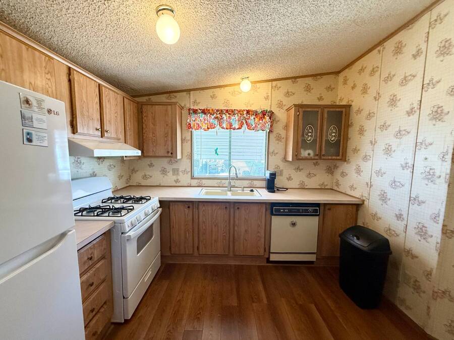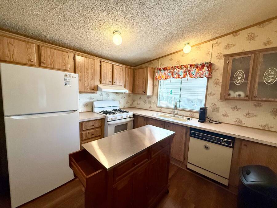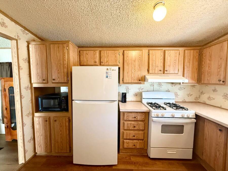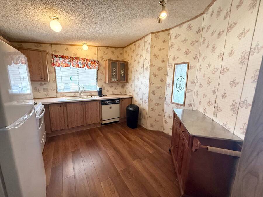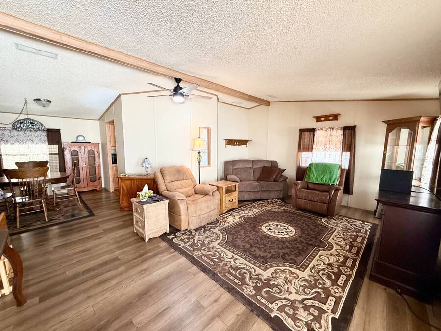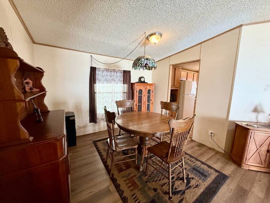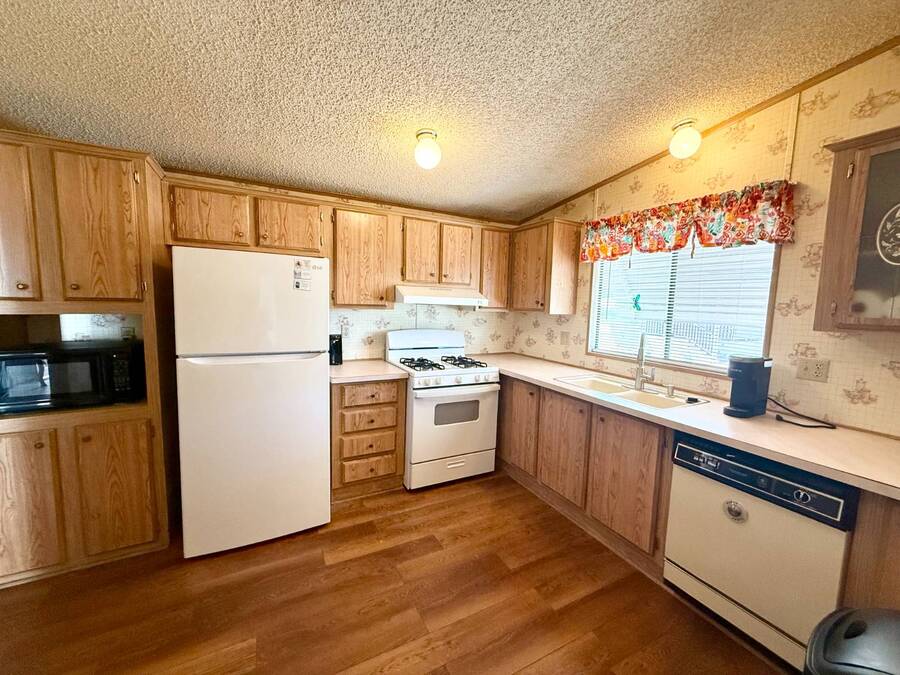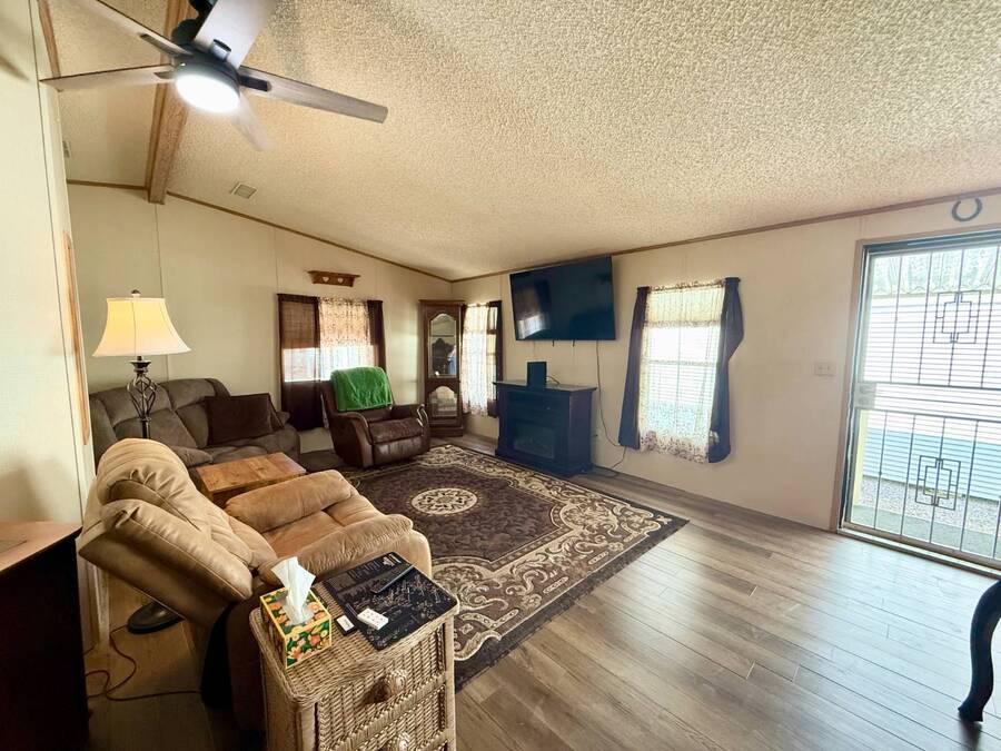Step inside this charming 2-bedroom, 2-bathroom 1989 Palm Harbor home, measuring 26x48 and nestled in a desirable 55+ community in Tucson, AZ, just a short stroll from the community clubhouse. Situated on a larger lot in the neighborhood, this move-in-ready home offers great outdoor space with a covered patio-complete with patio furniture-a fenced, turfed dog area, and a covered carport. A bonus covered patio area provides flexible use and could easily serve as additional parking. Fully furnished for your convenience, this home features a spacious living room with a large flat-screen TV and comfortable living room furniture, seamlessly connected to the dining area with a table and chairs included. The kitchen is well-equipped with all major appliances and includes a handy rolling island for added prep space. Ceiling fans are installed throughout for year-round comfort. The generously sized guest bedroom includes a bedroom set and TV, located just steps from the guest bathroom with a tub/shower combo. At the rear of the home, the spacious primary suite offers privacy and comfort with a large bedroom, en suite bathroom, and an updated walk-in shower. Additional perks include a large storage shed and brand-new skirting installed around the entire home just months ago. Home comes with washer and Dryer also. Don't miss your chance to own this beautifully maintained, fully furnished home-schedule your private showing today! Please note: Lot rents are subject to change depending on community rates at the time of closing. Show