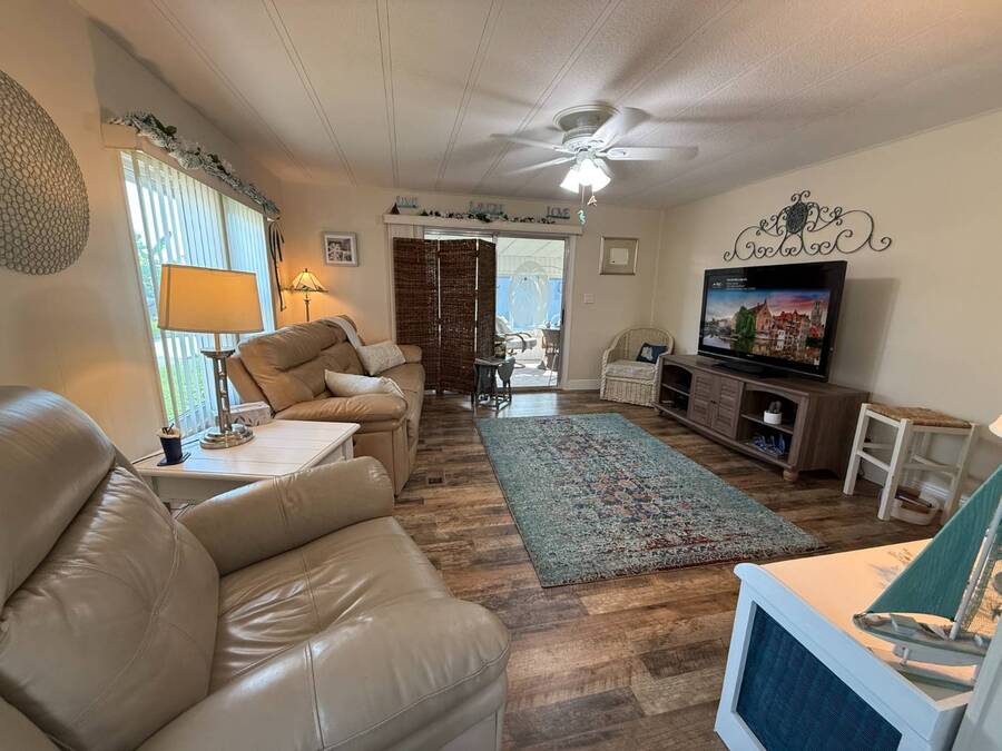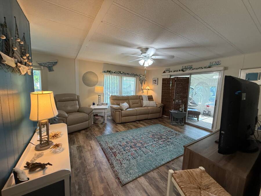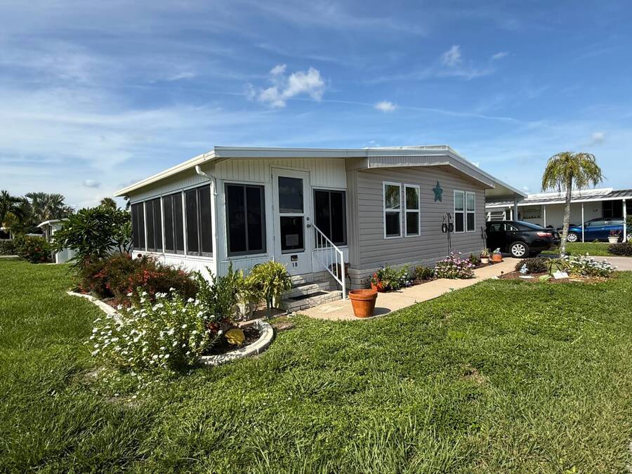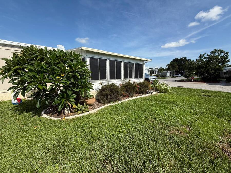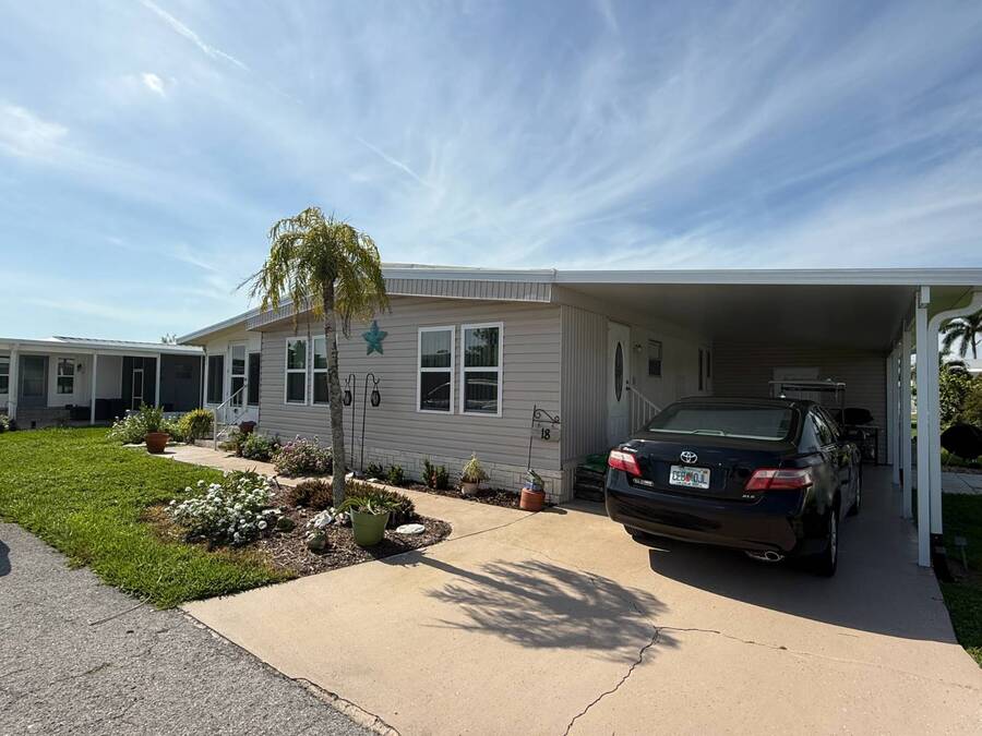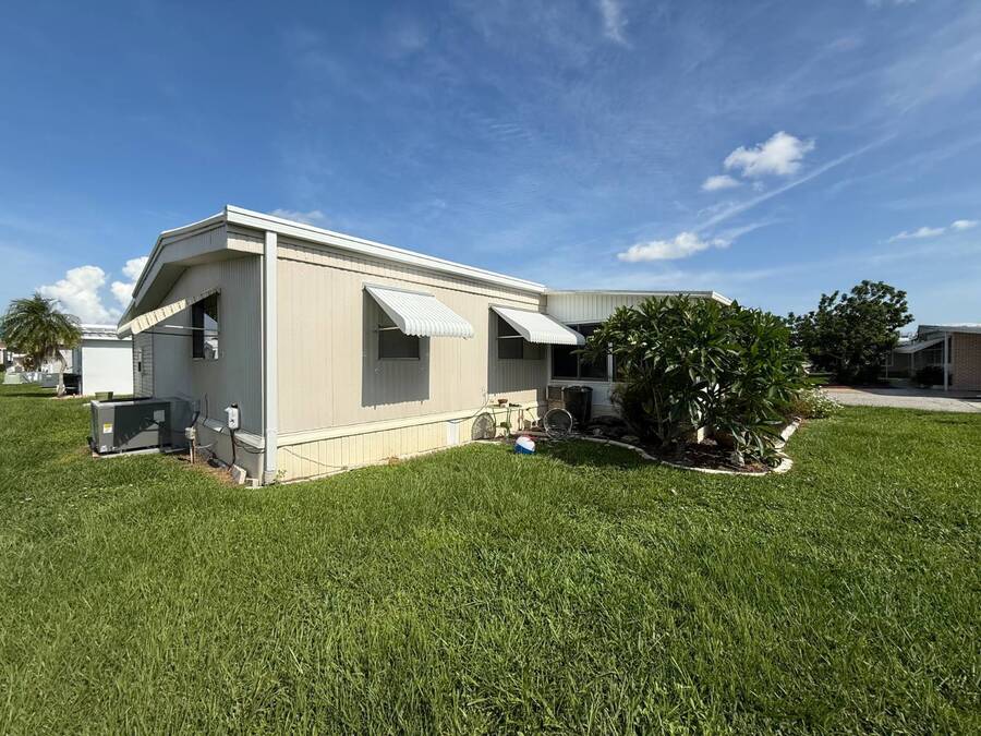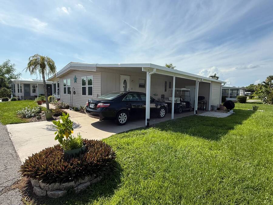 Bright & Cheerful 2 Bed / 2 Bath Home in the Highly Sought-After Jamaica Bay Village! Welcome to your piece of paradise in Jamaica Bay Village, one of the area's most beautiful and active 55+ communities! This well-maintained 2 bedroom, 2 bath manufactured home offers comfortable living with a bright, open layout and charming details throughout. As you step inside, you'll immediately notice the sun-drenched living room featuring windows across the entire front of the home, creating a warm and inviting space to relax or entertain. Just off the living room, enjoy your morning coffee or evening breeze in the air-conditioned lanai - perfect for year-round enjoyment. The kitchen is both functional and welcoming, complete with nice appliances and a brand-new refrigerator. Down the hall, the guest bedroom fits a double bed and includes a generous closet, while the guest bathroom provides ample space for visitors to feel at home. Retreat to the spacious master suite, featuring a large bedroom area and a private en suite bathroom for your comfort and privacy. Additional features include a beautiful carport that leads directly into a rebuilt laundry room/shed combo - offering extra storage and convenience. Jamaica Bay Village is an exceptionally active community with tons of planned activities, social events, and resort-style amenities. Whether you're looking for the ideal snowbird retreat or a full-time Florida lifestyle, this home and community offer everything you need. Don't miss out on this affordable gem in one of the best communities around