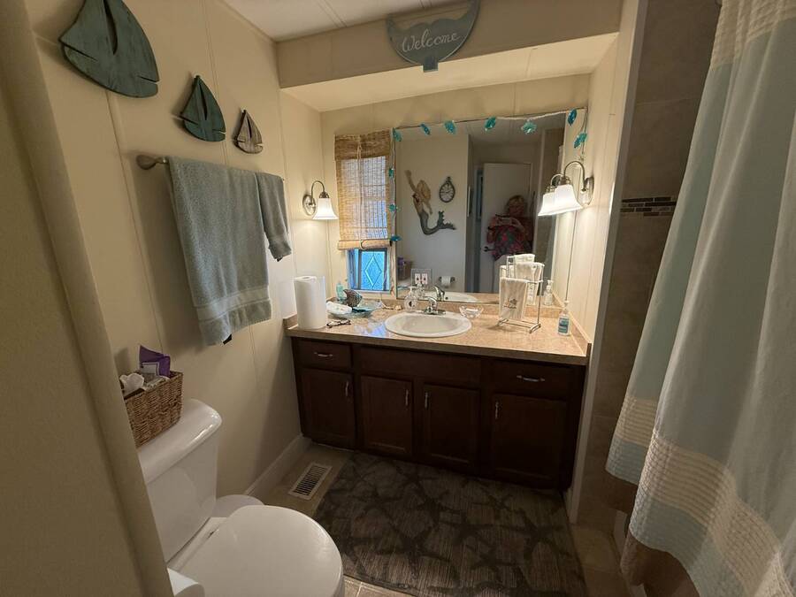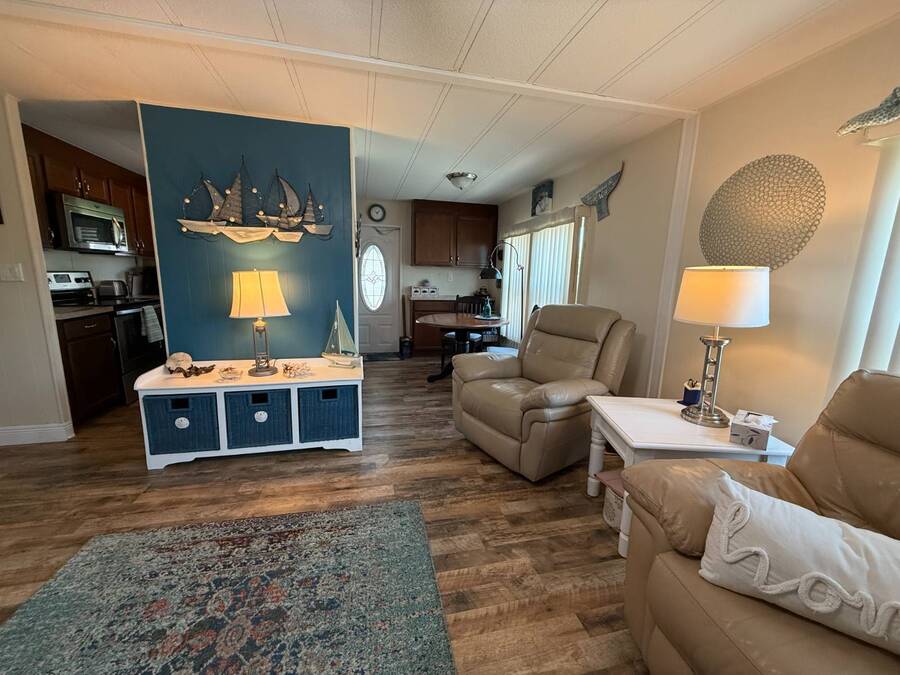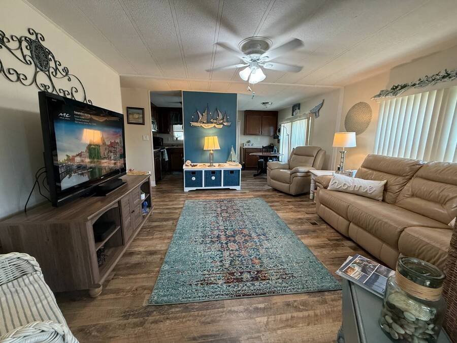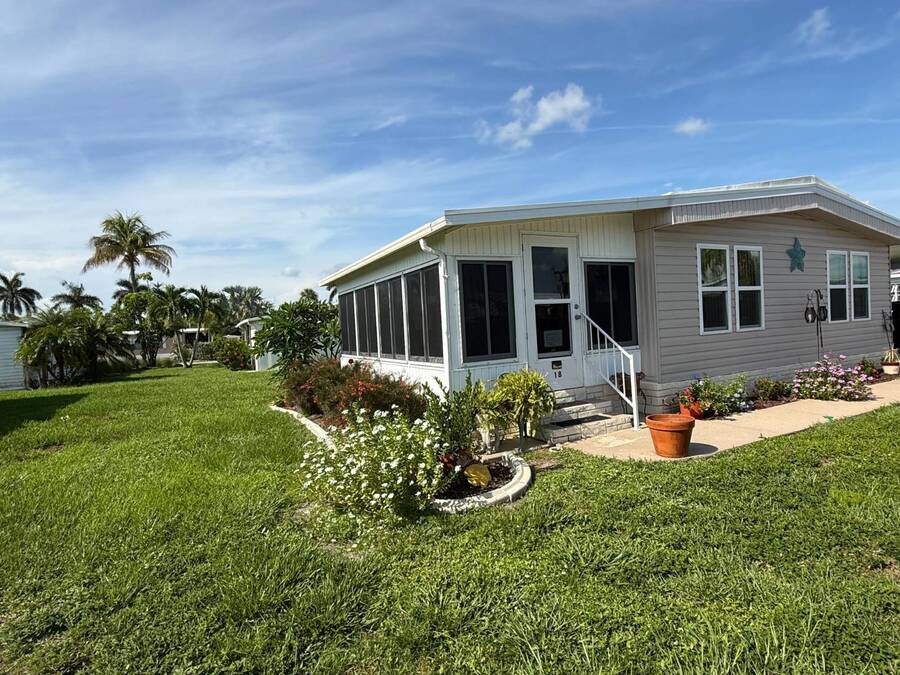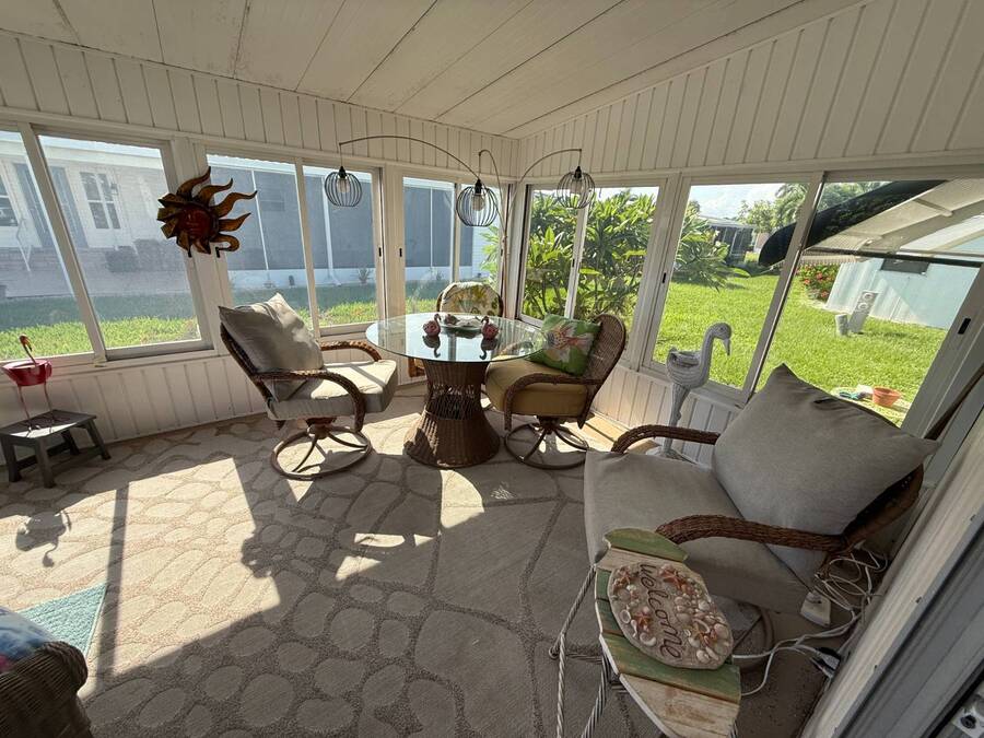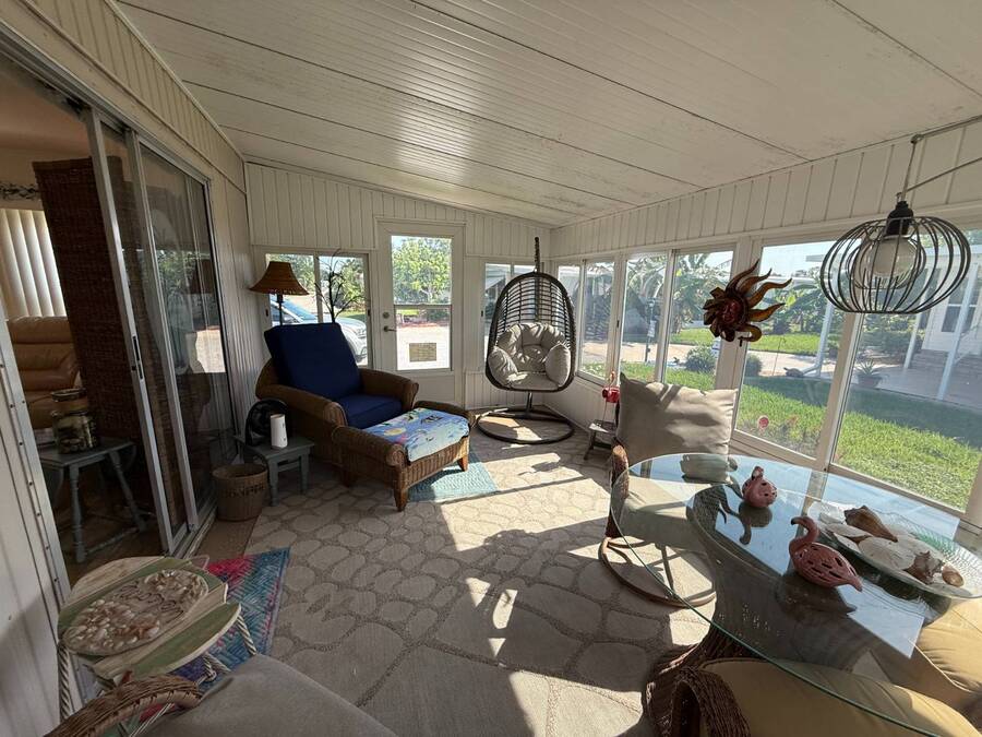 Bright & Cheerful 2 Bed / 2 Bath Home in the Highly Sought-After Jamaica Bay Village! Welcome to your piece of paradise in Jamaica Bay Village, one of the area's most beautiful and active 55+ communities! This well-maintained 2 bedroom, 2 bath manufactured home offers comfortable living with a bright, open layout and charming details throughout. As you step inside, you'll immediately notice the sun-drenched living room featuring windows across the entire front of the home, creating a warm and inviting space to relax or entertain. Just off the living room, enjoy your morning coffee or evening breeze in the air-conditioned lanai - perfect for year-round enjoyment. The kitchen is both functional and welcoming, complete with nice appliances and a brand-new refrigerator. Down the hall, the guest bedroom fits a double bed and includes a generous closet, while the guest bathroom provides ample space for visitors to feel at home. Retreat to the spacious master suite, featuring a large bedroom area and a private en suite bathroom for your comfort and privacy. Additional features include a beautiful carport that leads directly into a rebuilt laundry room/shed combo - offering extra storage and convenience. Jamaica Bay Village is an exceptionally active community with tons of planned activities, social events, and resort-style amenities. Whether you're looking for the ideal snowbird retreat or a full-time Florida lifestyle, this home and community offer everything you need. Don't miss out on this affordable gem in one of the best communities around