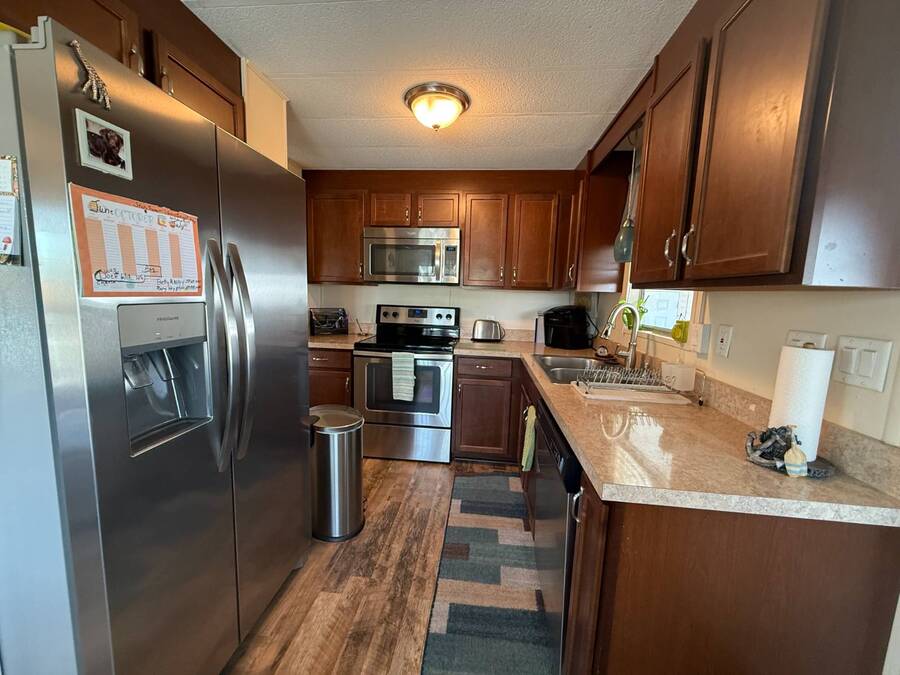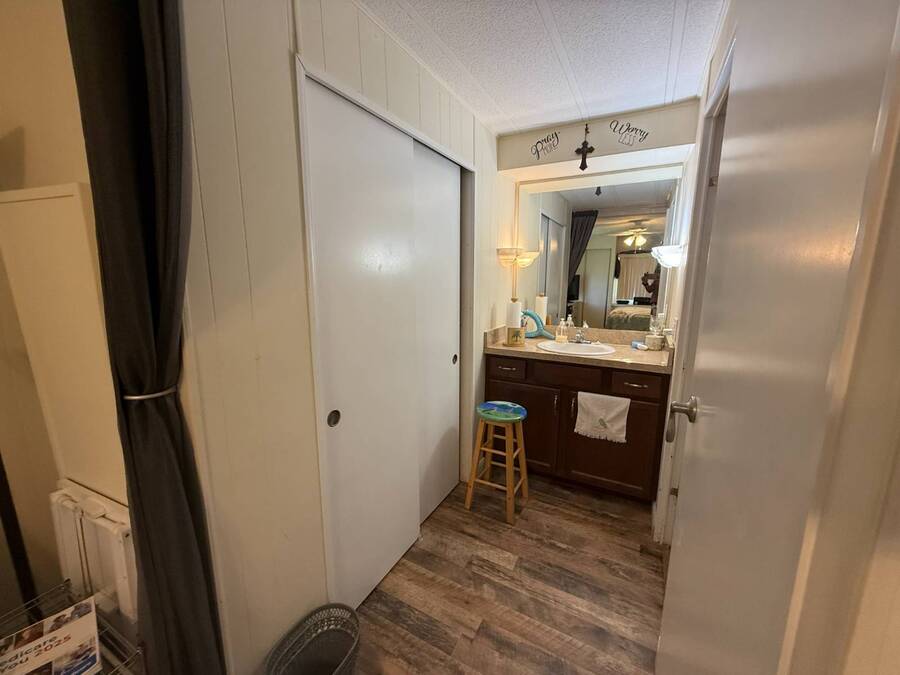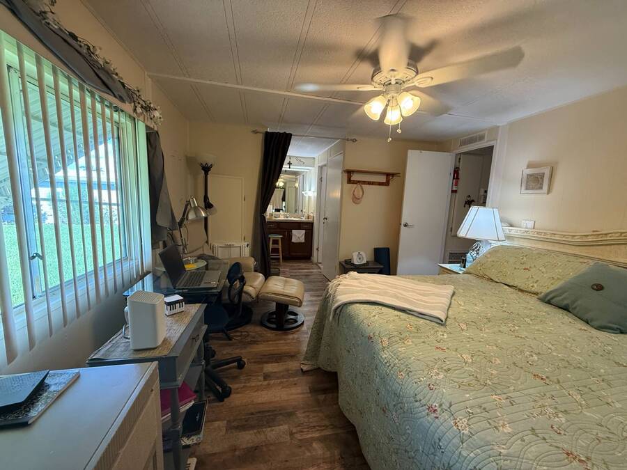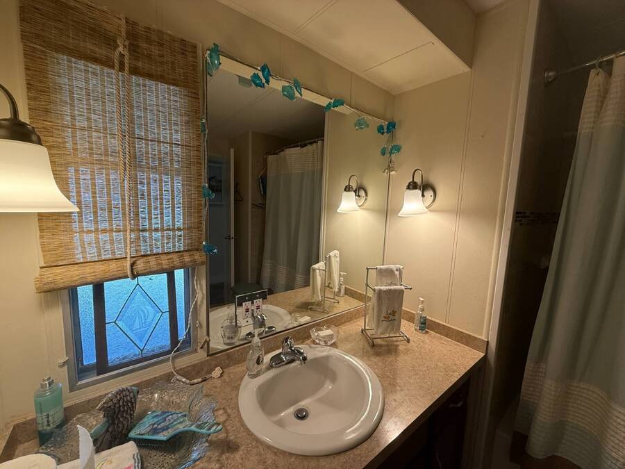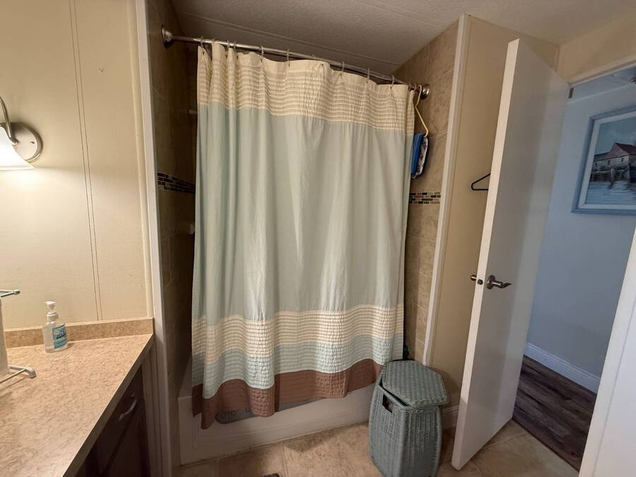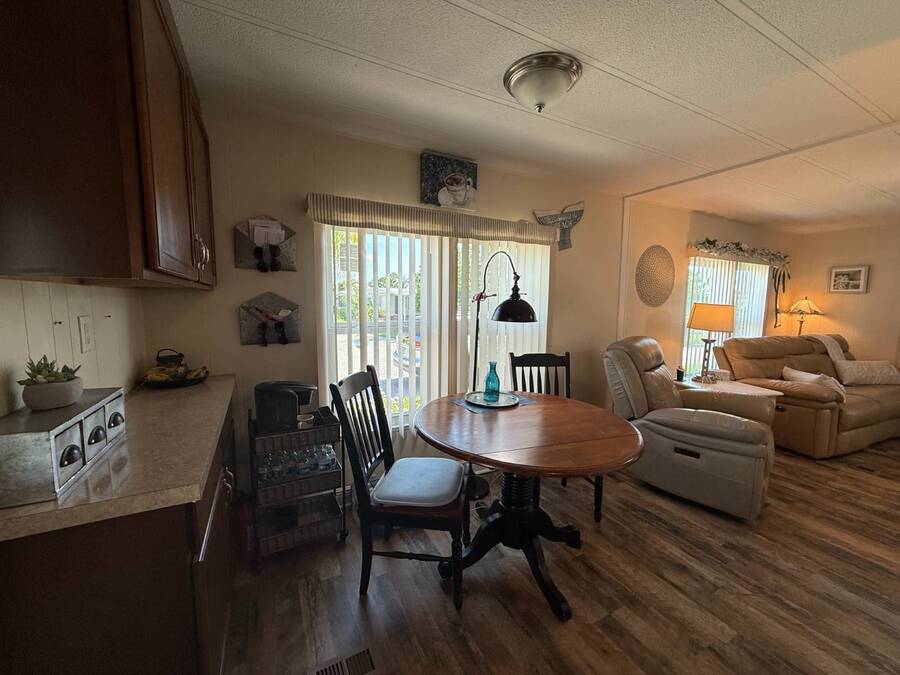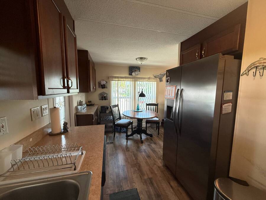 Bright & Cheerful 2 Bed / 2 Bath Home in the Highly Sought-After Jamaica Bay Village! Welcome to your piece of paradise in Jamaica Bay Village, one of the area's most beautiful and active 55+ communities! This well-maintained 2 bedroom, 2 bath manufactured home offers comfortable living with a bright, open layout and charming details throughout. As you step inside, you'll immediately notice the sun-drenched living room featuring windows across the entire front of the home, creating a warm and inviting space to relax or entertain. Just off the living room, enjoy your morning coffee or evening breeze in the air-conditioned lanai - perfect for year-round enjoyment. The kitchen is both functional and welcoming, complete with nice appliances and a brand-new refrigerator. Down the hall, the guest bedroom fits a double bed and includes a generous closet, while the guest bathroom provides ample space for visitors to feel at home. Retreat to the spacious master suite, featuring a large bedroom area and a private en suite bathroom for your comfort and privacy. Additional features include a beautiful carport that leads directly into a rebuilt laundry room/shed combo - offering extra storage and convenience. Jamaica Bay Village is an exceptionally active community with tons of planned activities, social events, and resort-style amenities. Whether you're looking for the ideal snowbird retreat or a full-time Florida lifestyle, this home and community offer everything you need. Don't miss out on this affordable gem in one of the best communities around