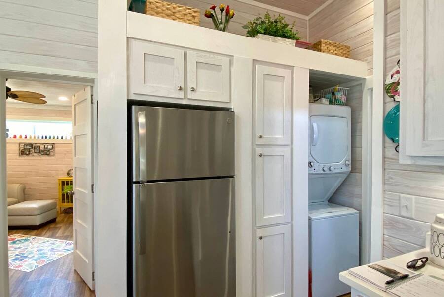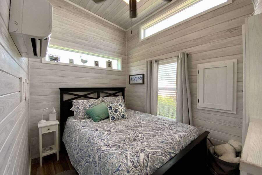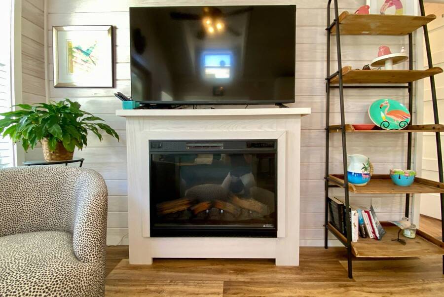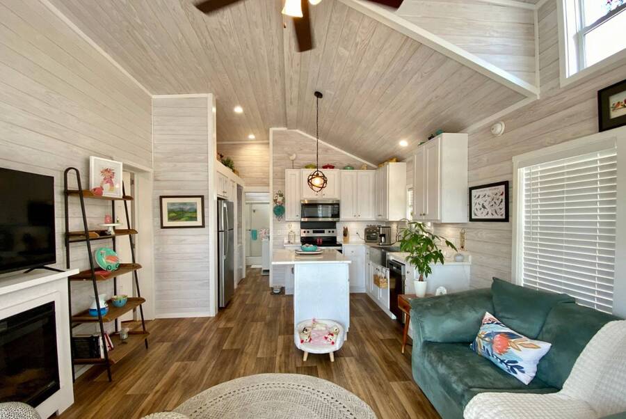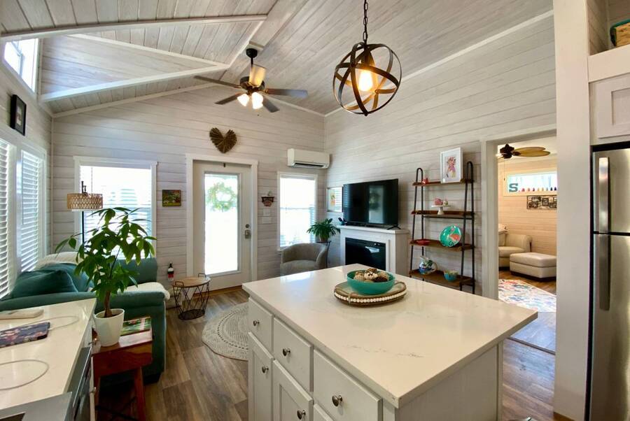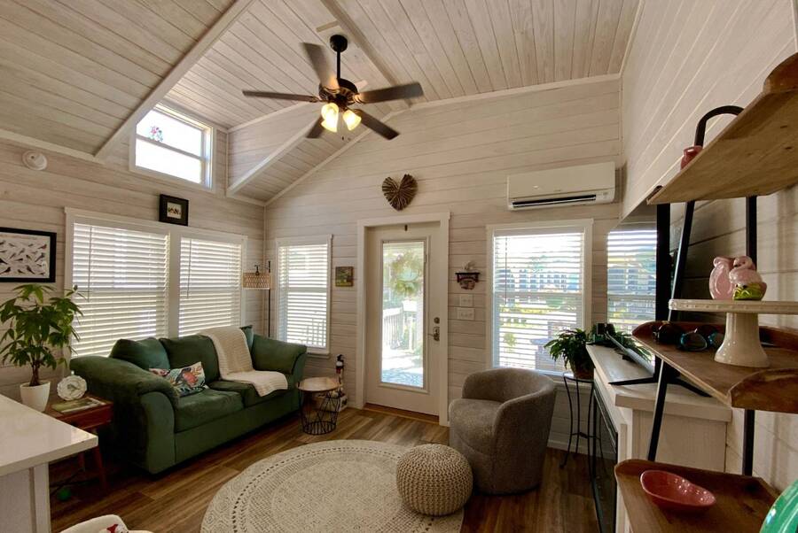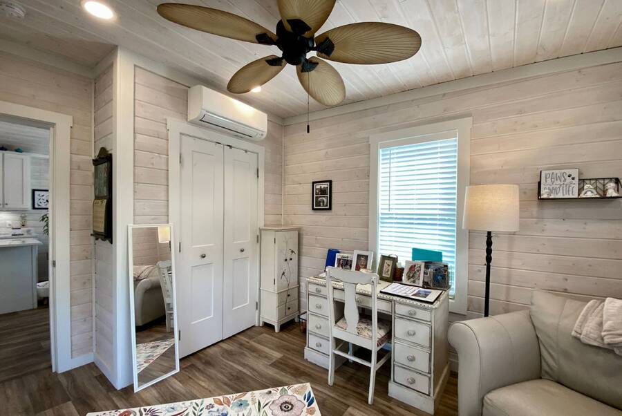 Welcome to this charming 2-bedroom, 1-bath tiny home that perfectly blends comfort, functionality, and scenic surroundings. Inside, you'll find a bright and open floor plan designed to feel spacious and inviting. The generous kitchen offers ample cabinet storage and workspace, making it ideal for everyday living or entertaining. The living room is warm and welcoming, highlighted by a cozy fireplace that creates the perfect place to relax. Step outside and enjoy the peaceful setting this home offers. The covered front deck provides a great space to unwind, while the screened-in back porch overlooks the beautiful preserve, offering serene views and a quiet place to enjoy your morning coffee or evening breeze. With thoughtful design, inviting living spaces, and tranquil outdoor areas, this home offers the perfect combination of comfort, charm, and nature-inspired living
