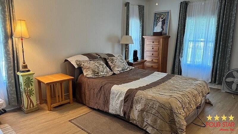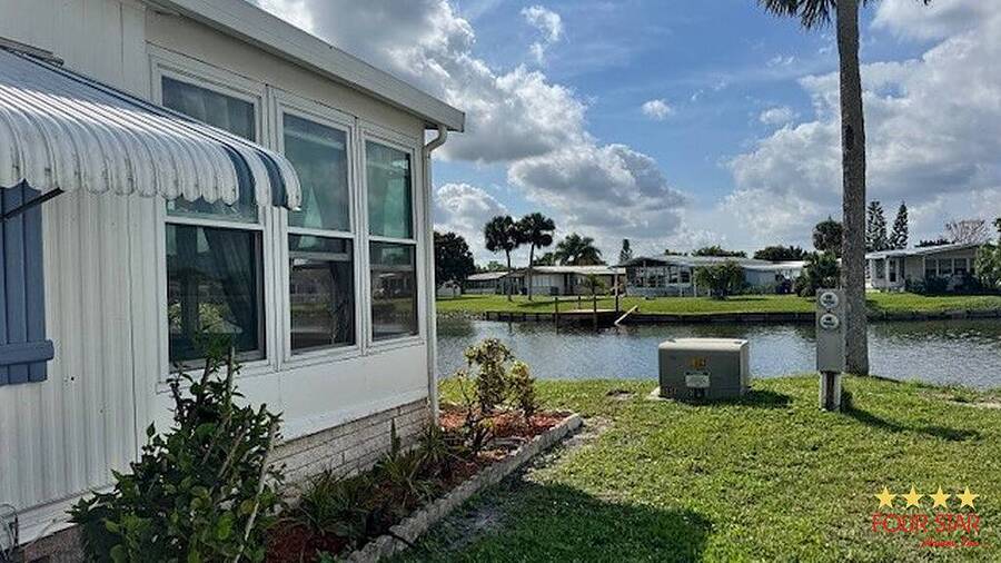 Wake up to peaceful mornings and end your days with stunning Florida sunsets from this beautifully maintained waterfront manufactured home. This gem offers new flooring throughout, a spacious under-air lanai with all-new windows, and a recently resealed rubber roof for added peace of mind. Youll love the new vapor barrier (2023), the 2016 AC system, and the extra-large shed perfect for storage or tinkering on hobbies. Whether youre sipping coffee while watching the water or heading out for a day of fishing, boating, or beachcombing, this home is your launchpad for the laid-back Florida lifestyle. Located in a vibrant community loaded with amenities, youll feel like youre on vacation every day. Ready to embrace the good life? This one checks all the boxes.