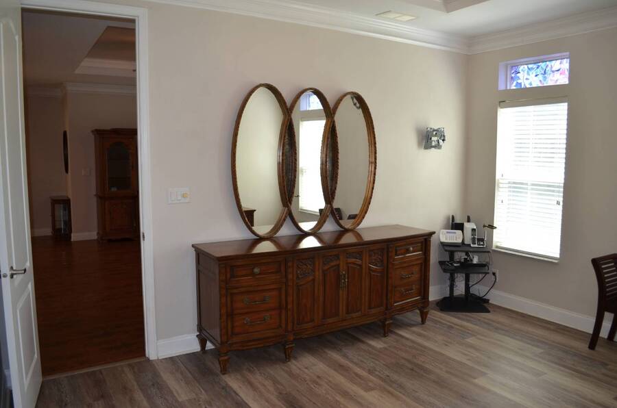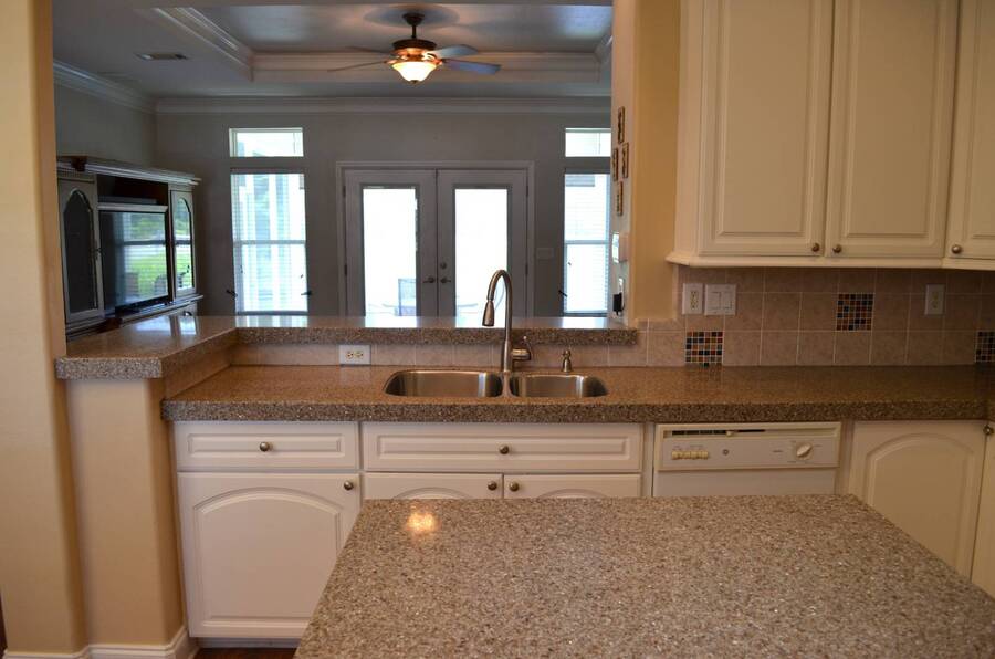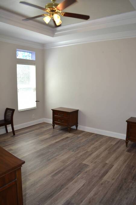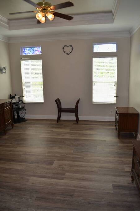 Discover the perfect blend of luxury, functionality, and Florida charm in this beautifully upgraded 3-bedroom, 2-bath Palm Harbor home-originally designed as the model, and it shows! Situated on a manicured lot with fresh landscaping and mature palms, this home offers impressive curb appeal along with thoughtful, high-end finishes throughout. Step inside and experience a bright, wide-open floor plan with soaring 10-foot ceilings, elegant crown molding, rounded corners, and recessed lighting throughout. The spacious living room features custom built-in shelving and flows effortlessly into the stunning chef's kitchen, complete with a center island, tile backsplash, abundant counter space, and extensive cabinetry-perfect for entertaining or everyday living. Designed with privacy in mind, the split-bedroom layout includes an expansive primary suite with tray ceilings, peaceful water views, and a en-suite bath featuring a double vanity, step-in shower, and oversized walk-in closet. The second bedroom, with elegant French door access, offers flexibility for guests or a home office. A well-appointed third bedroom and full guest bath complete the layout! The laundry room is located just off the kitchen and includes a utility sink, washer and dryer, and convenient access to the attached two-car garage. Additional features include 9-foot interior doors, ADT security system and both a screened front porch and screened rear porch-perfect for enjoying Florida's year-round sunshine. Living in Coquina Crossing means enjoying access to a gated community filled with exceptional amenities including a clubhouse with ballroom, fitness center, indoor and outdoor heated pools, tennis and pickleball courts, walking trails, lakes for fishing, RV/boat storage, and a full calendar of activities and social events. This home blends comfort, style, and community living into one perfect package. Don't miss your opportunity to tour this one-of-a-kind home today.