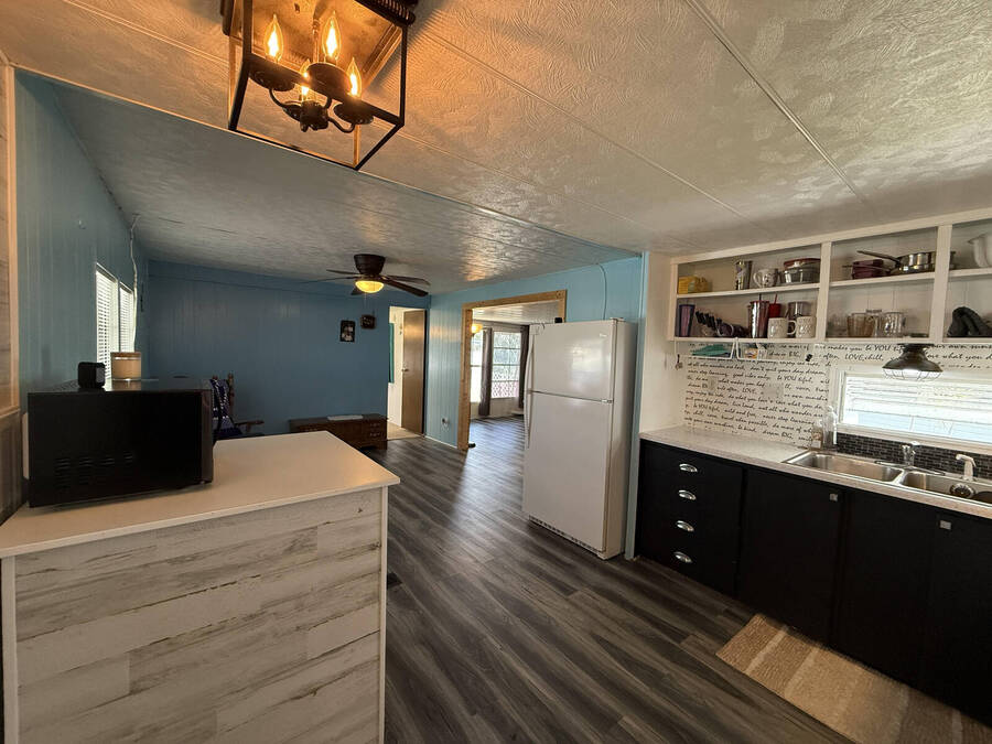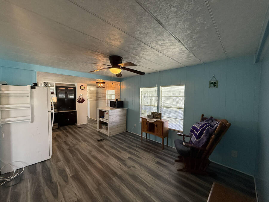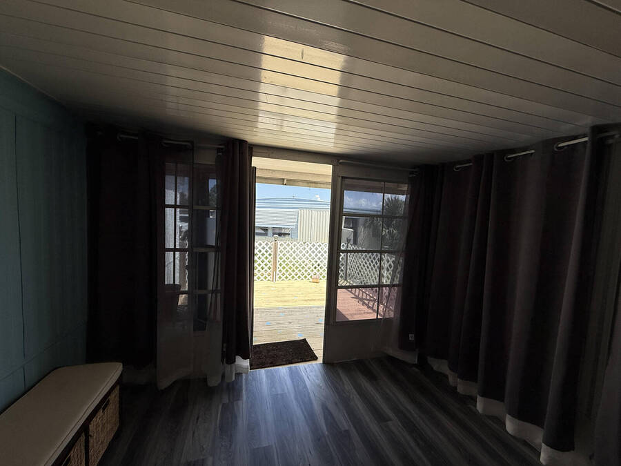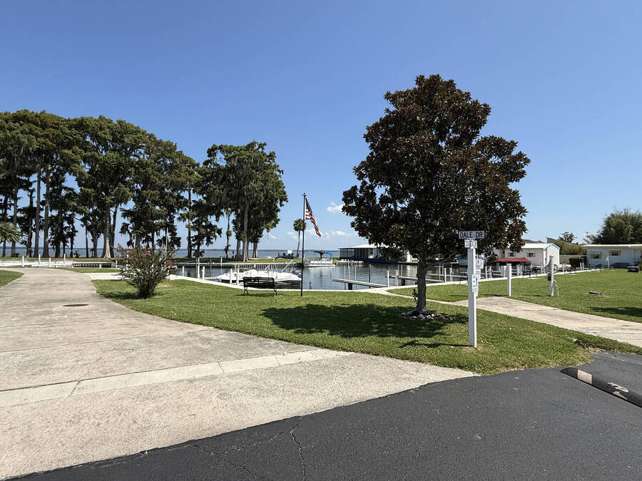 Welcome to your Florida retreat! This beautifully updated 2-bedroom, 1.5-bath home is located in the desirable Lake Point 55+ community in Tavares. Just minutes from AdventHealth Waterman Hospital, shopping, dining, and even the post office-everything you need is close at hand. The home features a split floor plan for added privacy, with vinyl plank flooring throughout the kitchen and living area, and both bathrooms have been fully remodeled with modern finishes. The kitchen offers updated appliances, lighting, and stylish window treatments, creating a bright and welcoming space. Enjoy the Florida lifestyle with a covered carport, a shed with laundry hookups (washer and dryer included), and a bonus sitting room that opens to a private deck-perfect for relaxing outdoors. Your monthly dues include access to Lake Eustis through the private boat marina, along with a variety of amenities: clubhouse, library, pool, shuffleboard courts, and more. This move-in ready home offers comfort, convenience, and an active lakeside lifestyle, at a price you won't find anywhere else!