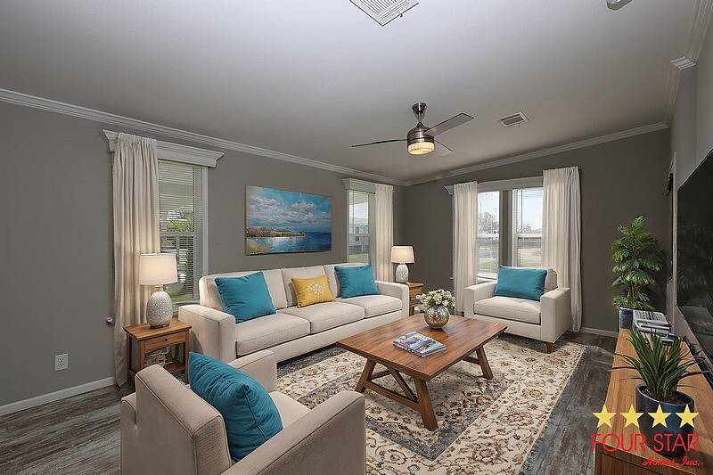 This beautiful 2022 Palm Harbor home offers 1,250 sq. ft. of modern comfort with three bedrooms and two bathrooms. Step inside to an open floor plan featuring vaulted ceilings, recessed lighting, and luxury vinyl plank flooring throughout. The spacious living room is light and bright, seamlessly flowing into the chefs kitchen, complete with stainless steel appliances, stainless farm style sink, a center island and peninsula for additional seating and prep space. Each room is enhanced by modern ceiling fans creating a cool and inviting space year round. The primary suite includes a large walk in closet and an ensuite bathroom with a double vanity and a walk-in shower. With additional storage for your necessities. The second bedroom is generously sized with ample closet space, while the third bedroom offers flexibility as an office, guest room or studio, also light filled with a roomy closet. The guest bathroom boasts a tub, shower combination, and extra closet space as well. Enjoy outdoor living on the screened-in lanai. Additional features include a large carport and a spacious storage room-perfect for all your beach gear. Located in The Winds of St. Armands South, a vibrant 40 upon community approval. This pet friendly neighborhood, restrictions apply, is ideally situated near shopping, dining, several local beaches, the Orioles Stadium, UTC Mall, Sarasota-Bradenton airport and other renowned area attractions. Community amenities include, Heated swimming pools and spas, Pickleball and Shuffleboard courts, Fitness center, Weekly shuttles service shopping for residents. They also have scheduled trips to The Hard Rock Cafe in Tampa, and other day trips. The Winds of St. Armands is a fantastic place to enjoy an active lifestyle and make new friends. Call me today for your personal tour of this stunning home! Some photos are virtually staged. Applicants must be 40 years of age or older, subject to community approval.