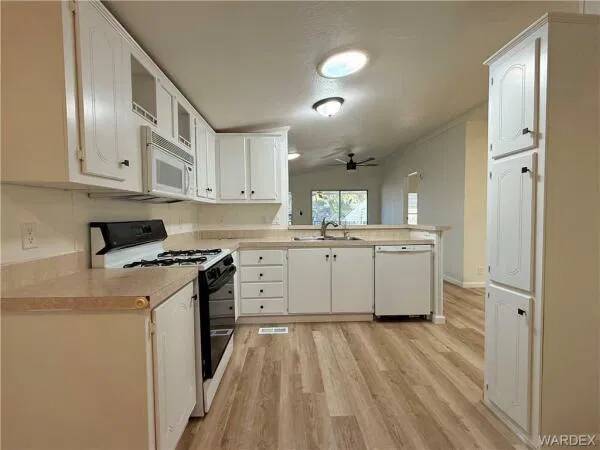 2001 2B/2B Doublewide with an enclosed patio, 1093 SF, 28X48, Central A/C, dishwasher, dual SS sinks, gas range, space saving microwave, plenty of cabinetry, eat in kitchen, new laminate flooring, newly painted, multiple ceiling fans, laundry hookups, Mstr Bdrm has walk in closet, Mstr Bath has a jacuzzi tub/shower and 2nd bath has a walk in shower,. Enclosed attached patio for extra living space