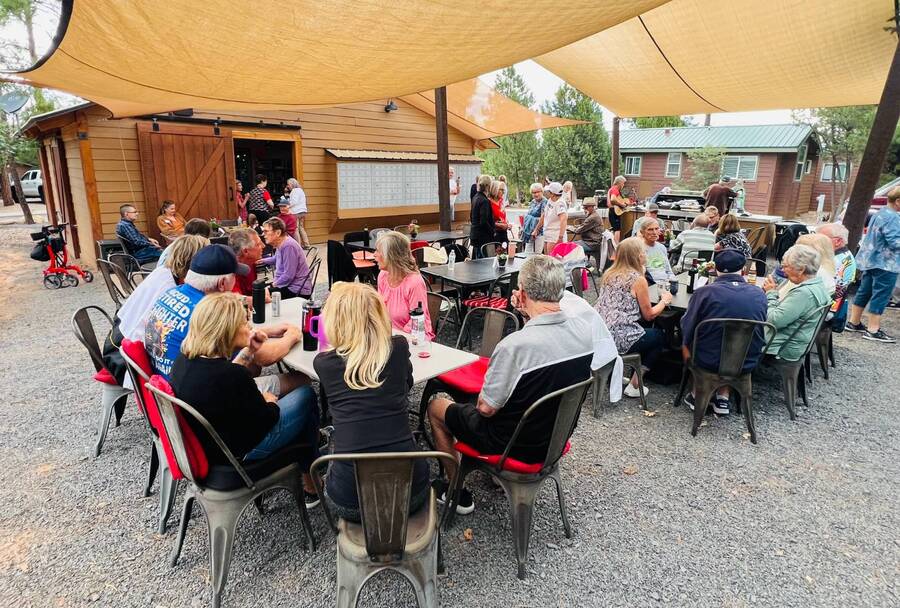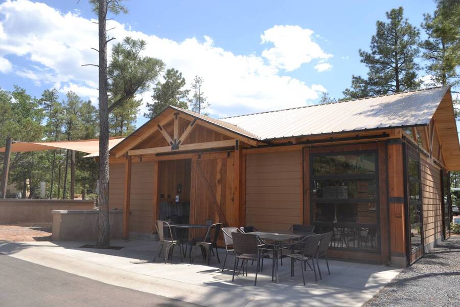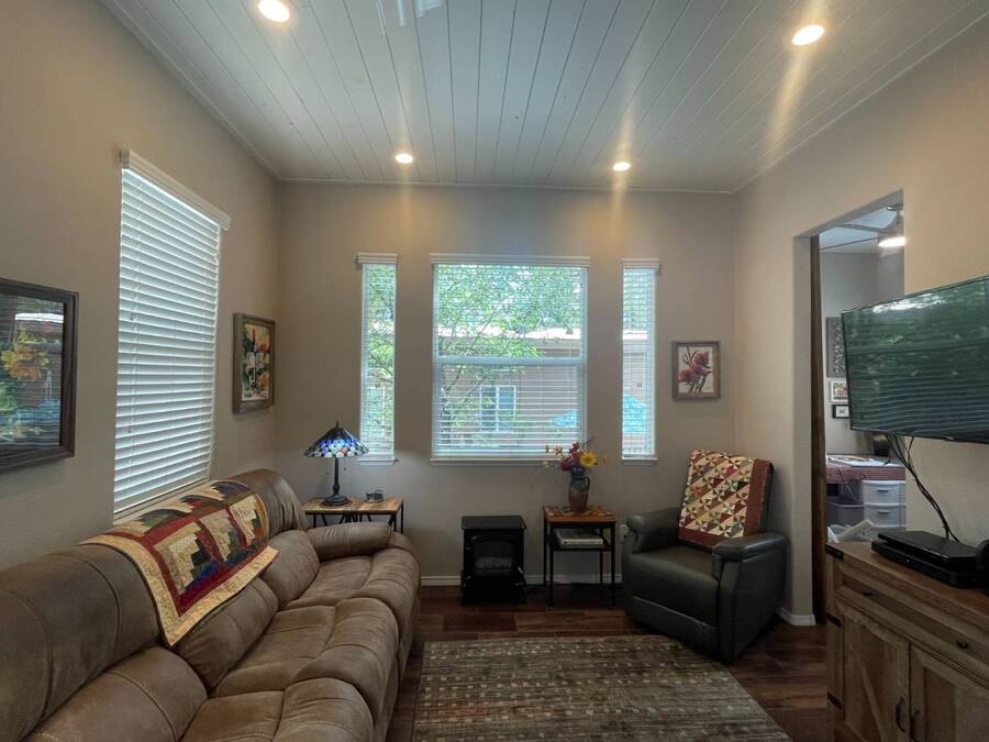 A beautifully appointed park model home that offers everything you need for comfort & convenience. This park model is 2 bedroom and 1 bathroom with a living room addition, paver patio, and paver driveway. The white cabinetry brings a bright clean ambiance. The kitchen includes a dishwasher, apron-front sink, and stainless steel appliance. The paver driveway offers stunning curb appeal while the paver patio allows for extra outdoor relaxation space. This home is located in the most highly sought after 55+ community in Show Low. The site is a comprehensive lease. Annual site fee covers the homesite as well as water, sewer, trash service & basic internet. This saves on the cost of real estate taxes, HOA fees and year-round utility costs. The community is a 55+ Park Model community located in the tall pines of Show Low, Arizona. As a year-round community you can enjoy all four seasons of the White Mountains, imagine yourself enjoying the cool mountain air, shaded by the tall pines and watching the deer stroll through the forest, all while only one mile from major shopping, dining and state of the art medical facilities. An array of outdoor activities can be found nearby too. The community's Rules & Regulations prohibit the use of the home as a rental.