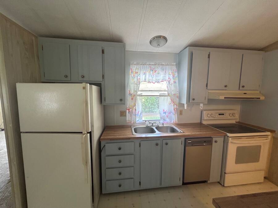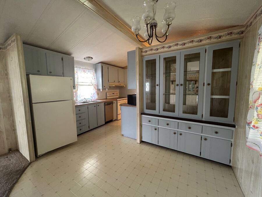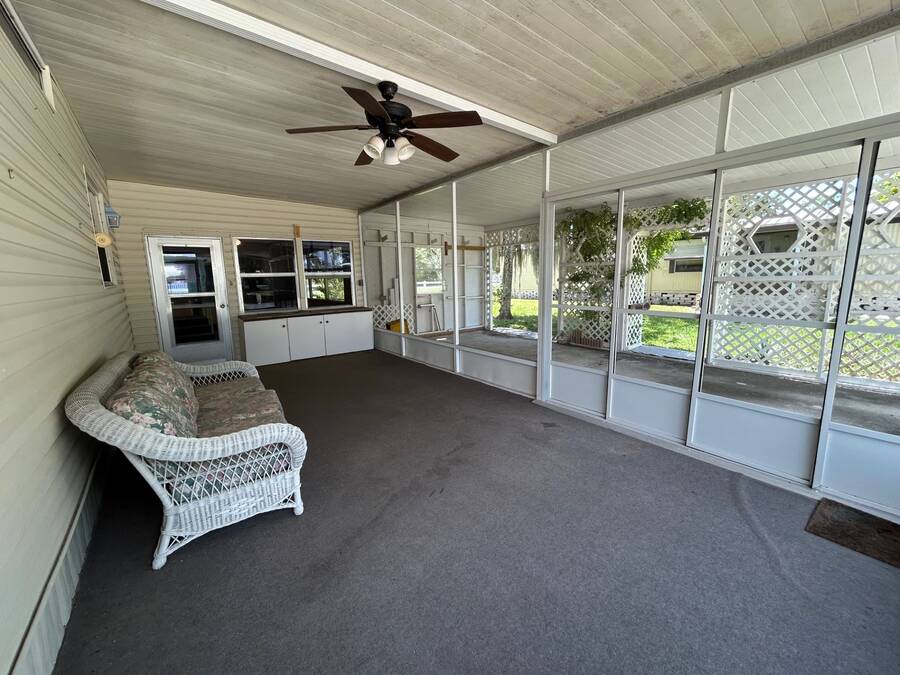 Spacious 2 bedroom, 2 bath home with loads of potential! Located on a quiet cul-de-sac and just minutes from the boat ramp, this property offers two large screened living spaces - an 11' x 17' TV room and an 11' x 24' bonus room - perfect for entertaining or relaxing. Inside, you'll find a functional kitchen with a double sink, dishwasher, stove, microwave, pantry, and plenty of storage throughout. Outside, enjoy a covered shed with washer/dryer, utility sink, and workbench. Home is in need of updates and repairs, but offers a solid layout and great location for the right buyer to make it their own. Sold as-is.