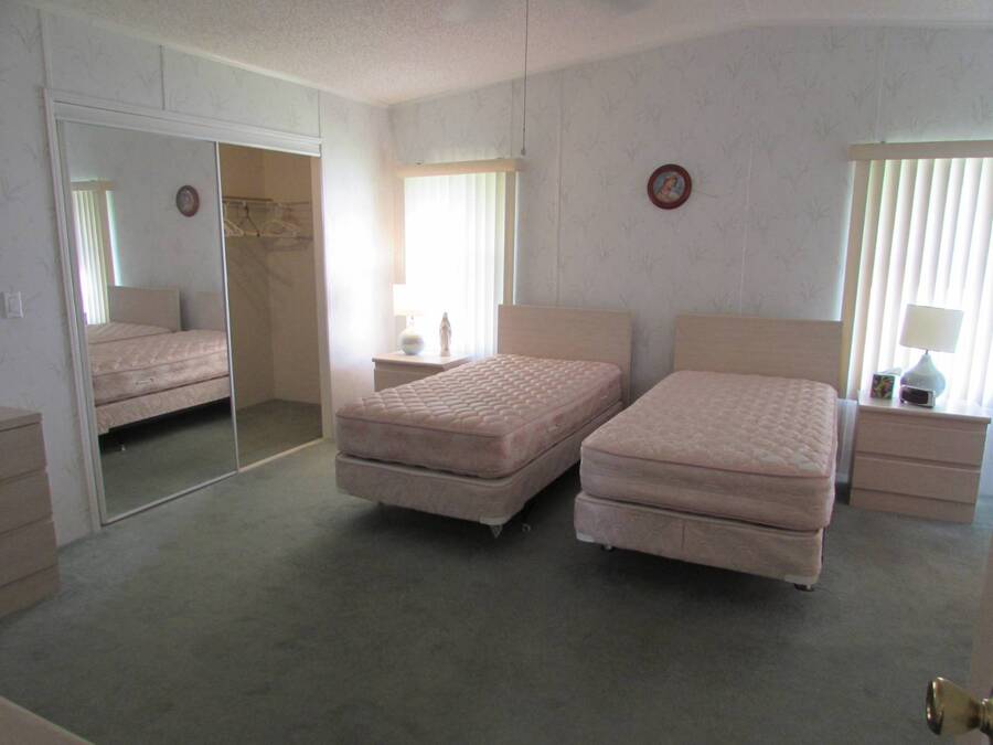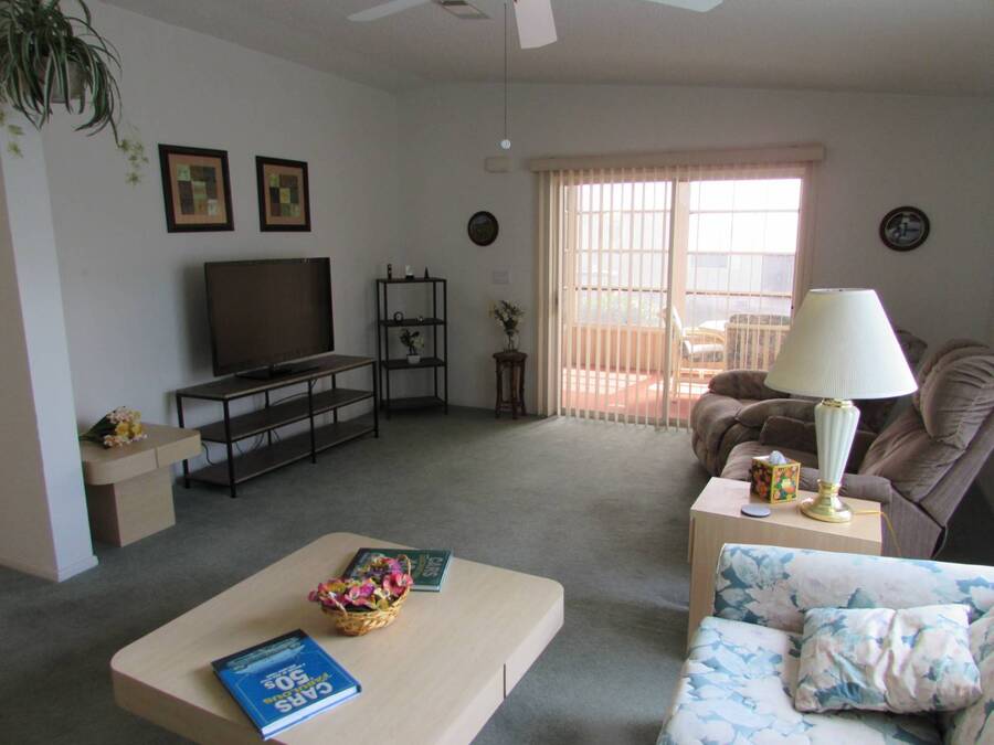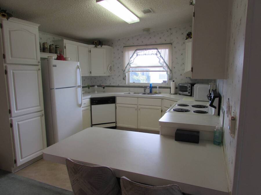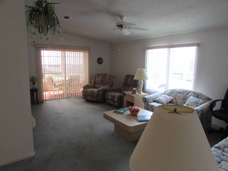 LOVELY TWO BEDROOM TWO BATH PALM HARBOR Very spacious 2 bedroom home with 1344 square feet of living space not counting the Florida room. Entrance ramp for easy accessibility Large eat in kitchen with lots of cabinet and counter space. All appliances included. Full dining room is convenient to kitchen and living room. The living room is very spacious with two big windows for lots of light. Sliding doors lead from the living room to the Florida room with screens and windows. There is also a door for outside entrance to Florida room. The in home laundry washer and dryer is included in separate laundry room with plenty of storage. The guest bedroom is large and bright with plenty of closet space. The guest bath is across the hall and includes a tub/shower. The very spacious master bedroom has plenty of room for a king size bed and features a huge wall to wall walk in closet. The master bath is beautiful with lots of counterspace. There is also a step in shower. Brand new air conditioning system installed 2024. New roof installed 2017 with 25 year warranty. There is nothing to dislike about this lovely spacious home and at this price it won't last long. Rent 785. ***Act now and get free rent for rest of year.*** Come see this gem in Country Place Village, a 55+ 5 star resort community in Trinity Florida with many amenities including fishing in our beautiful lakes, heated swimming pool and spa, tennis, pickleball, shuffleboard, bocce, billiards, exercise room with all new equipment, and a large clubhouse for activities such as shows, dinners, dancing, bingo, quilting, yoga and crafts. Only minutes from shopping and dining, airports, golf and beaches.