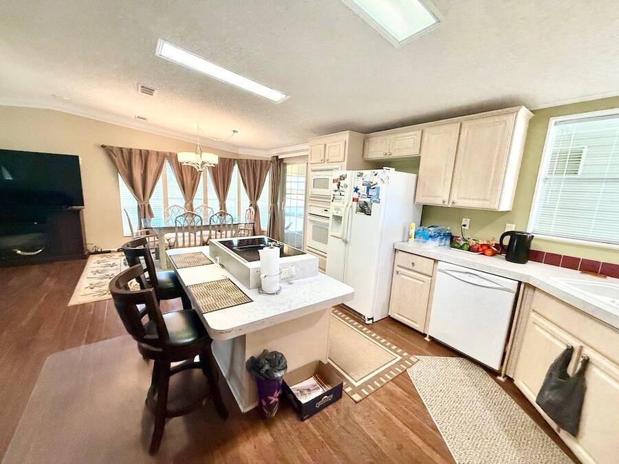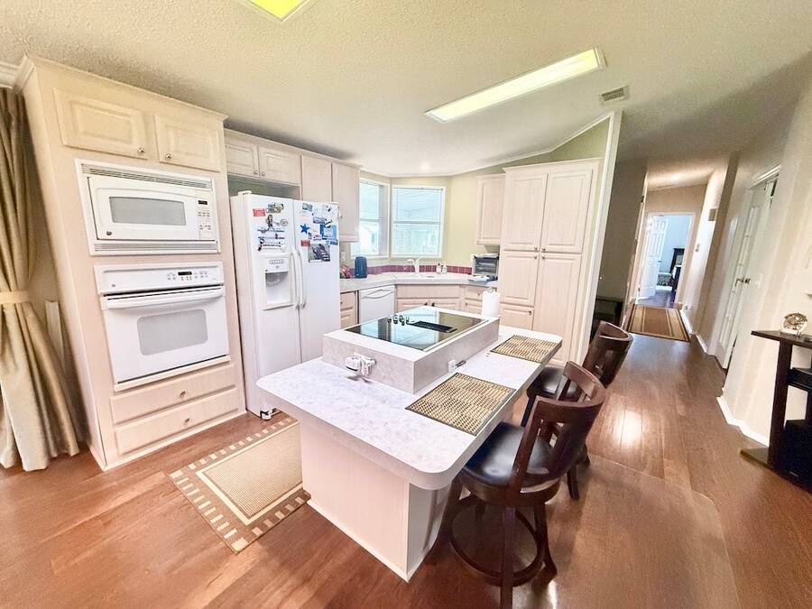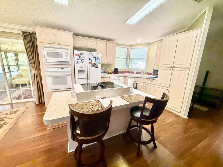 MOTIVATED SELLER, BRING YOUR OFFER ON THIS EXQUISITE LAKEFRONT HOME IN A GATED COMMUNITY OFFERING SPECTACULAR VIEWS OF BOTH THE GOLF COURSE AND THE LAKE!! This 2-bedroom, 2-bathroom home will certainly captivate you from the very first moment! It begins with a spacious double carport and an extended driveway offering ample parking, in addition to a garage that can accommodate a golf cart or serve as extra storage. Inside, the modern updates continue from the elegant foyer to the expansive kitchen, dining, and living areas, highlighted by the vaulted ceilings that are adorned with upgraded crown molding, fresh interior paint, and wide hallways designed for easy wheelchair or walker access. Continuing, you will find a center island with a new cooktop in the kitchen, water filtration system and luxury vinyl plank flooring throughout. Moreover, there is an additional bonus room perfect for use as a third bedroom or a home office. Adjacent to the dining room is a Florida room, providing stunning views of both the lake and golf course, complete with a wall-mounted A/C unit for comfort. The master bathroom features double sinks, a garden tub, AND a walk-in shower. Additionally, there is an indoor laundry room complete with cabinets, a utility sink, and includes the washer and dryer. Finally, the HUGE backyard showcases remarkable views, making this home a complete package! This home is in superb condition and is sure to sell fast! Schedule a visit today before it slips away! Seller is motivated. **Home is sold furnished as described in listing below.** The gorgeous, resort style 55+ community of Cypress Greens is located in Lake Alfred and within five miles of I-4 making it easy to access Orlando and Tampa. Experience all this gated, active community has to offer from the 9-hole golf course to a tennis/pickleball court, to relaxing with catch and release fishing out on the private lakes found here or participating in an event hosted at the 7,000 sq. ft. clubhouse. Cypress Greens offers numerous amenities to keep resident busy and enjoying life. Some of these amenities include heated swimming pool, water aerobics, shuffleboard, BINGO, social events, library, fitness center, and much more!! Pet friendly with up to 2 LARGE dogs allowed (breed restrictions apply). Onsite RV storage available. Lot Rent $830. KITCHEN: 14 x 15 • Vinyl Plank Flooring • Refrigerator - GE (with Ice Maker) • NEW Cooktop - GE • Double Wall Oven - GE • Dishwasher - GE • Updated Backsplash • Center Island • Pantry - 1 DINING ROOM: 10 x 12 • Vinyl Plank Flooring • Chandelier • Table LIVING ROOM: 12 x 13 • Vinyl Plank Flooring • Ceiling Fan • Coffee Table - 1 LAUNDRY ROOM: 8 x 10 • Vinyl Flooring • Washer - GE • Dryer - GE • Cabinet • Utility Sink • Located Inside - Off: Hallway MAIN BATHROOM: 6 x 10 • Vinyl Flooring • Single Sink • Tub/Shower Combo • Linen Closet MASTER BEDROOM: 15 x 16 • Vinyl Plank Flooring • Ceiling Fan • Walk-In Closet: 6 x 10 (Built-In) • Chaise Lounger MASTER BATHROOM: 8 x 15 • NEW Vinyl Plank Flooring • Double Sinks • Garden Tub • Walk-In Shower • Linen Closet GUEST BEDROOM: 12 x 14 • Vinyl Plank Flooring • Ceiling Fan with Light • Walk-In Closet: 6 x 8 (Built-In) BONUS ROOM/OFFICE: 12 x 13 • Vinyl Plank Flooring • Ceiling Fan • Walk-In Closet: 6 x 8 • French Doors FLORIDA ROOM: 12 x 16 • Concrete Flooring • Chairs - 2 • Wall A/C Unit GARAGE: 12 x 16 • Garage Door EXTERIOR: • Vinyl • Single Pane Windows • Gutters • Carport: Double • Roof Type: Shingles • A/C: York • Air Vents Location: Ceiling The above information is not guaranteed. It is the buyer's responsibility to confirm all measurements, fees, rules and regulations associated with this particular park. This mobile home is sold "As Is" as described in the description as described in the description above. There are no warranties or guarantees on this home.