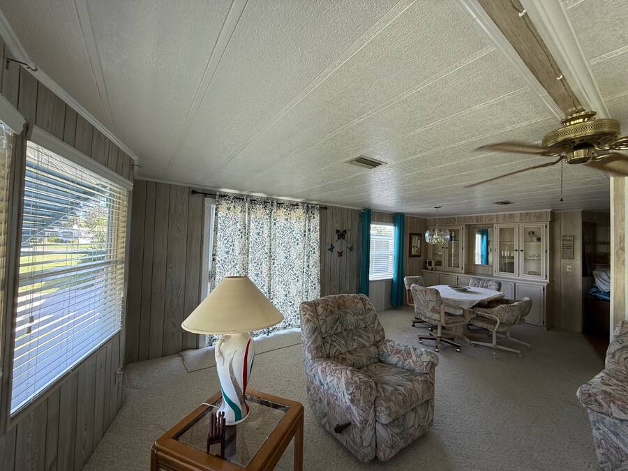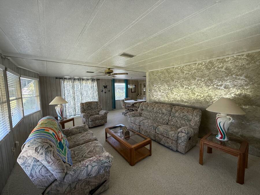 JUST REDUCED!! Seller NEEDS HOME SOLD! HOME SWEET HOME!! GREAT LOCATION!! COME ON HOME TODAY!! Welcome to this spacious two-bedroom two-bathroom home offering almost 1500 ft.² of comfortable living space on a large desirable corner lot adjacent to the park clubhouse and pool. This well-maintained property has many upgrades such as a totally new electrical box a transferable Massey termite contract and many more upgrades. This home has very large cedar lined walk-in closet off the master with built-in shelving, and a built-in safe is also included. You'll also appreciate the large built-in utility and storage room off of the floor room. This home comes partially furnished, allowing you to move right in and start enjoying your space. Inside the open and functional floor plan access allows for easy, living and entertaining. The bright and inviting kitchen has a perfect nook for a coffee bar and ideal for starting your mornings in style. The versatile Florida room offers endless possibilities as it could be easily turned into a third bedroom, office or hobby space. With plenty of room for multiple family members, this home plans for comfort and practicality beautifully. Spanish Village is a well-established 55+ community offering year-round amenities such as clubhouse with pool, planned activities that make it easy to connect with your neighbors. The park is quiet with a lot of nature and wildlife to enjoy. The area provides peace of mind during seasonal weather. the location keeps you close to shopping dining, healthcare, and entertainment while yet for far enough away from town to enjoy the bright stars at night