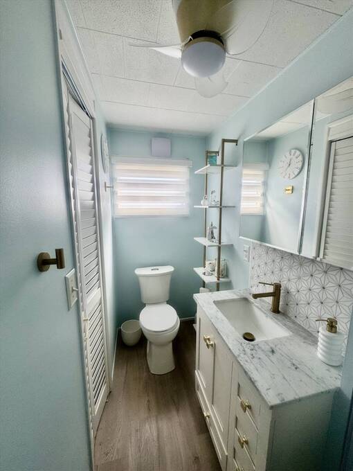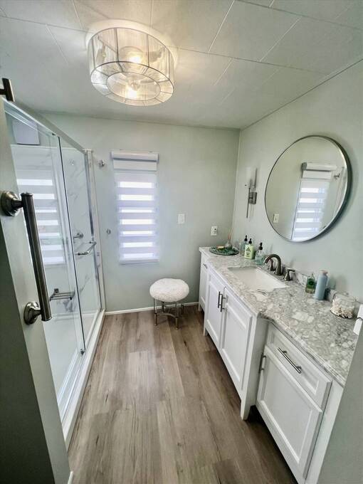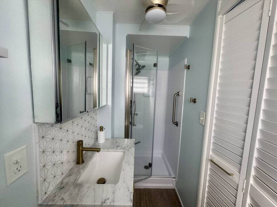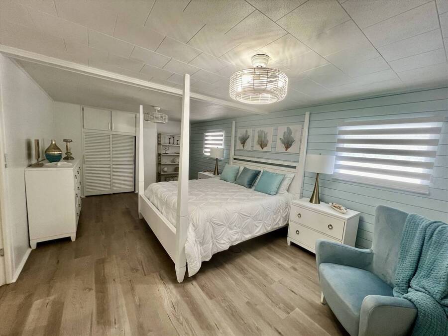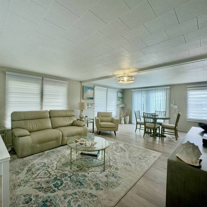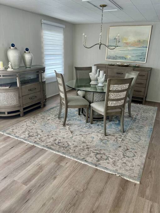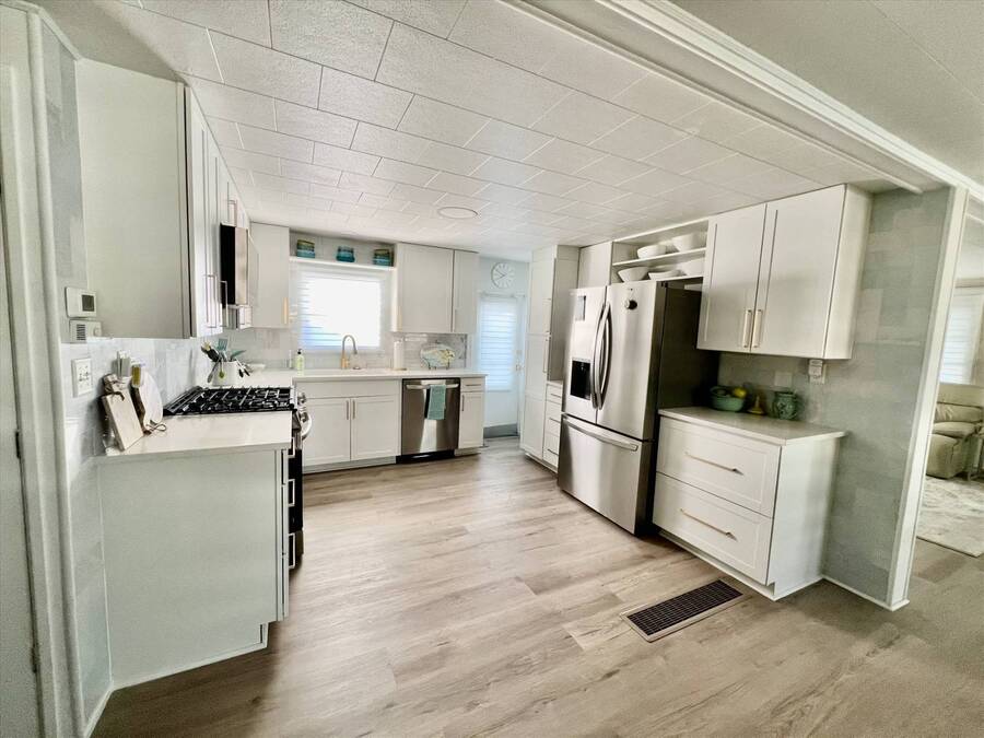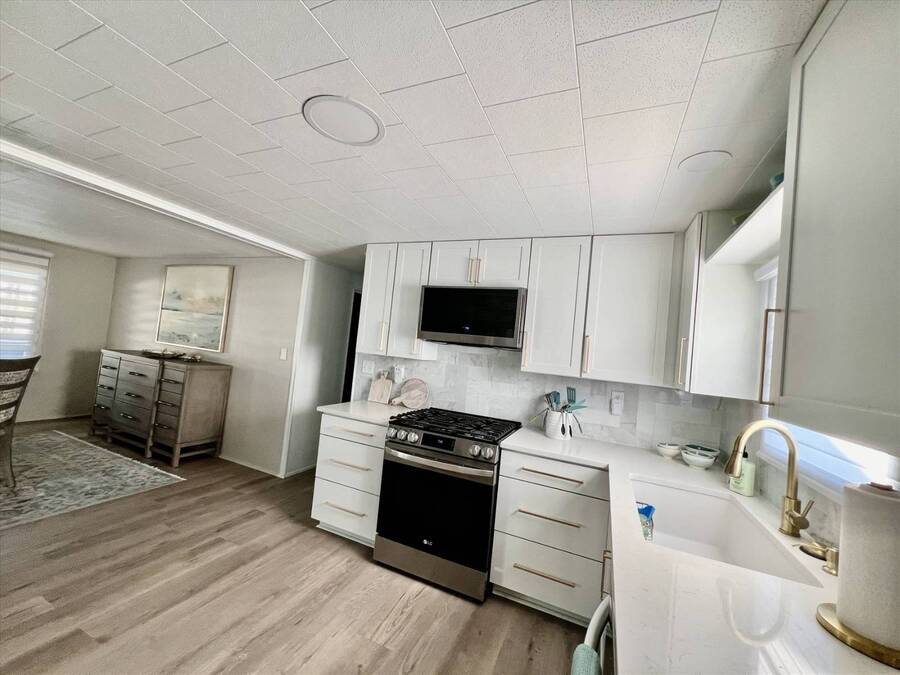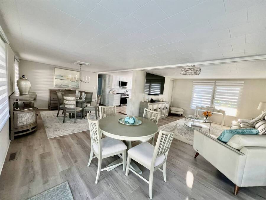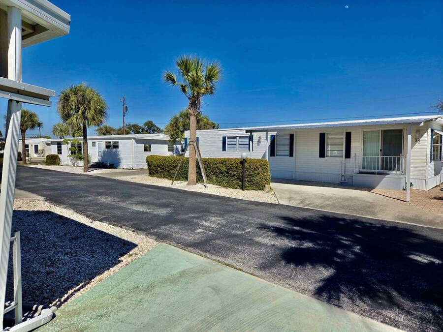 Location!! Enjoy Sarasota Living Just 3 miles from Siesta Key Beaches! This exceptional 1200 sf home with large brick patio in an active adult community has been completely renovated and has new kitchen and bathrooms plus luxury vinyl plank flooring throughout. The open floor plan in family/dining room and kitchen has shaker cabinets, new stainless steel appliances, including gas stove, quartz countertops and a marble backsplash. The main and hall baths have vanities with marble countertops and showers have sliders. The main suite has a large bedroom with plenty of closets and a full bath. Property includes 2 large sheds and hookups for a washer and dryer. Enjoy this friendly community with pool, bocce ball and shuffle board courts. Weekly bingo, card games and social activities.