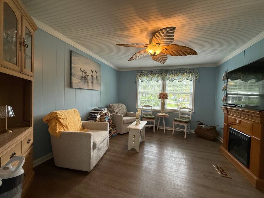 Welcome to this charming and well maintained 3-bedroom, 2-bathroom manufactured home nestled on a beautifully landscaped lot. Located in the well-established and quiet 55+ community of Ocean Pines. This home offers the perfect combination of space, comfort, and convenience just minutes from shopping, dining, golf, and the beaches. From the moment you arrive, you'll appreciate the home's attractive curb appeal with manicured shrubs, irrigation system, hardy plank siding and a welcoming front porch. The spacious concrete driveway provides ample parking, while the detached storage building offers room for tools, lawn equipment, or beach gear. Inside, you ll find a thoughtfully designed living space featuring an open and inviting floor plan. The large living room boasts a cozy fireplace and built-in shelving perfect for entertaining or relaxing evenings at home. Adjacent to the living area is the dining room with a sliding glass door opening to the Carolina Room, bringing in natural light and offering an elegant space for gatherings and additional living space. The kitchen features ample cabinetry, a tile backsplash, and neutral countertops. The designated laundry space offers a butler s pantry along with additional storage. Just off the kitchen, a built-in desk area provides a convenient workspace or home command center. The split-bedroom layout ensures privacy for the spacious primary suite, which includes a large en-suite bathroom with a garden tub and walk in shower. Two additional bedrooms are located on the opposite side of the home, each with generous closet space and access to a full 3 piece bathroom. This home also offers a flex space perfect for whatever your needs may be. The Carolina room overlooks the peaceful backyard and canal. Whether you're looking for a primary residence or a low-maintenance second home, this home could fit your needs.