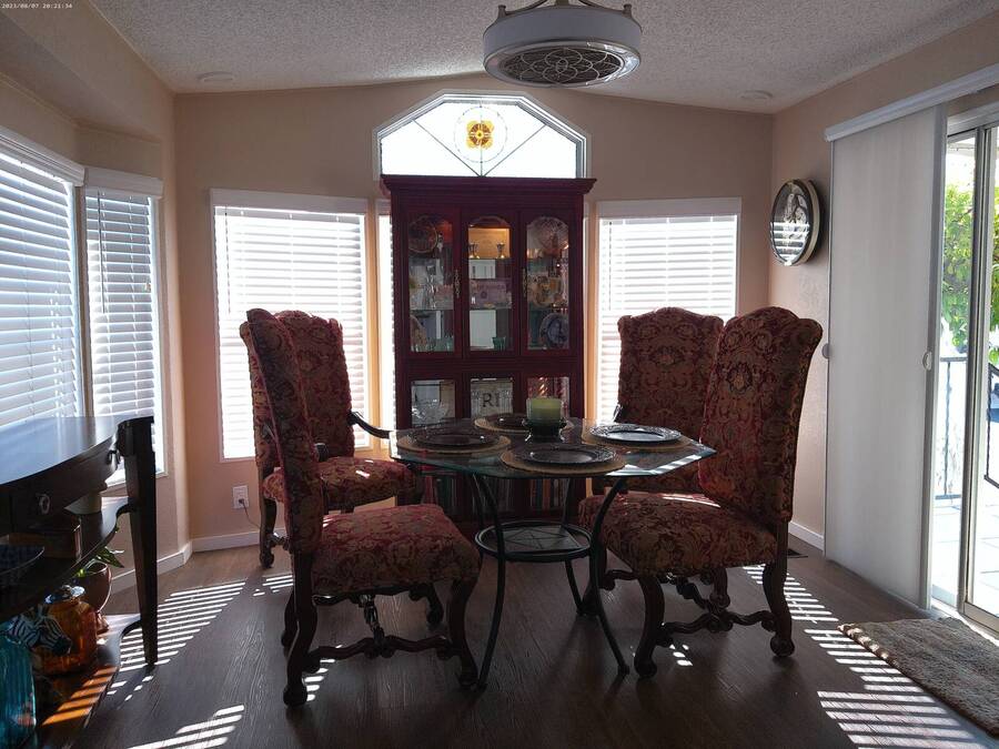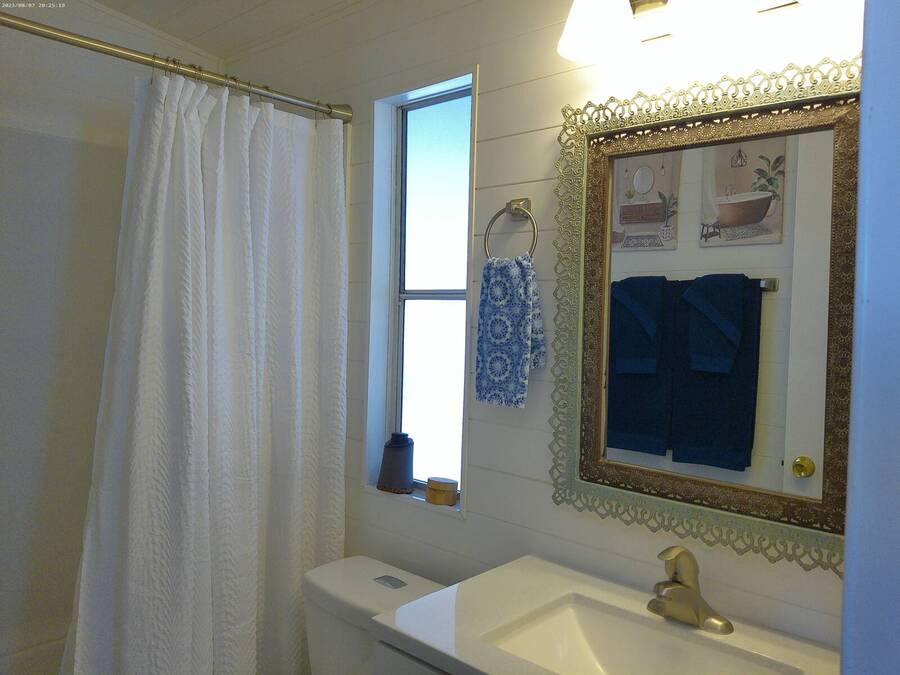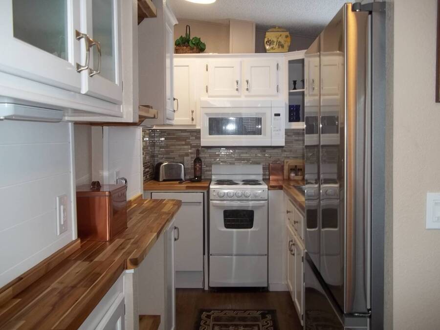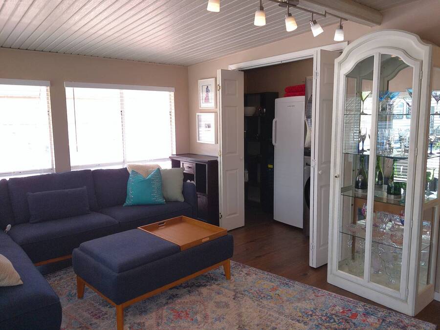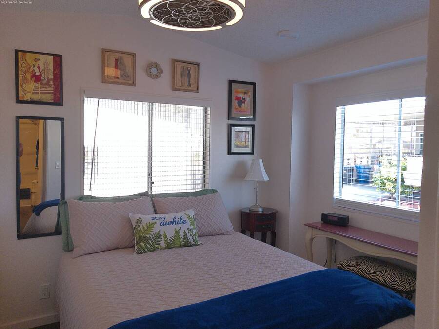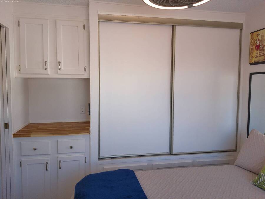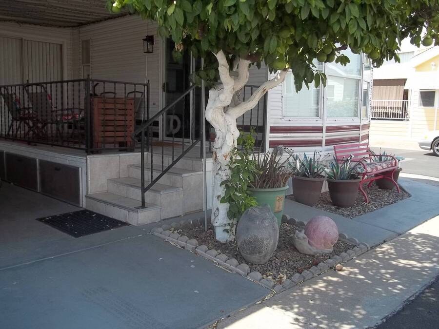 Located in a 55+ Resort, this Park Model was remodeled in 2023 and is Located on a Corner Lot Located Near the Back Gate. It Features a Raised AZ Room , Tiled Front Deck with Storage Drawers, Remodeled Galley Kitchen with Custom Shelving, Butcher Block Counter Tops, SS Sink & Full Size Refrigerator, Dishwasher, Garbage Disposal, New Built-in Microwave, Extra Half Bath, New Vanities, New Shower/Tub Combo, Textured & Painted Walls, Full Size Freezer, New Bladeless Ceiling Fans, New Blinds, Queen Bed, Laminate Wood Floors, New Full Size W/D, Recessed Awning to Allow More Space, Privacy Screens, Newer AZ Windows, Sliding Door has a Retractable Custom Vertical Cellular Screen, Outdoor Motion Detector Lights, New Skirting in 2023, Newer Central A/C & Heat. Lot Rented is Noted as a Monthly Estimate and is Due Annually in August of Each Year. Some Items Pictured May Not Convey.