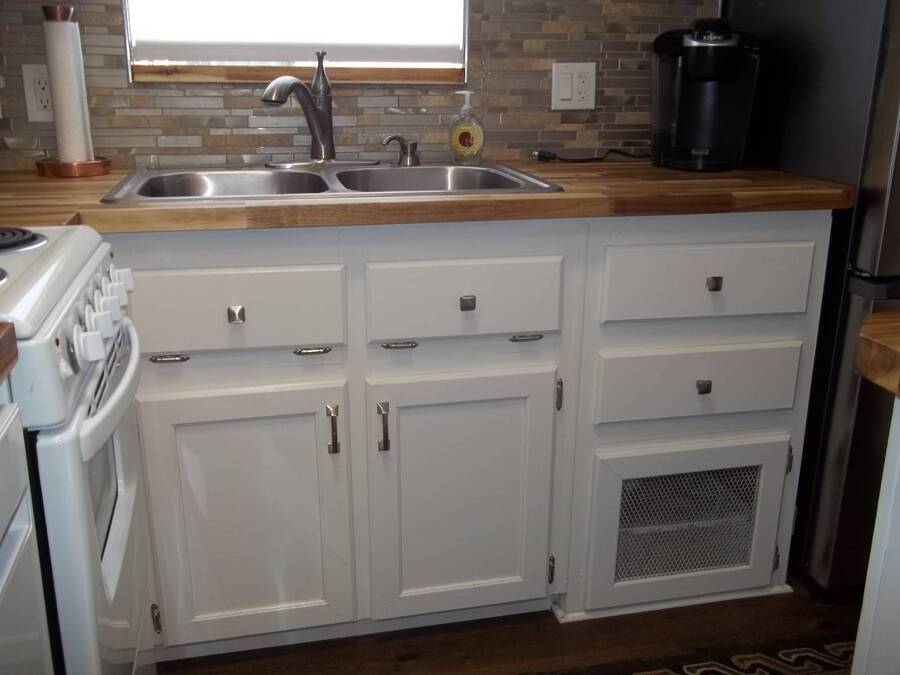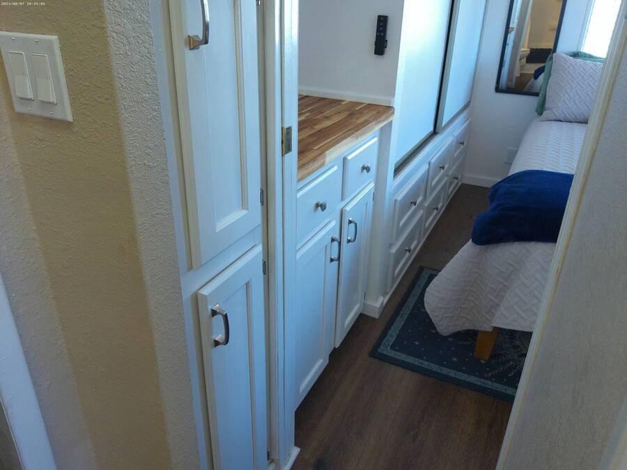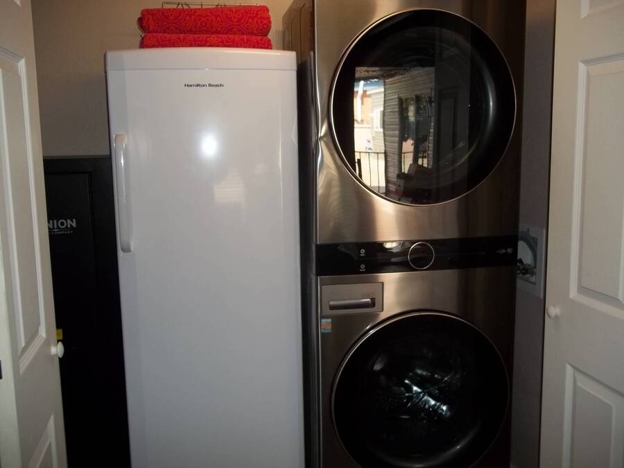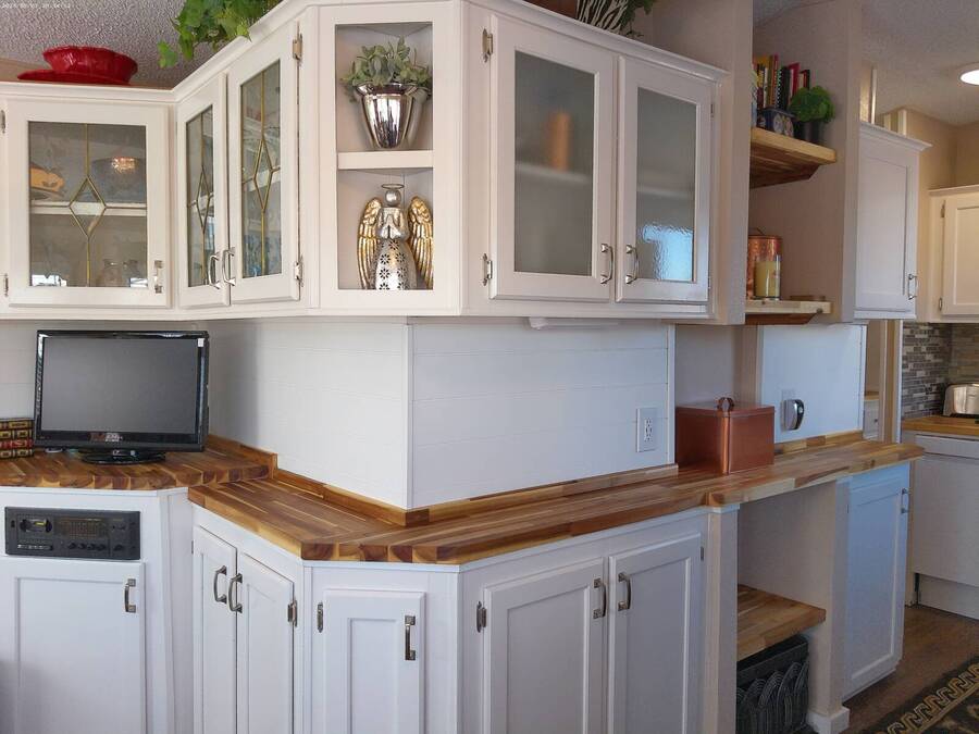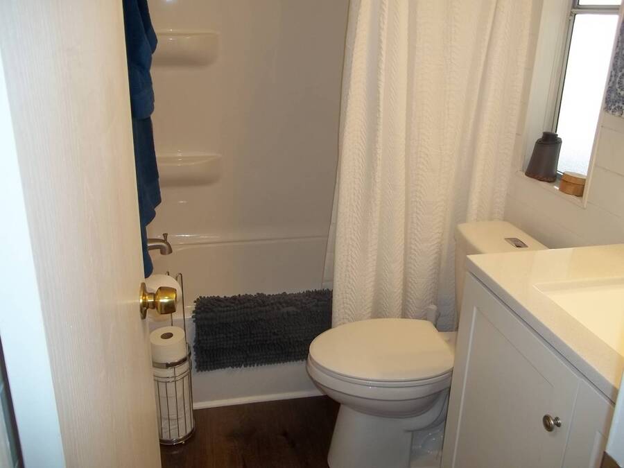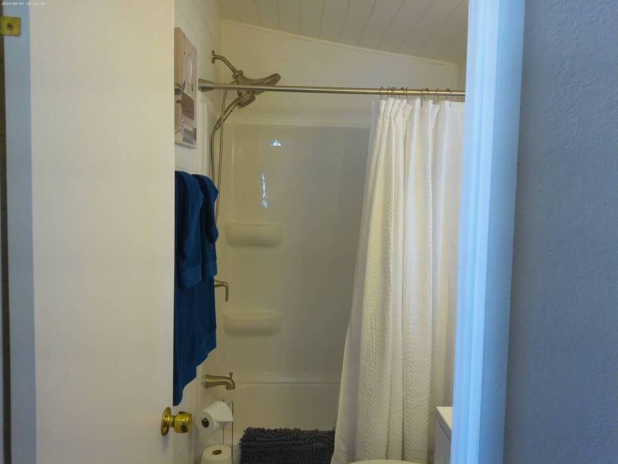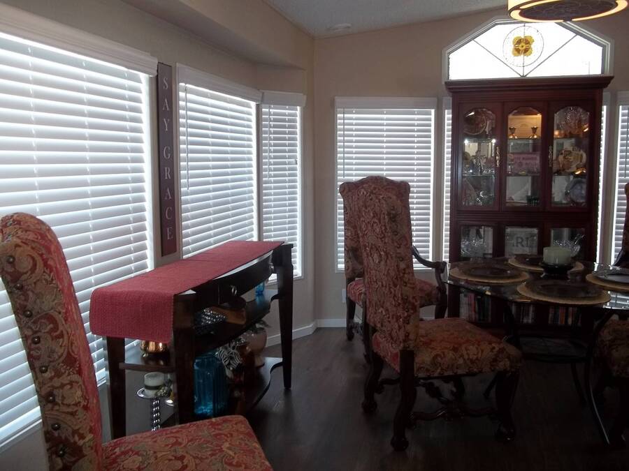 Located in a 55+ Resort, this Park Model was remodeled in 2023 and is Located on a Corner Lot Located Near the Back Gate. It Features a Raised AZ Room , Tiled Front Deck with Storage Drawers, Remodeled Galley Kitchen with Custom Shelving, Butcher Block Counter Tops, SS Sink & Full Size Refrigerator, Dishwasher, Garbage Disposal, New Built-in Microwave, Extra Half Bath, New Vanities, New Shower/Tub Combo, Textured & Painted Walls, Full Size Freezer, New Bladeless Ceiling Fans, New Blinds, Queen Bed, Laminate Wood Floors, New Full Size W/D, Recessed Awning to Allow More Space, Privacy Screens, Newer AZ Windows, Sliding Door has a Retractable Custom Vertical Cellular Screen, Outdoor Motion Detector Lights, New Skirting in 2023, Newer Central A/C & Heat. Lot Rented is Noted as a Monthly Estimate and is Due Annually in August of Each Year. Some Items Pictured May Not Convey.