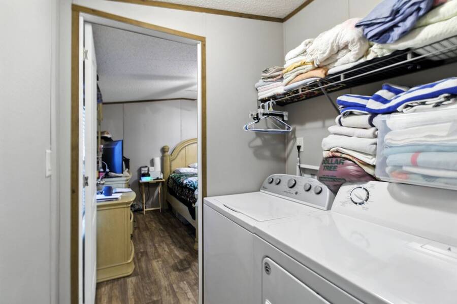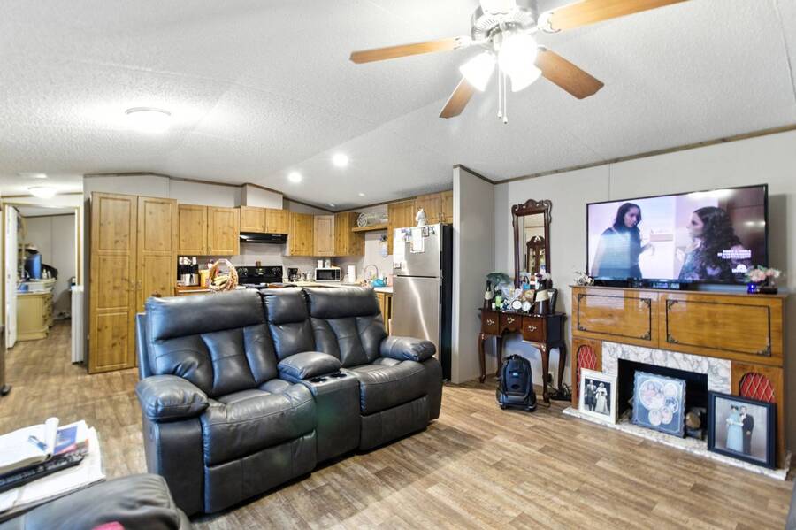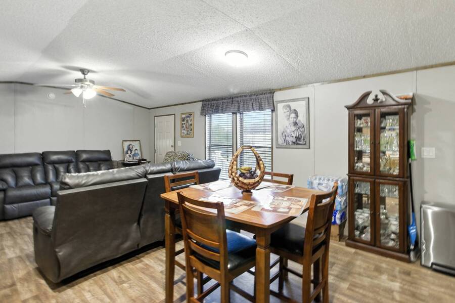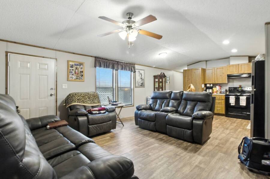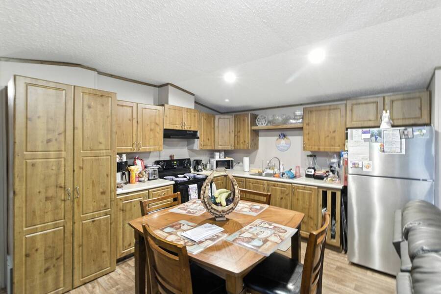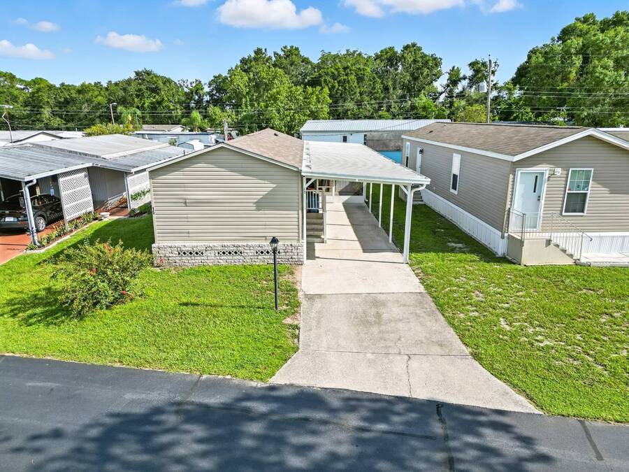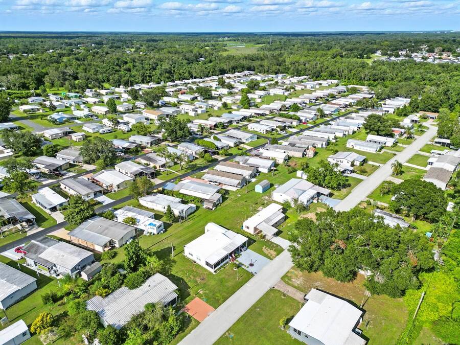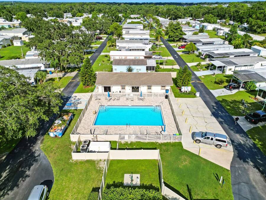 Welcome to easy living in the desirable 55+ community of Pine Ridge Estates in North Lakeland! Built in 2022, this charming 2-bedroom, 2-bathroom home offers a fresh, modern feel with all the comforts you're looking for. Step inside to discover an open-concept layout featuring a stylish kitchen with sleek black appliances, modern cabinetry, and a seamless flow into the dining and living areas-perfect for entertaining or everyday living. Enjoy the convenience of an indoor laundry area with washer and dryer included. The home also boasts brand-new vinyl plank flooring and updated blinds throughout, plus a new AC unit and water filtration system for added peace of mind. This move-in-ready gem is being sold partially furnished, including both bedroom sets and a dining table with chairs-just bring your personal touches! You'll also appreciate the spacious driveway and handy storage shed. Pine Ridge Estates offers a vibrant, pet-friendly lifestyle with a clubhouse featuring a full kitchen, poker and billiards room, craft and game areas, and a cozy library. Located just minutes from Lake Gibson, major highways, shopping, churches, and medical facilities-this is the perfect place to call home!