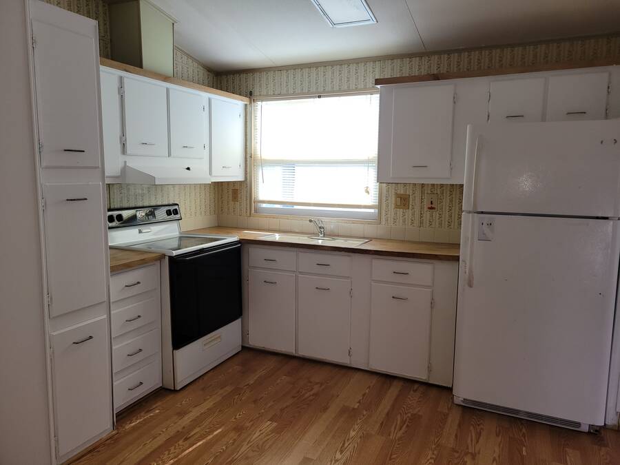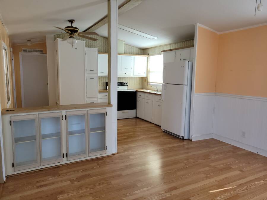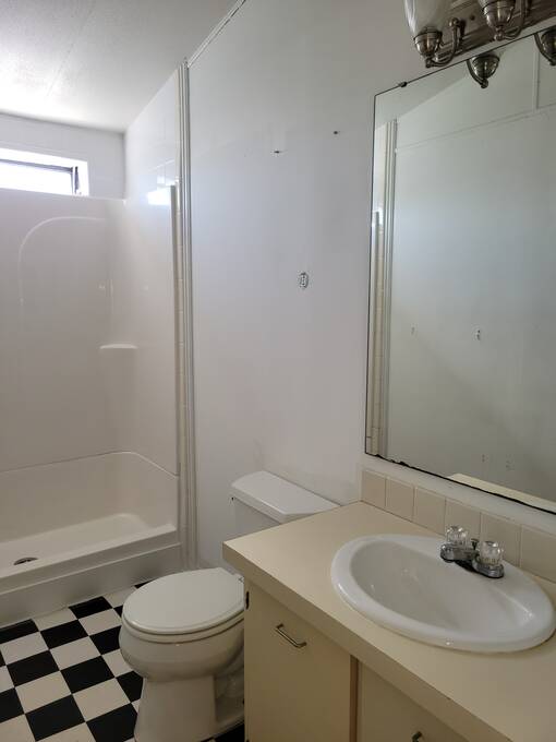 Step into potential with this cozy 1 bed, 1 bath home featuring cathedral ceilings that create an airy, open feel throughout. The master bedroom offers direct access to a tranquil patio overlooking a peaceful pond—perfect for morning coffee or evening unwinding. The bathroom includes a walk-in shower for added comfort and accessibility.