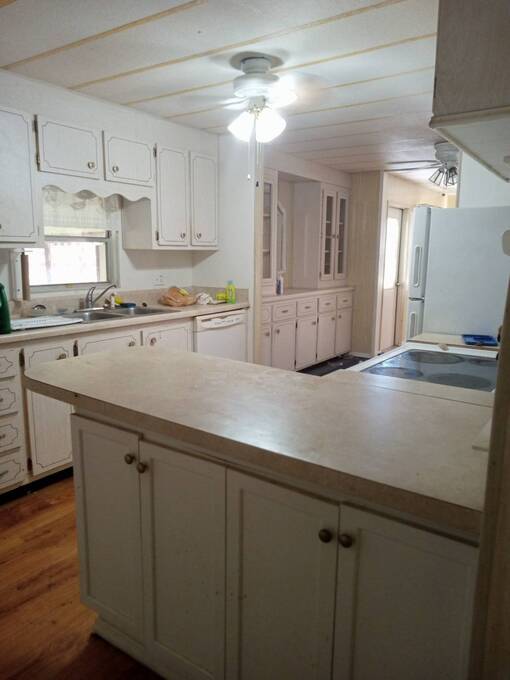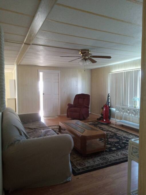 3 bedroom doublewide mobile home in a 55 and over mobile home park. (40 Yr old can live with 55+). Indoor cat welcome, lot rent 880.00, includes water, sewage, trash, lawn. RV or boat parking if available for owners only. Thia home is large with lots of space and storage. Just needs a little TLC...(cosmetic) open spacious kitchen, dining, living room, lots of cabinets and pantry space, storage big time!! driveway which could also have a garage and a great big workshop and laundry room. Clubhouse with gym, rec hall, library, laundry room. All kinds of activities such as bingo, crafts, dances, dinners, card bingo, bible studies. Heated pool, shuffleboard, corn hole. Centrally located, close to highways, bus stops, grocery stores, shopping plazas and Beaches!! Must be park approved with a background & credit check. All listing information is deemed reliable but not guaran teed and should be independently verified by licensed professionals. CJ Mobile Home Sales, LLC does not guarantee or warrant the accuracy, of this information, measurements, or condition of any property. Please call for a showing!!