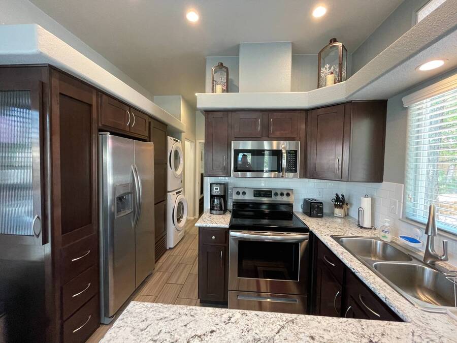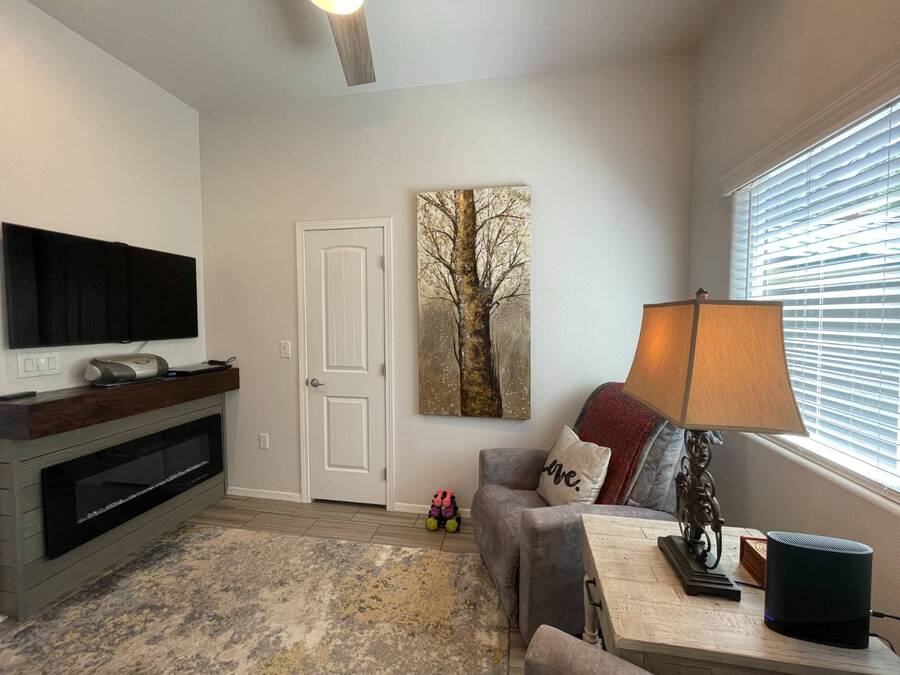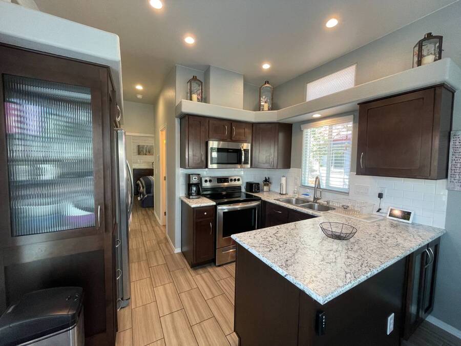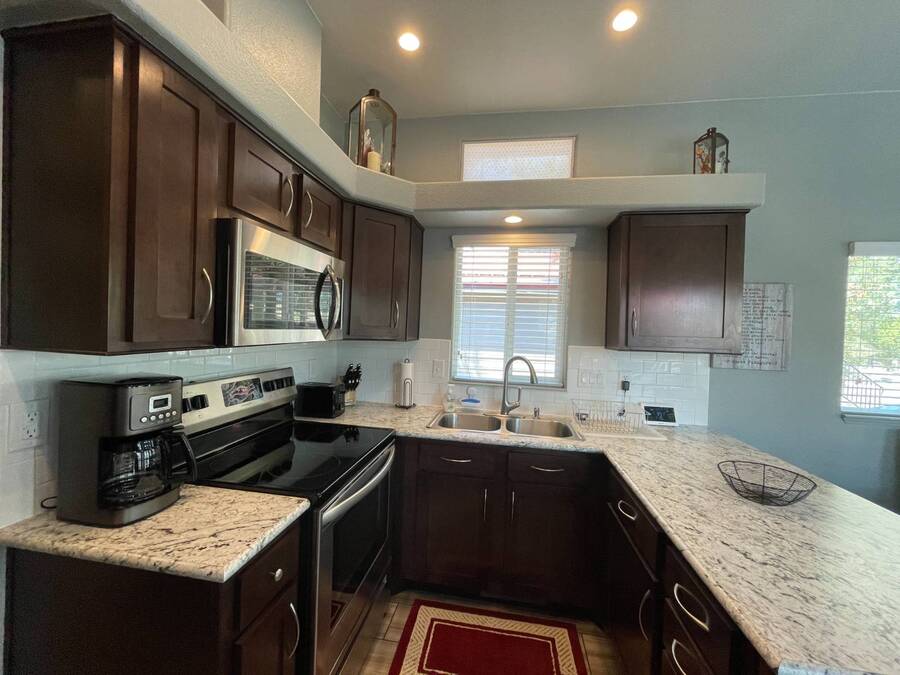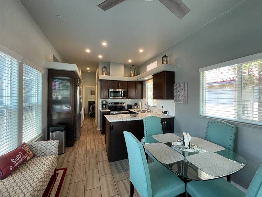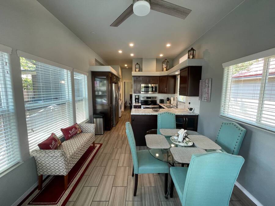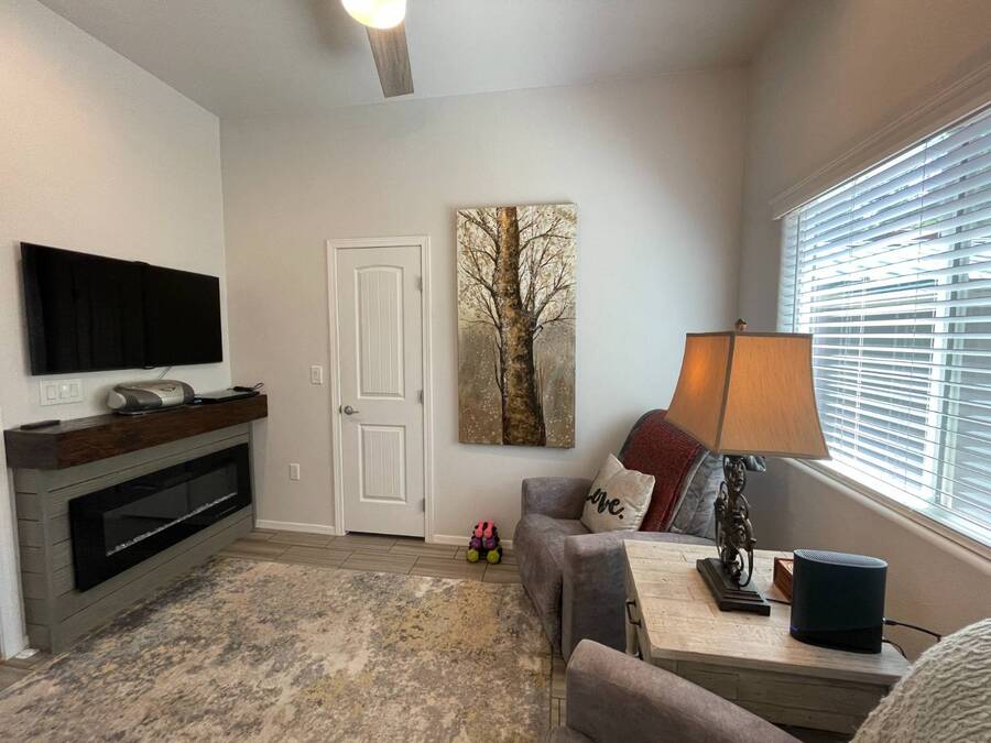 A premium furnished park model home that offers everything you need for comfort & convenience. This park model is 2 bedroom and 1 bathroom cottage model with a king size master bedroom, oversized drawer storage, mirrored closet doors, electric heating fireplace, oversized dining area windows, upgraded flooring, upgraded cabinets, full tiled back splash, stainless steel appliances, garbage disposal, ceiling fans with remotes, smart thermostat, beautifully landscaped, tree lined lot, solar landscape lighting, paver walkway, dual zone irrigation system, large covered front deck, extra large open wrap-around deck, new remote controlled motorized shade awning, and large attached storage shed with full electric and built in shelving. The 2nd bedroom/media room has a closet and exit to the deck. This home is located in the most highly sought after 55+ community in Show Low. The site is a comprehensive lease. Annual site fee covers the homesite as well as water, sewer, trash service & basic internet. This saves on the cost of real estate taxes, HOA fees and year-round utility costs. The community is a 55+ Park Model community located in the tall pines of Show Low, Arizona. As a year-round community you can enjoy all four seasons of the White Mountains, imagine yourself enjoying the cool mountain air, shaded by the tall pines and watching the deer stroll through the forest, all while only one mile from major shopping, dining and state of the art medical facilities. An array of outdoor activities can be found nearby too. The community's Rules & Regulations prohibit the use of the home as a rental.